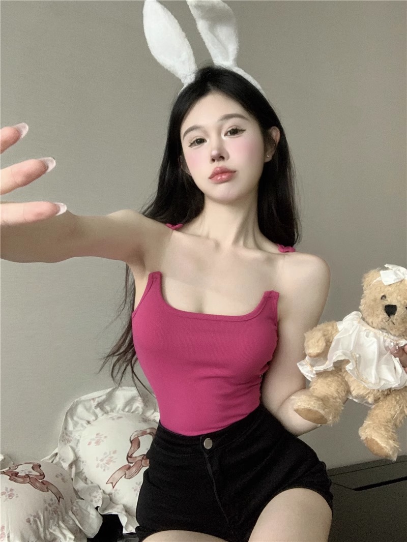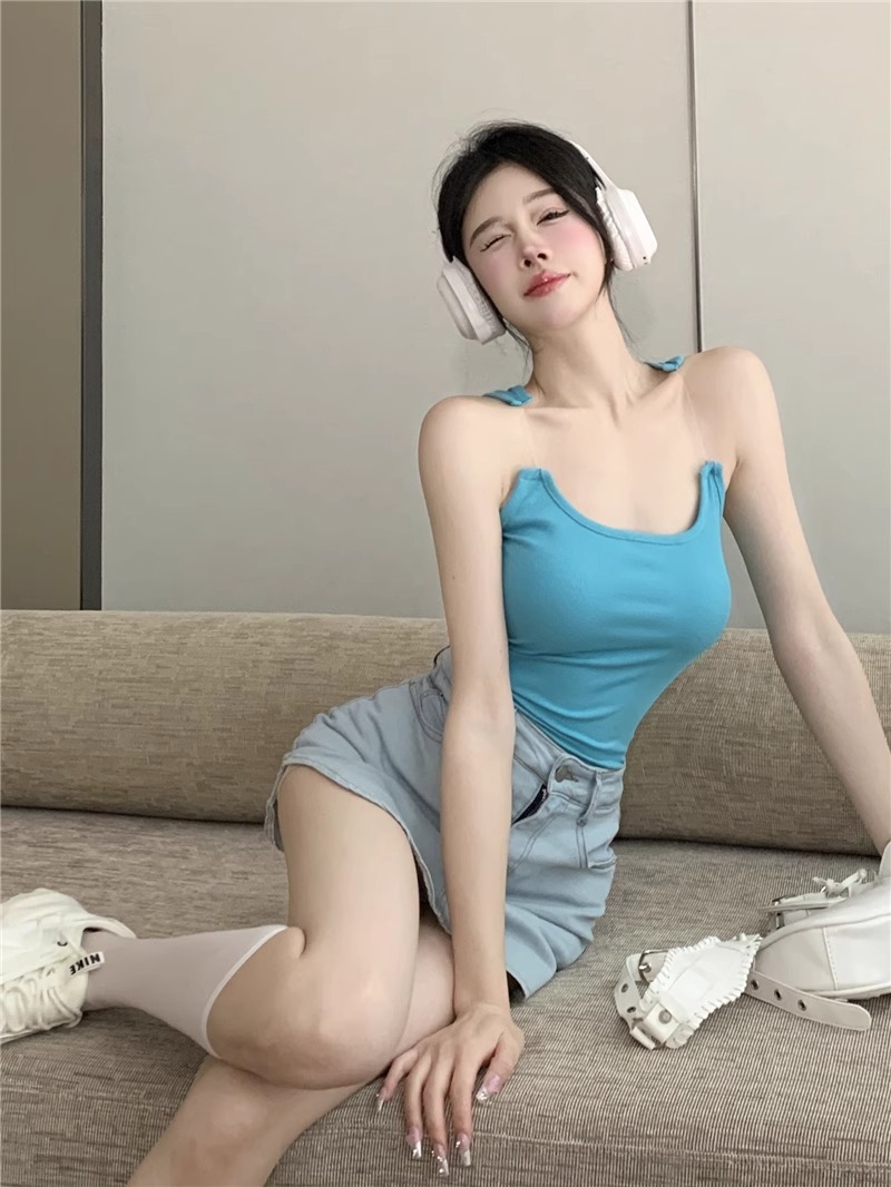 보이지 않는 어깨 끈 타이 카미솔 여성용 내복 순수 스파이스 소녀 섹시한 민소매 탑 디자인 감각 틈새스토어 가기
