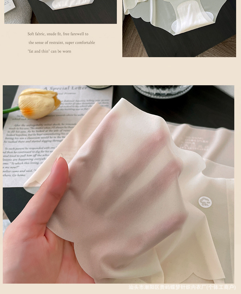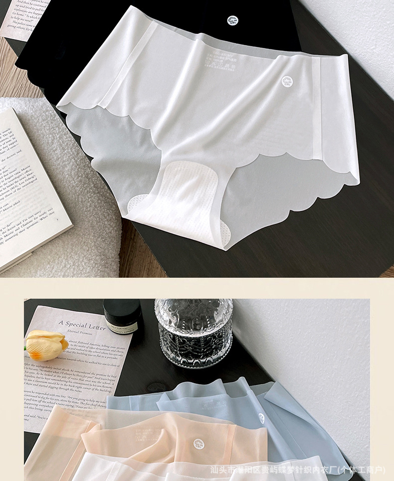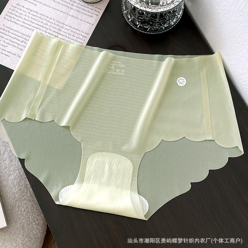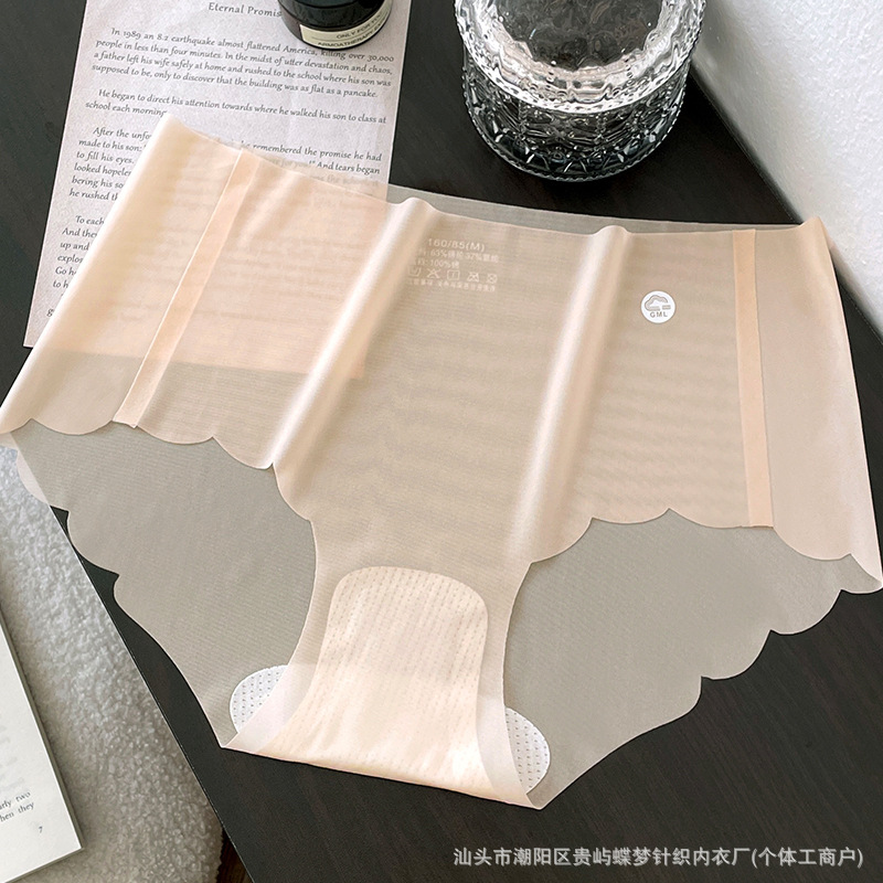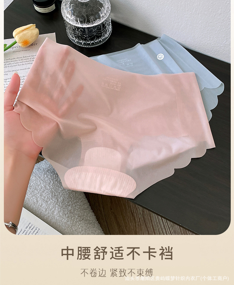 경량 아이스 실크 tracless 속옷 여성의 통기성 퓨어 코튼 항균 크로트 보이지 않는 피부 친화적 인 중간 허리 알몸 여성용 브리프 얇은스토어 가기
