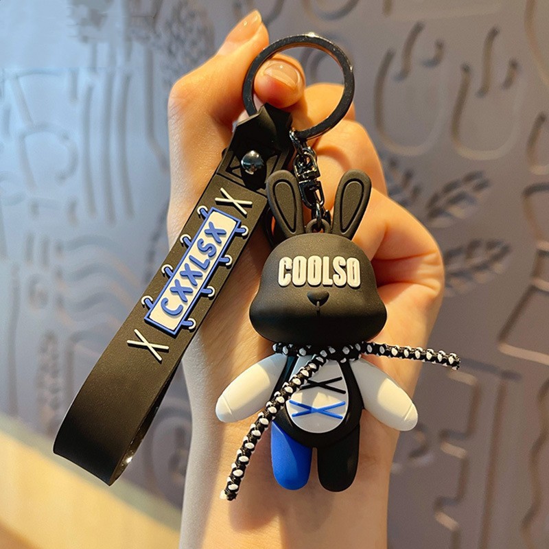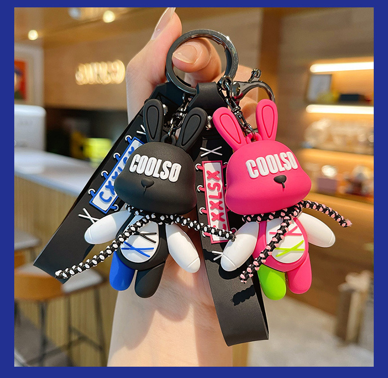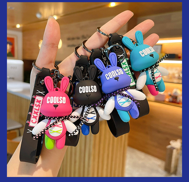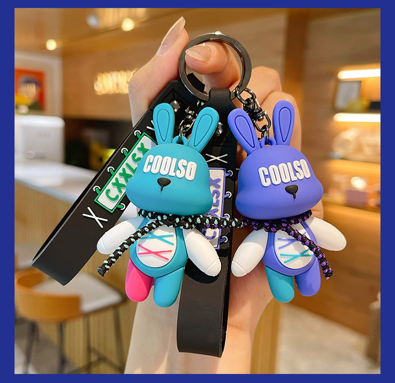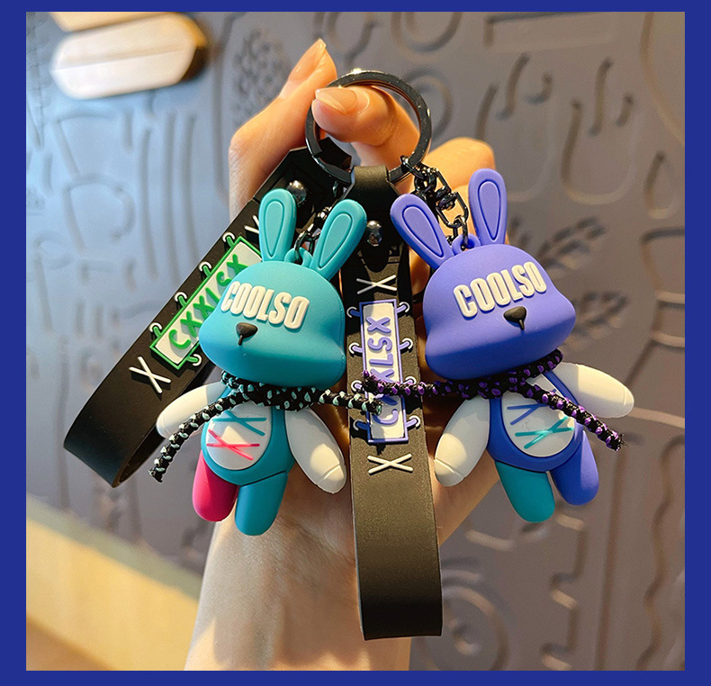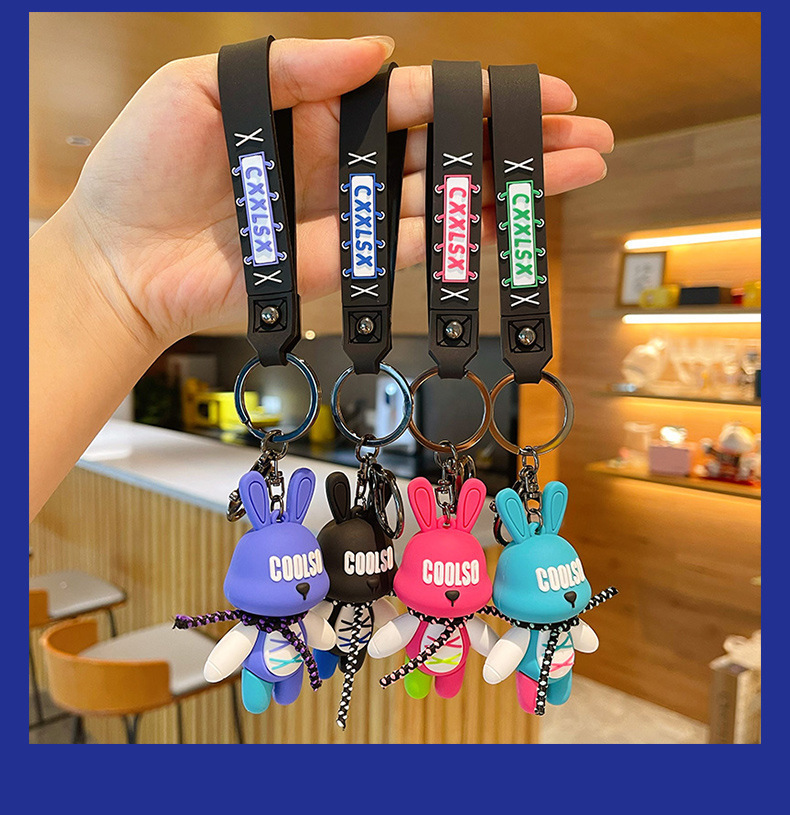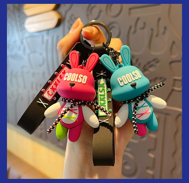 조수 멋진 스트랩 토끼 키 체인 폭력적인 곰 펜던트 남성용 자동차 키 체인 학교 가방 펜던트 절묘한 작은 선물 배치