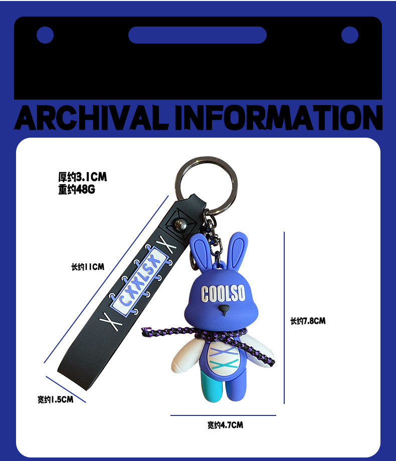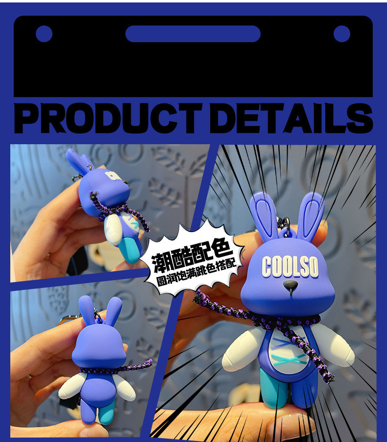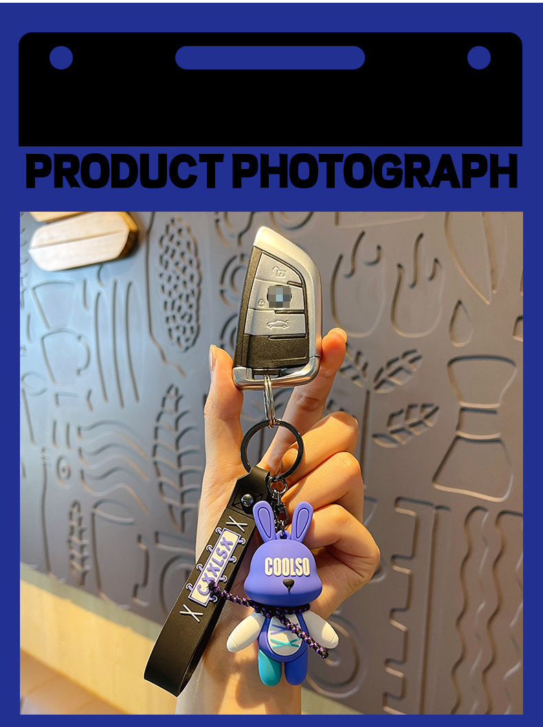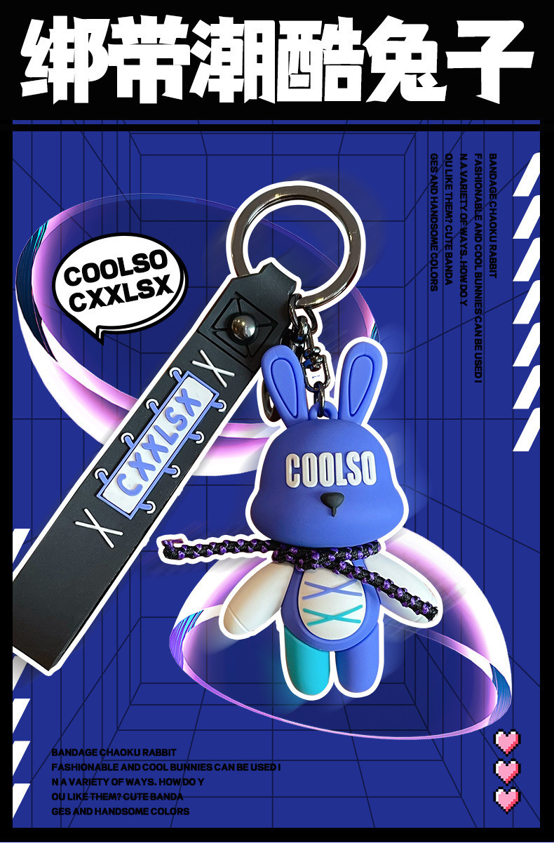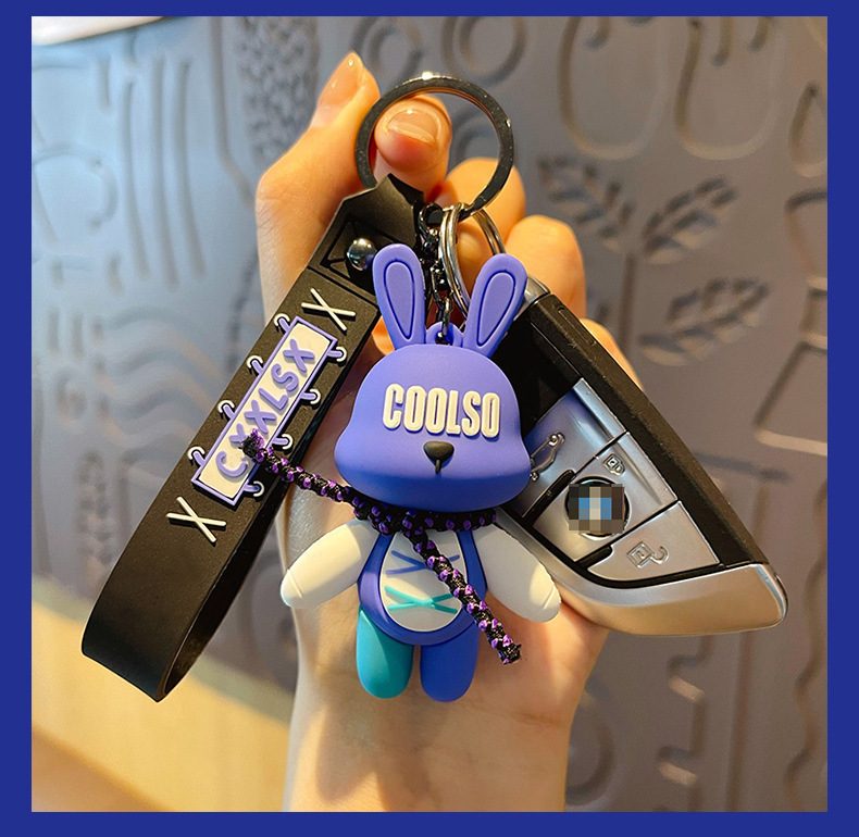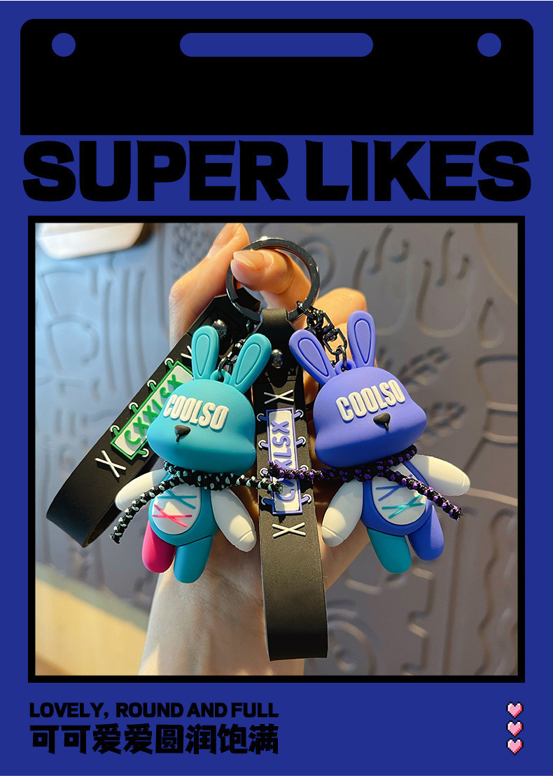 조수 멋진 스트랩 토끼 키 체인 폭력적인 곰 펜던트 남성용 자동차 키 체인 학교 가방 펜던트 절묘한 작은 선물 배치