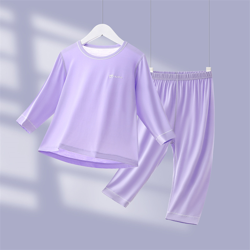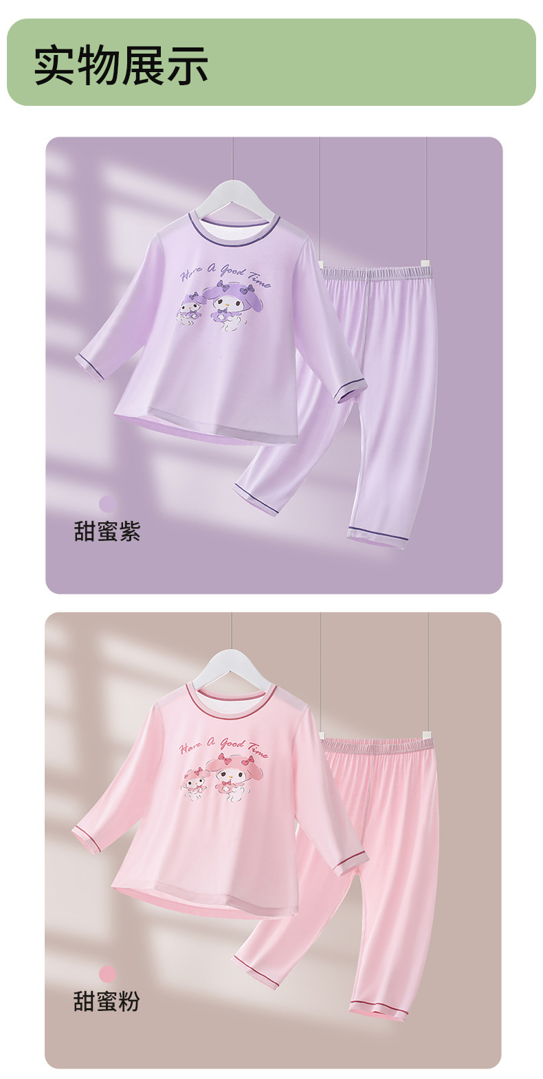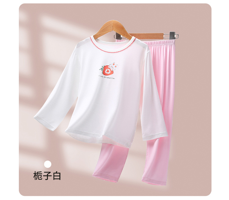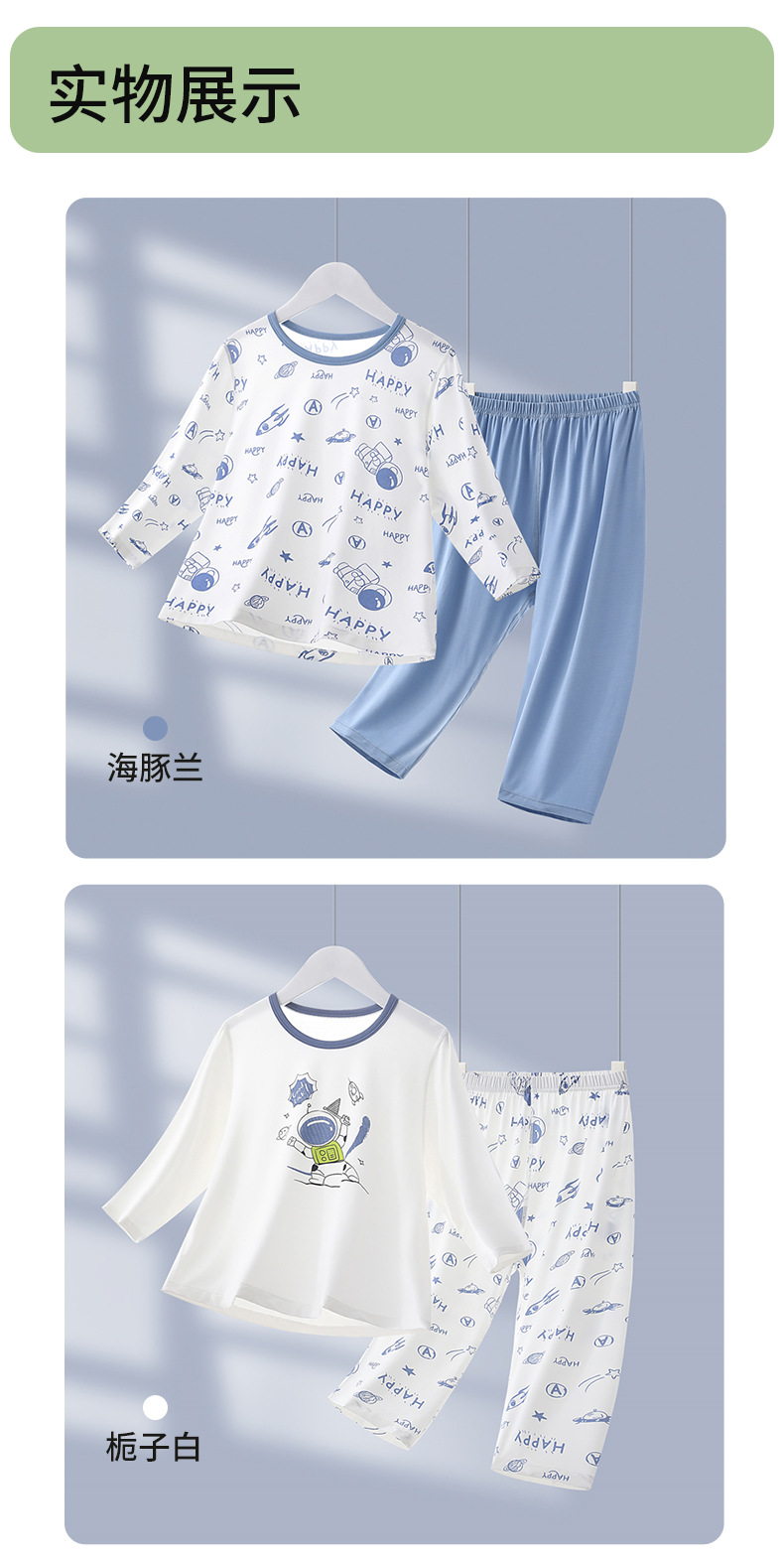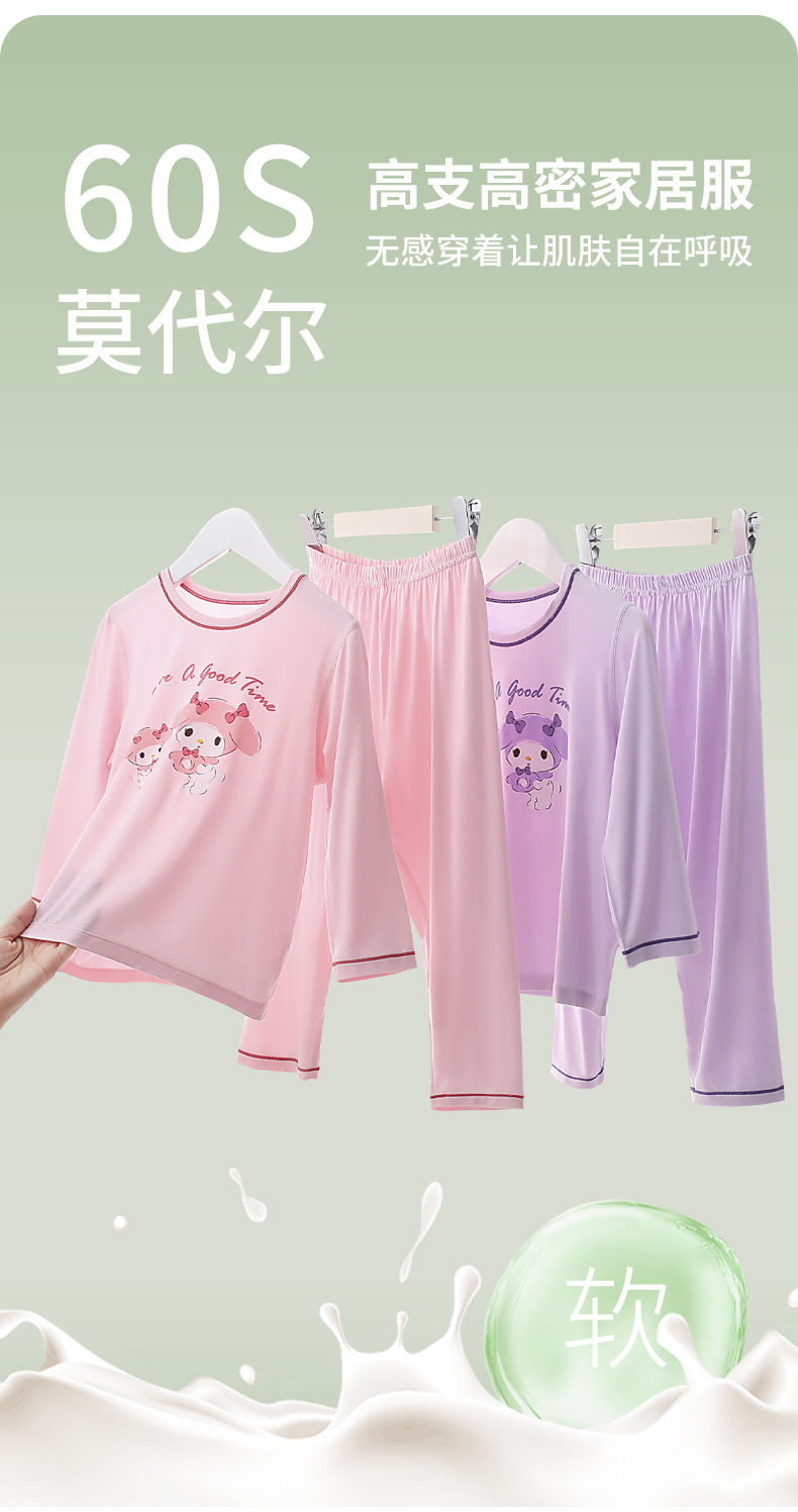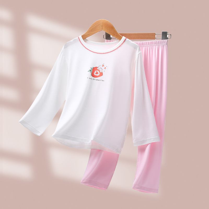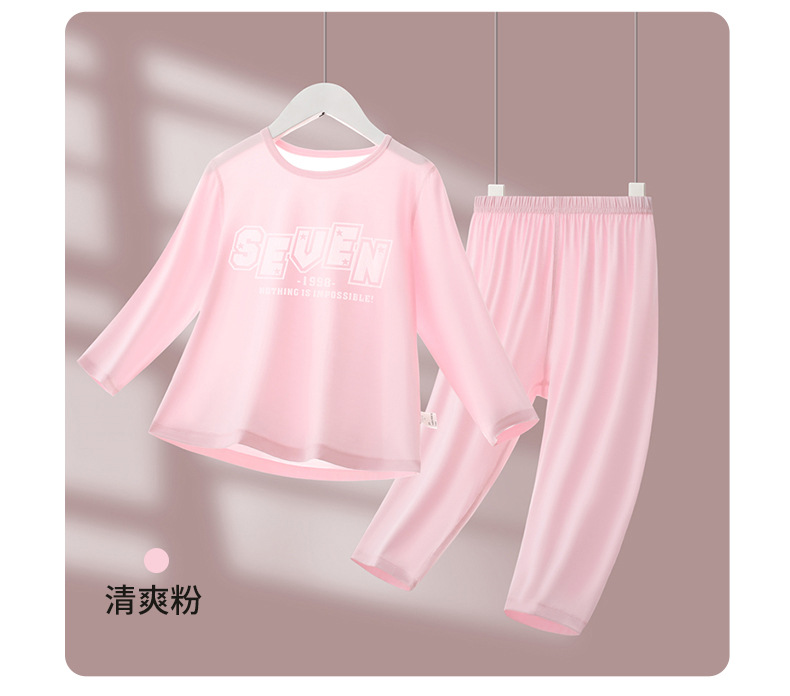 봄과 여름 새로운 모달 홈 의류 소녀 얇은 통기성 파자마 대형 어린이 아이스 실크 긴 소매 에어컨 세트