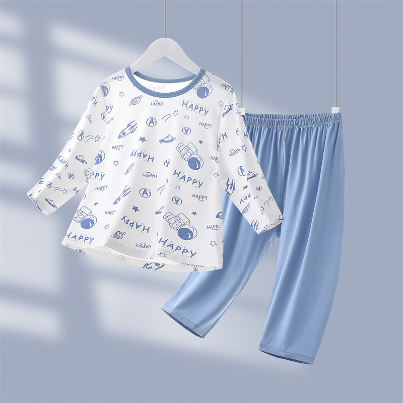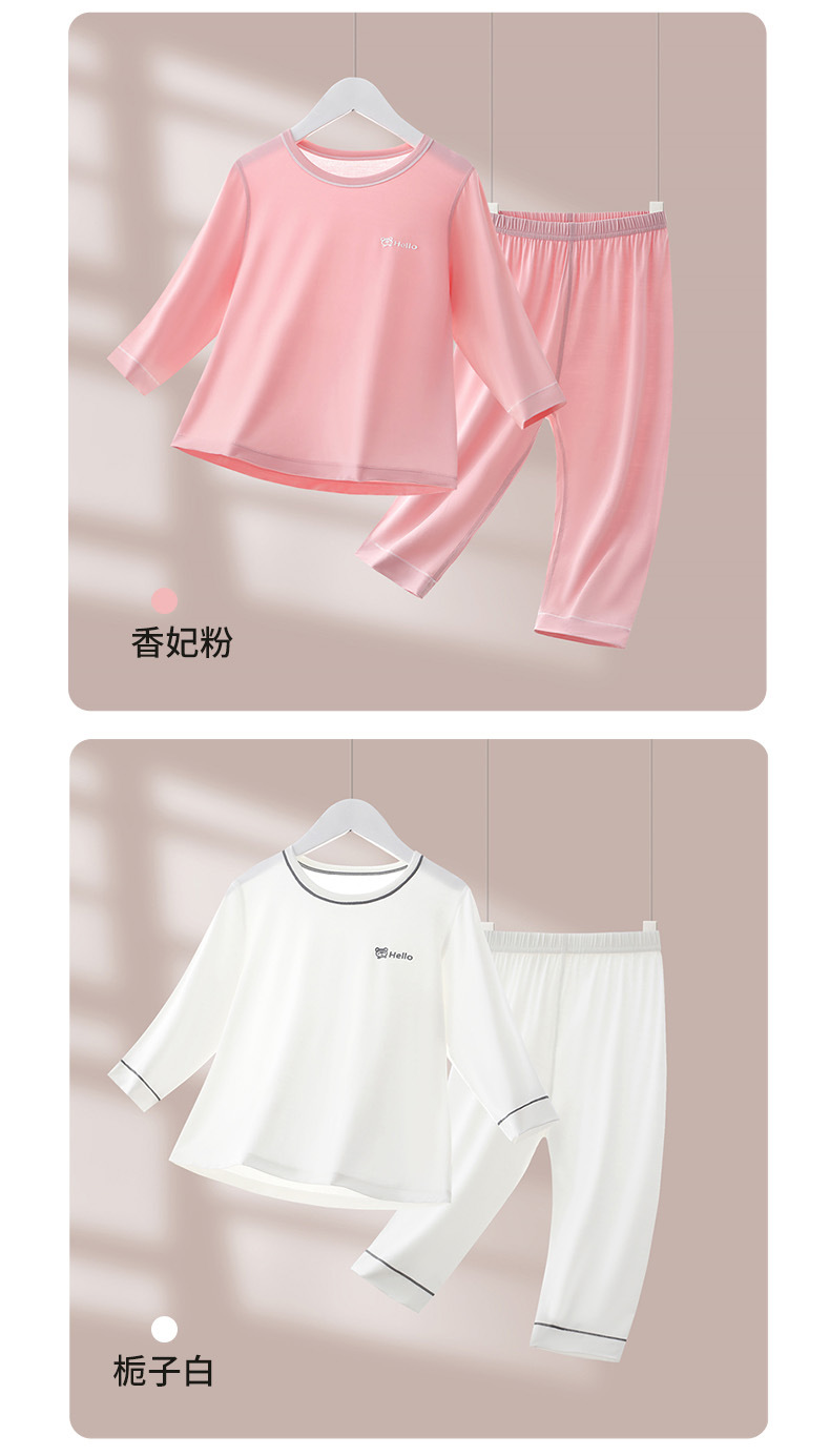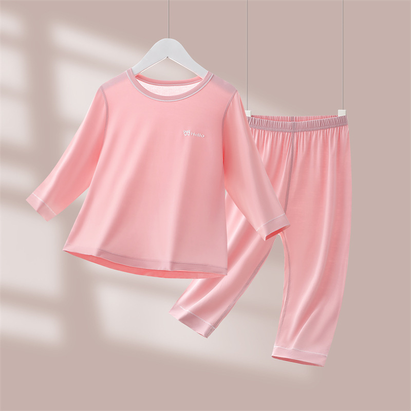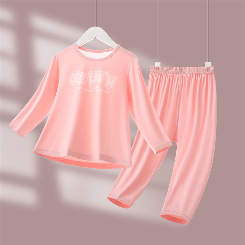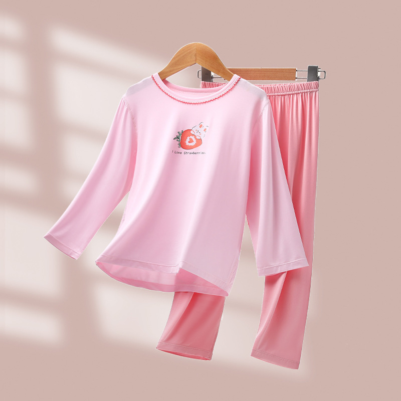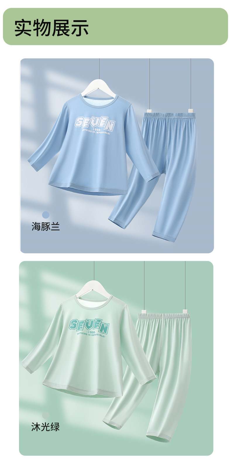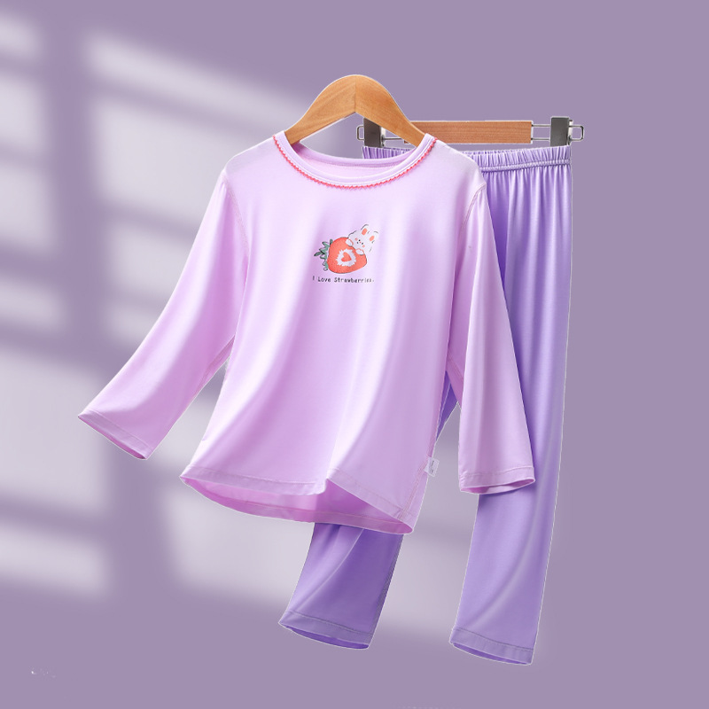 봄과 여름 새로운 모달 홈 의류 소녀 얇은 통기성 파자마 대형 어린이 아이스 실크 긴 소매 에어컨 세트