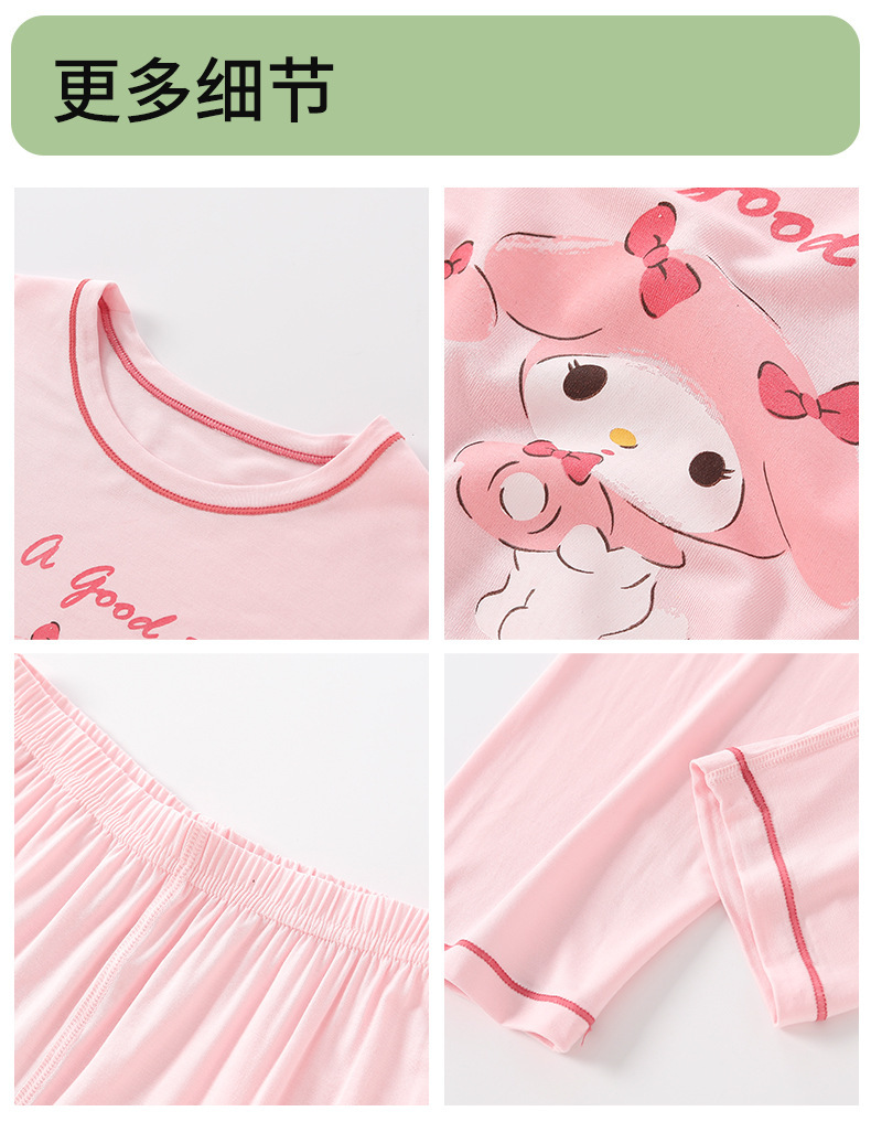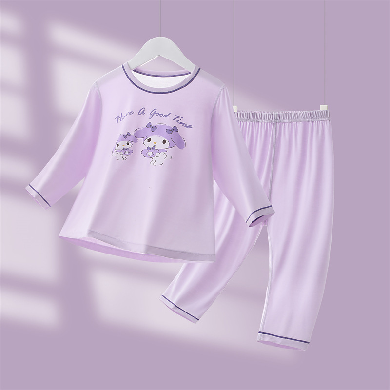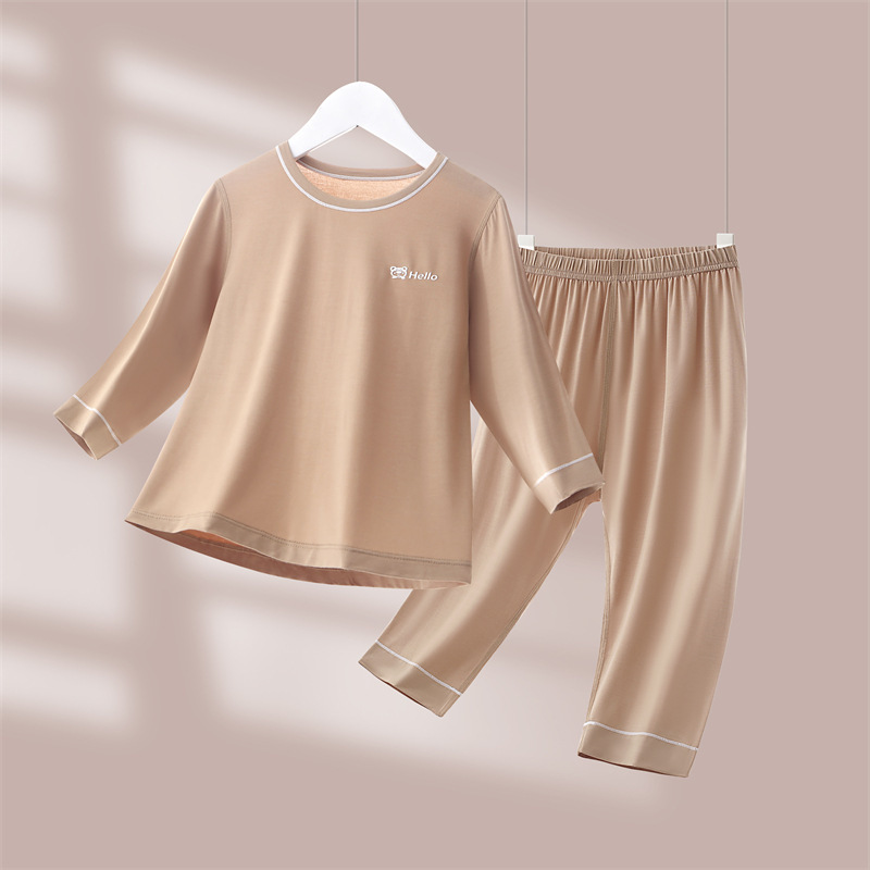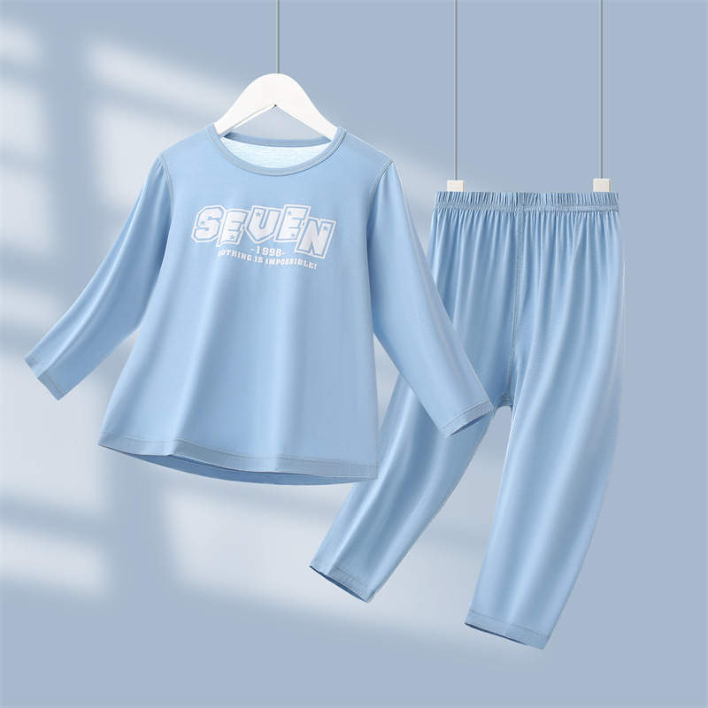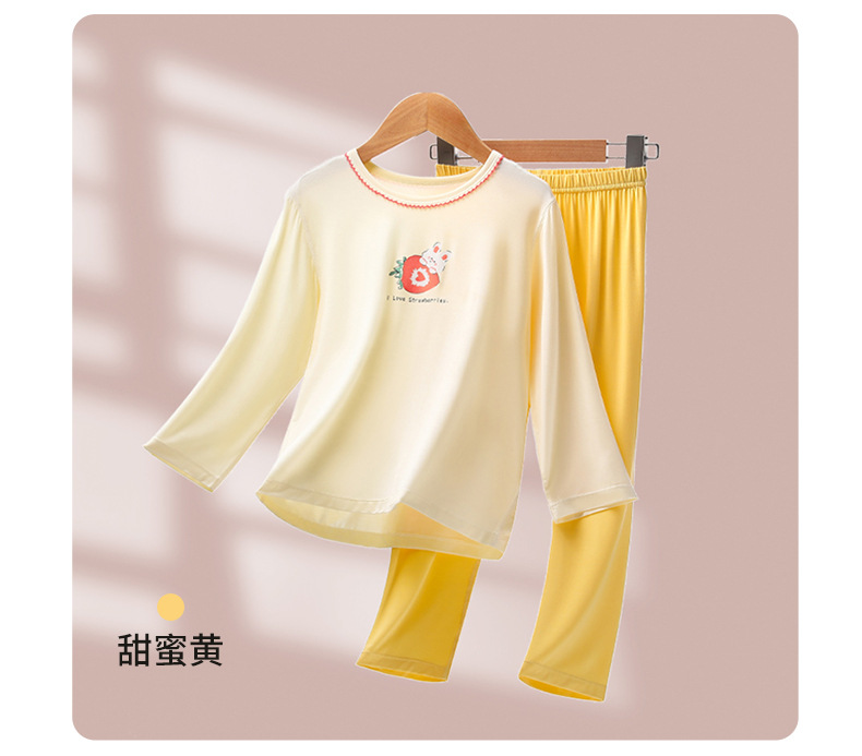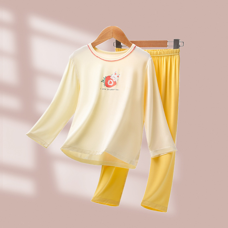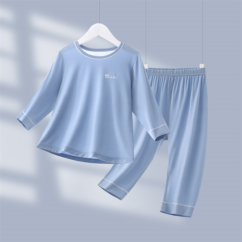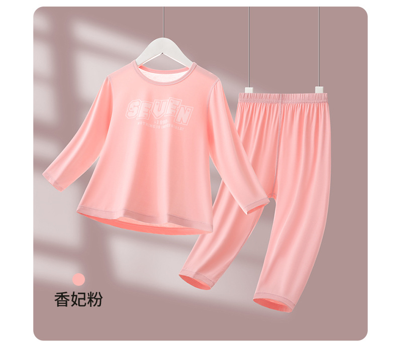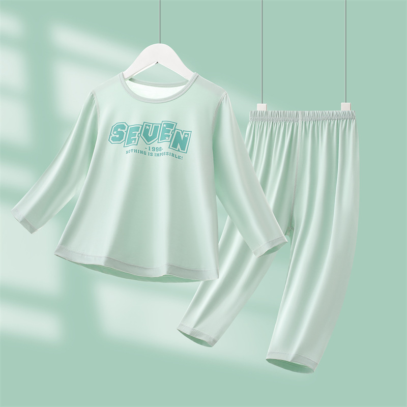 봄과 여름 새로운 모달 홈 의류 소녀 얇은 통기성 파자마 대형 어린이 아이스 실크 긴 소매 에어컨 세트