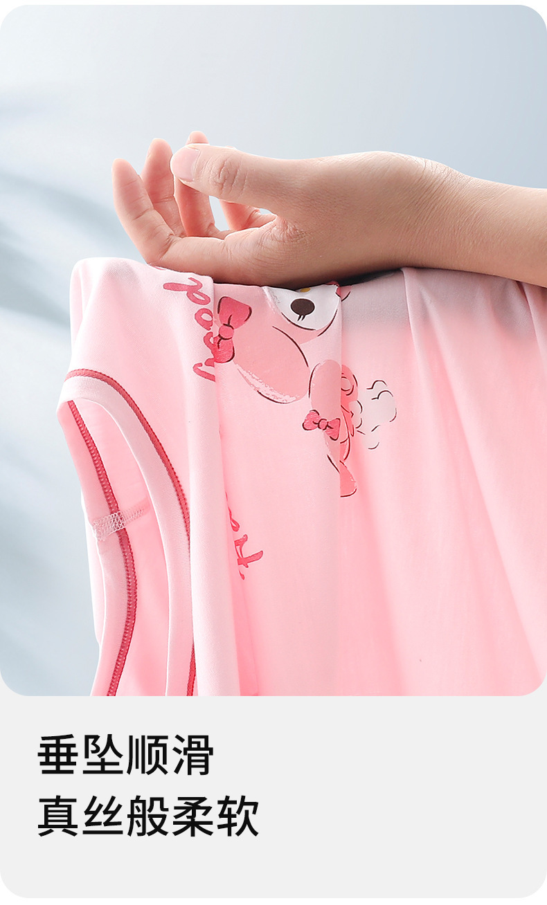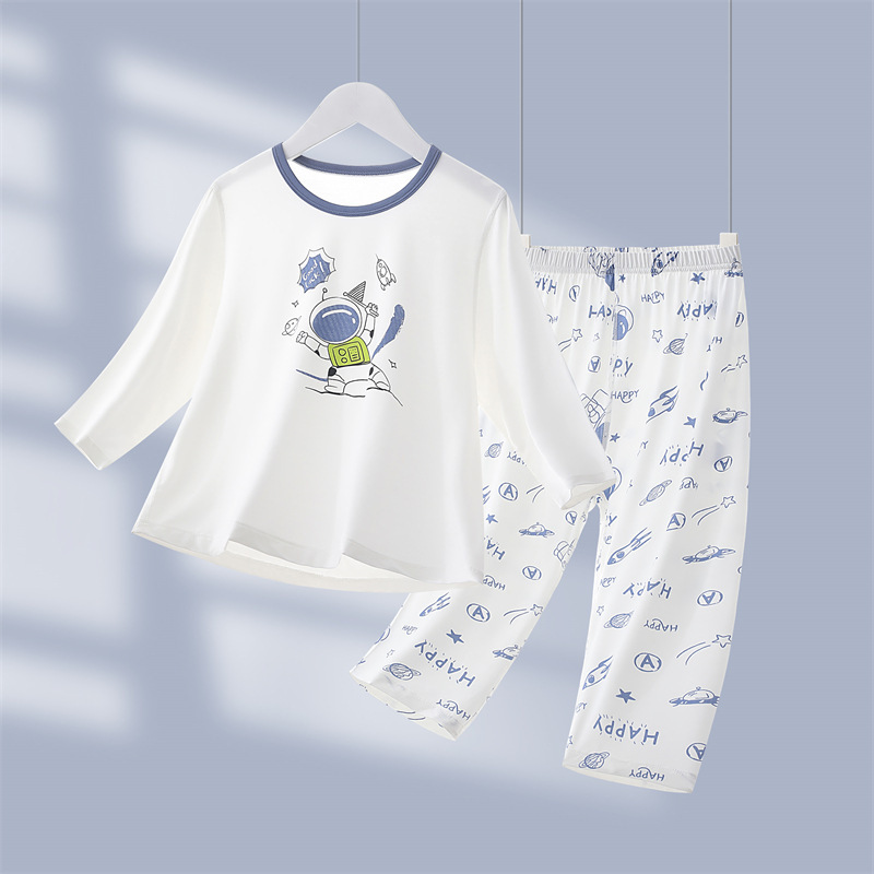 봄과 여름 새로운 모달 홈 의류 소녀 얇은 통기성 파자마 대형 어린이 아이스 실크 긴 소매 에어컨 세트스토어 가기
