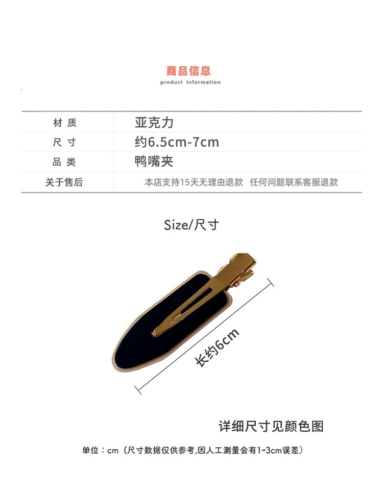 한국 스타일 Acetic Acid Girls Side Clip Seamless Hairpin Retro 2 색 우아한 사이드 뱅 덕빌 클립 단순 헤어핀스토어 가기