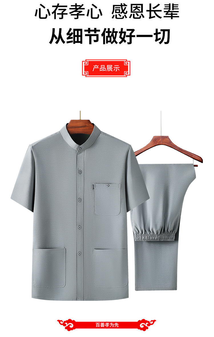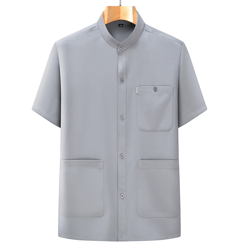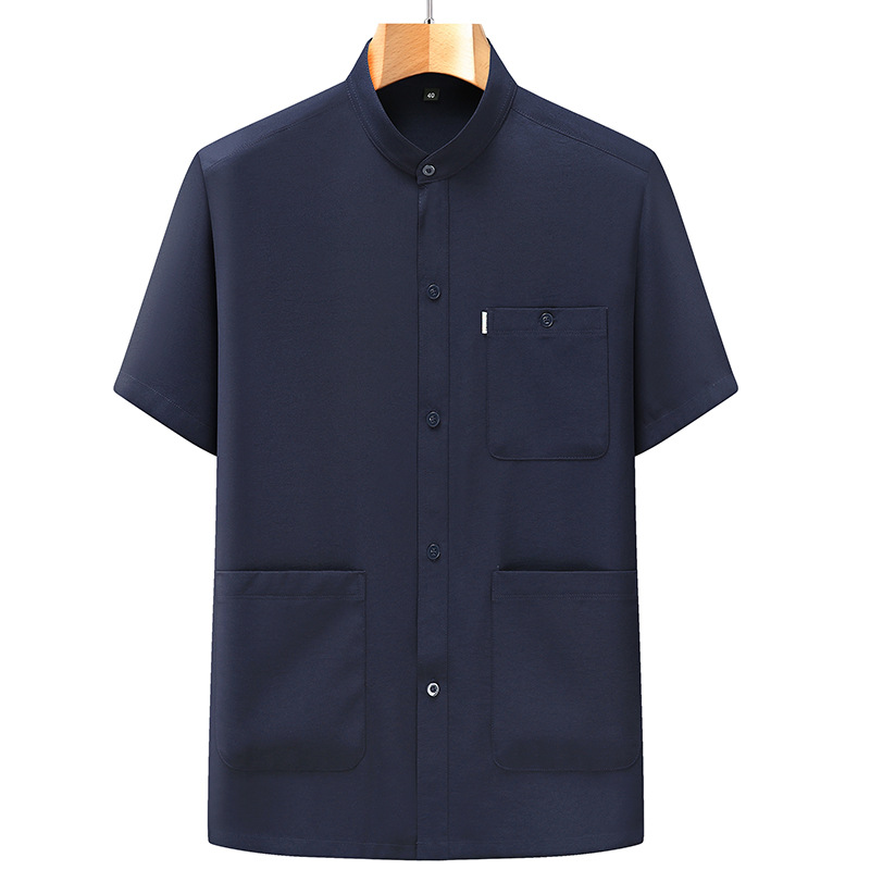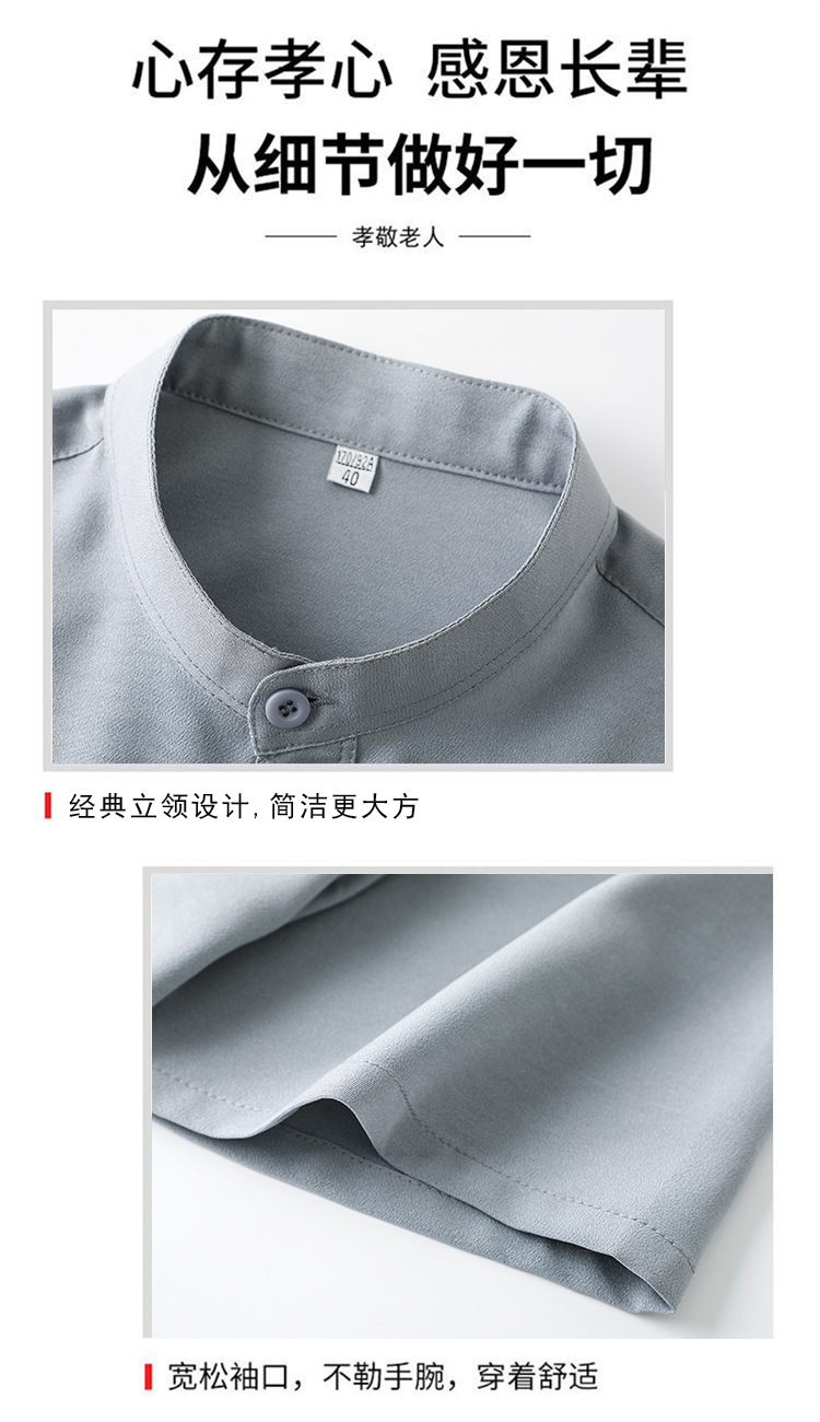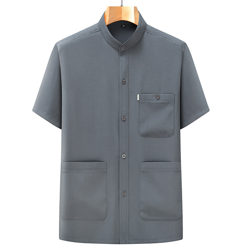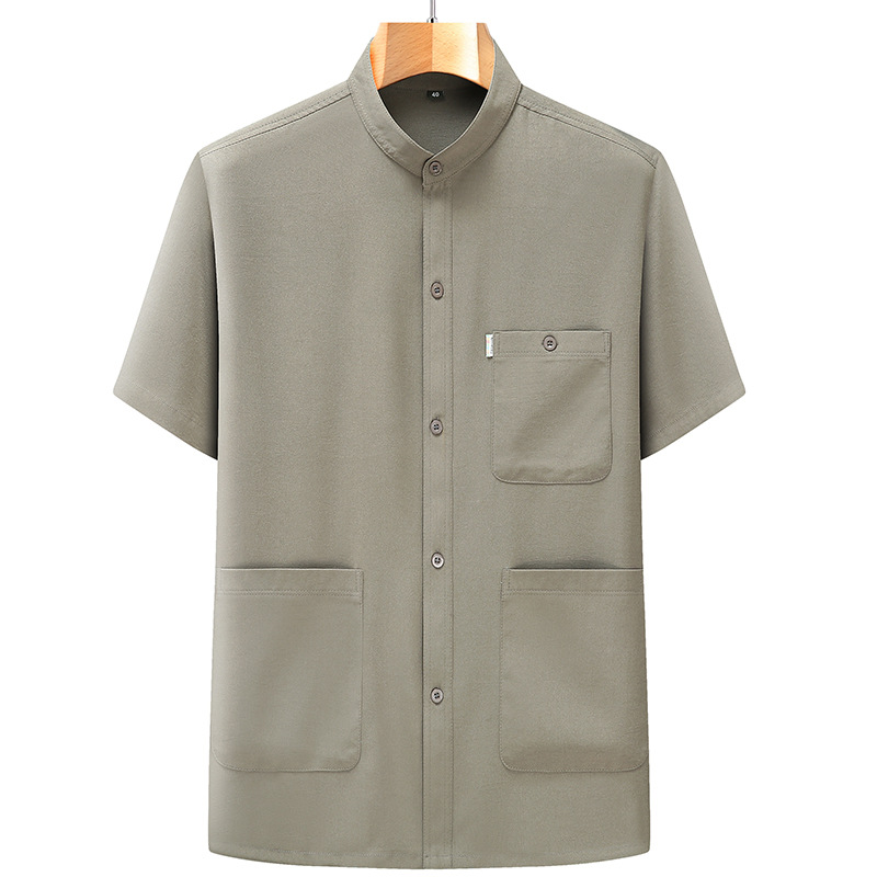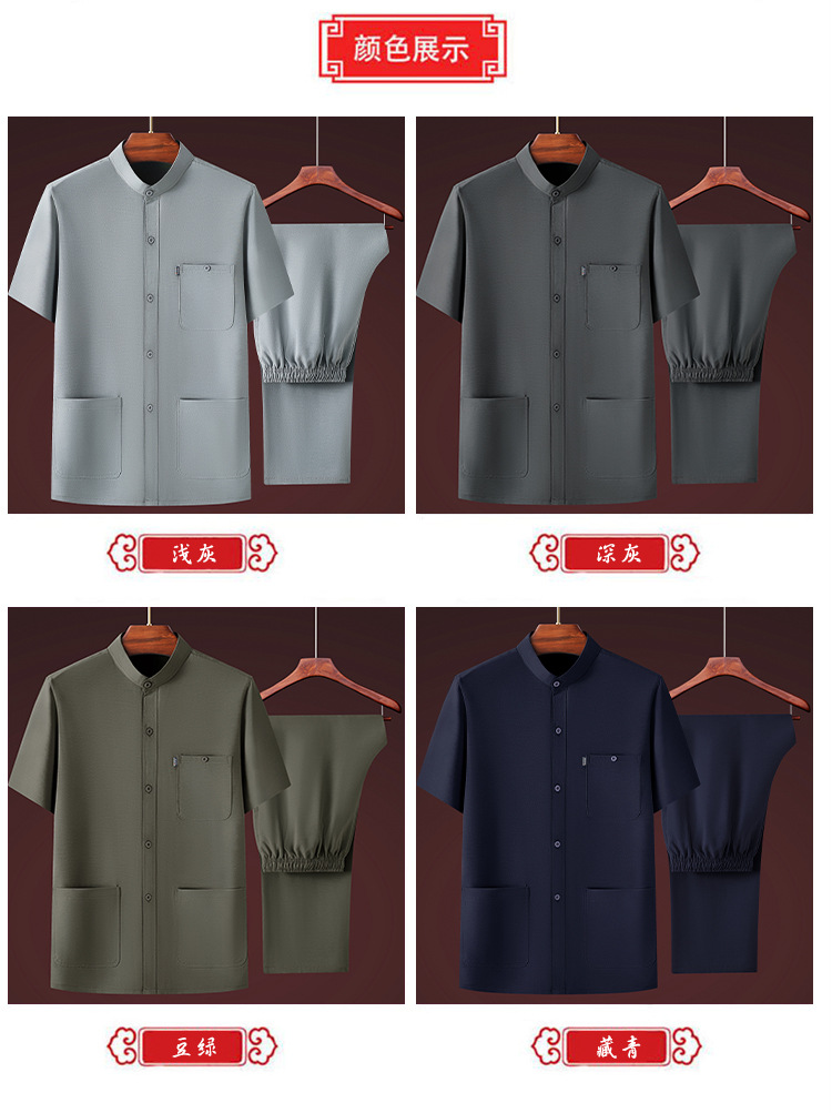 중년 및 노인 남성 여름 반팔 셔츠 스탠드 칼라 아버지의 노인을위한 얇은 세트 투피스 올 매치 셔츠스토어 가기