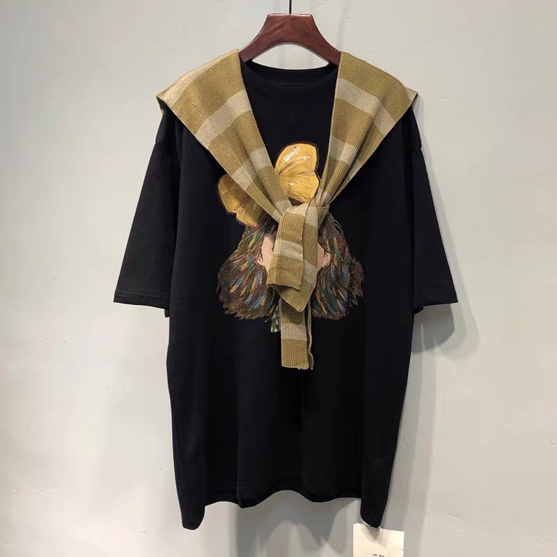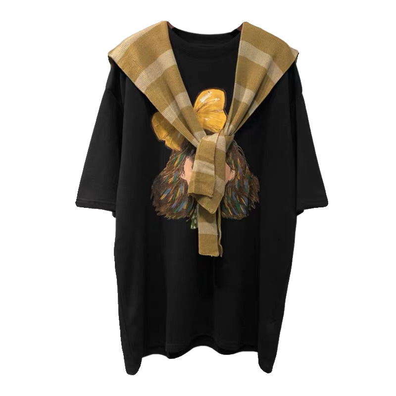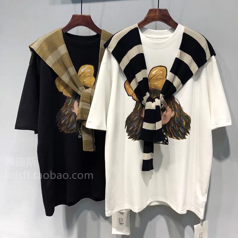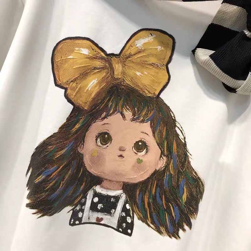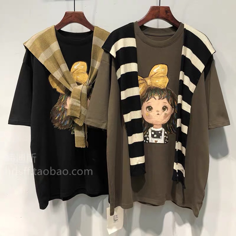통통녀 최고의 귀여운 만화 어린 소녀 한국 ulzzang Loose Cotton 중간 길이의 반팔 티셔츠 여성의 여름