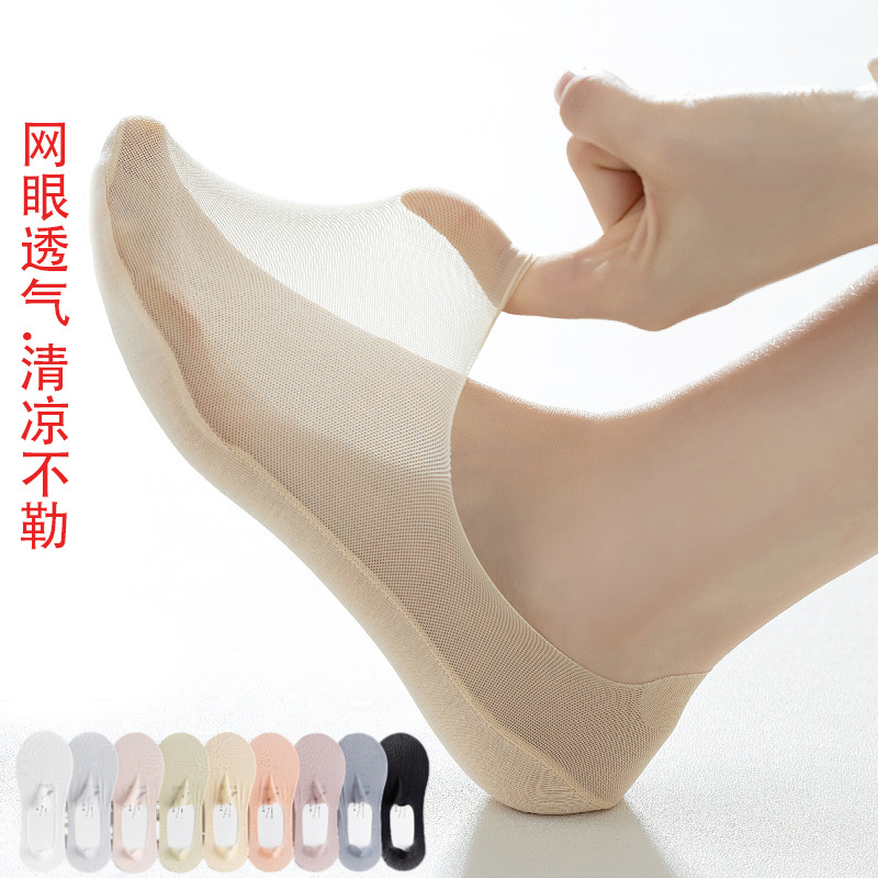 여성용 보트 양말 여름 얼음 실크 초박형 땀 흡수 간단한 얕은 입 메쉬 실리콘 미끄럼 방지 비 떨어지는 보이지 않는 여성용 양말