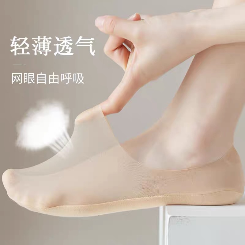 여성용 보트 양말 여름 얼음 실크 초박형 땀 흡수 간단한 얕은 입 메쉬 실리콘 미끄럼 방지 비 떨어지는 보이지 않는 여성용 양말스토어 가기