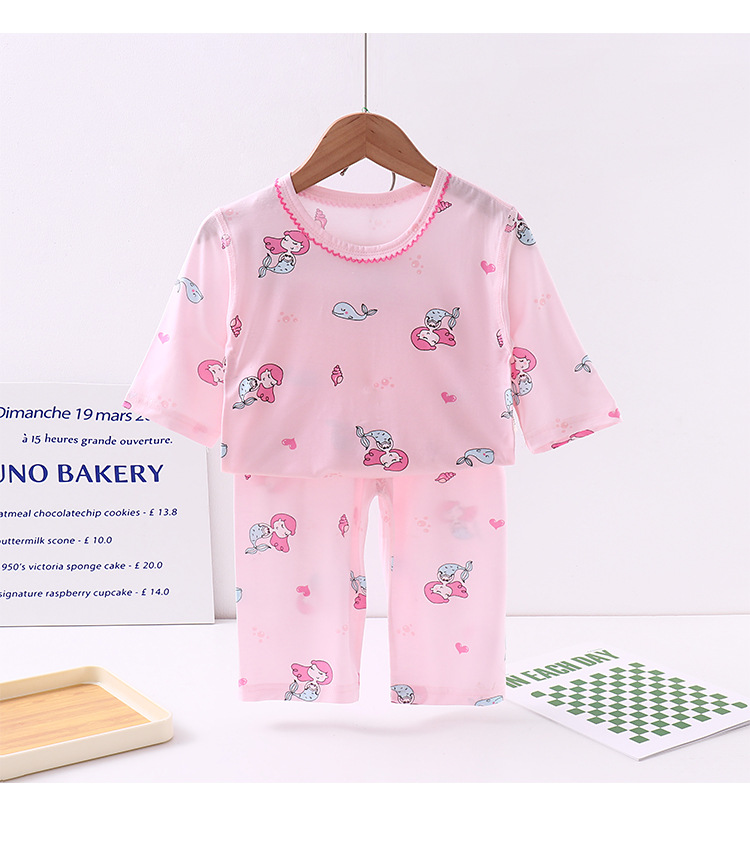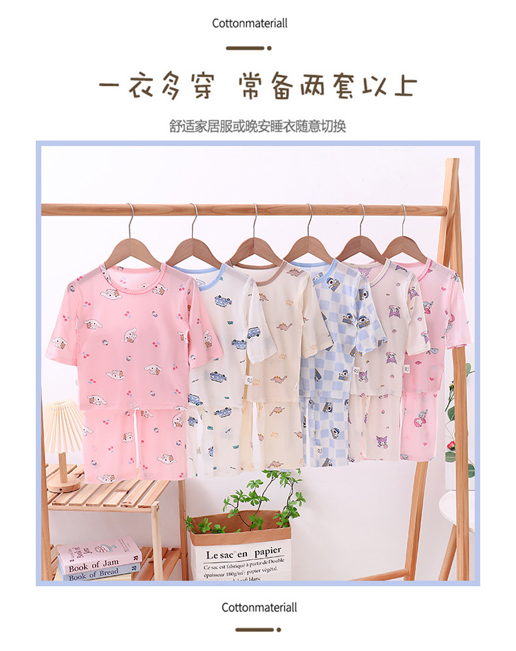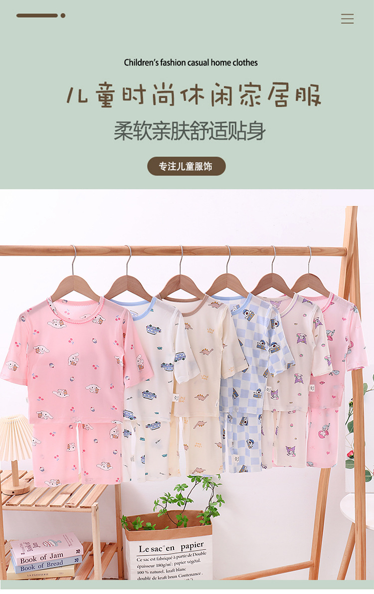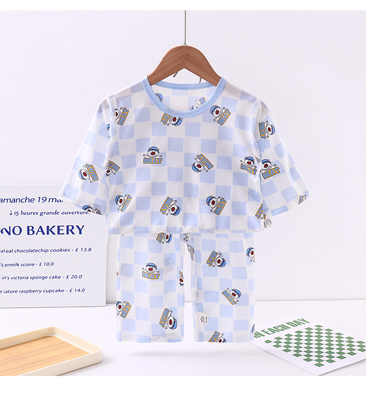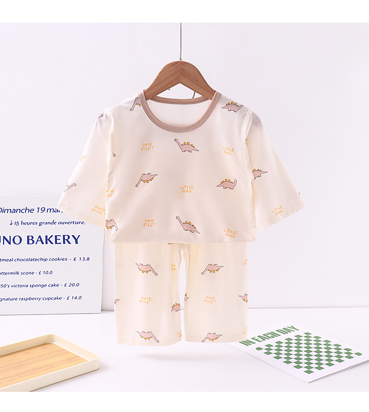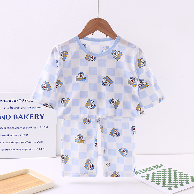 소년 소녀를위한 어린이 잠옷 세트 Tencel Lyocell 슬리브 본리스 홈 옷 여름 얇은 에어컨 옷스토어 가기