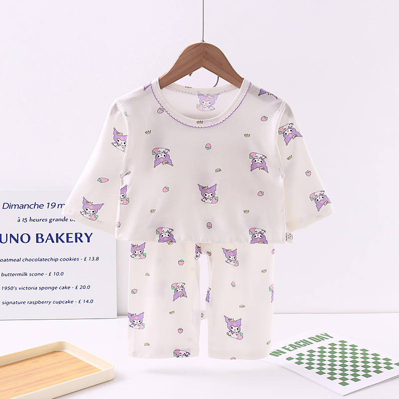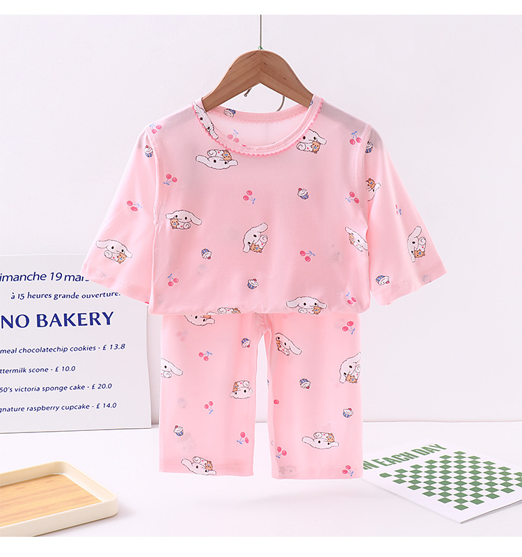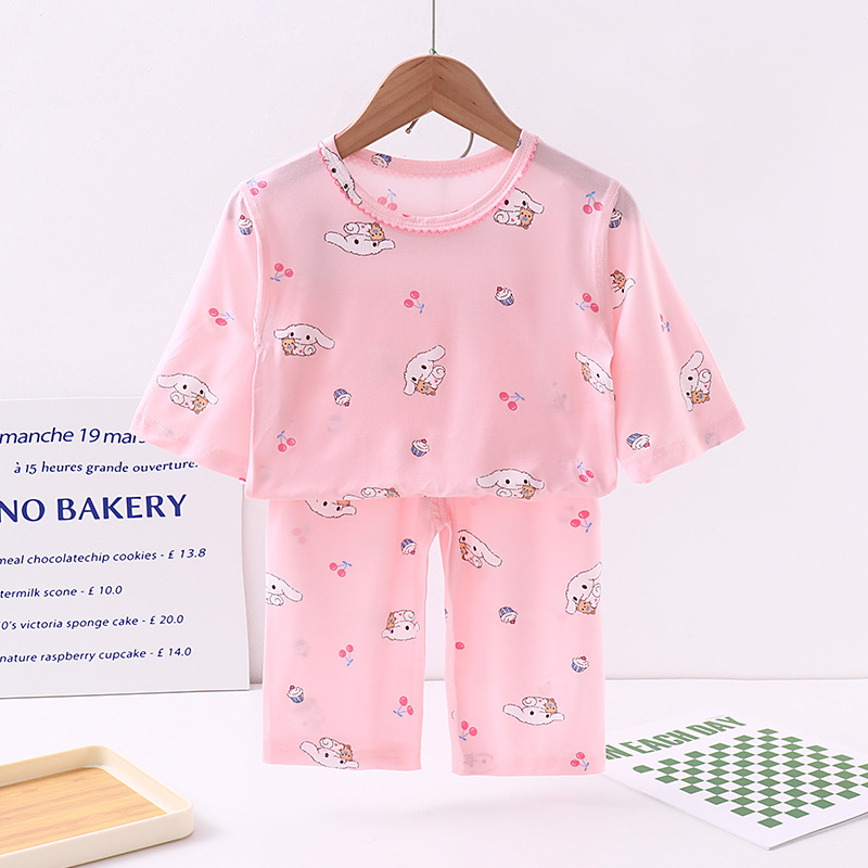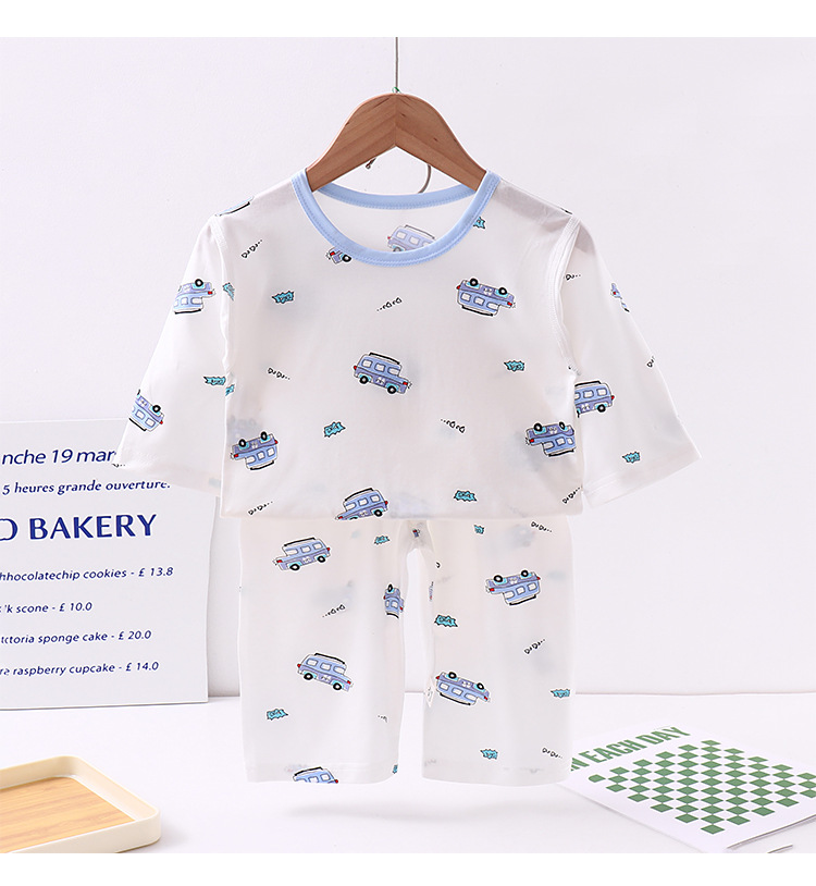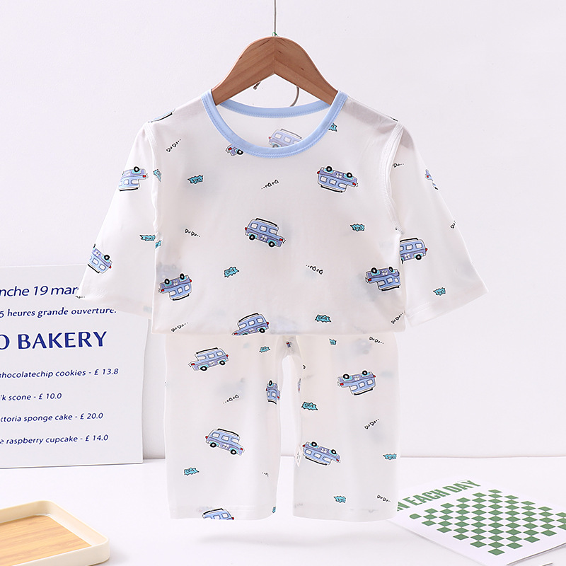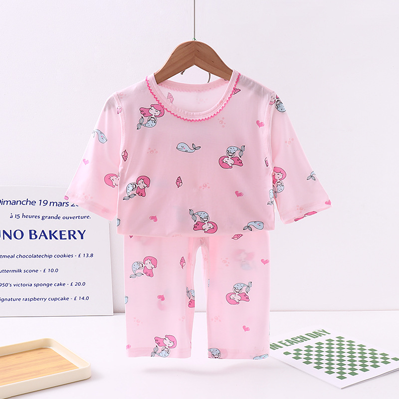 소년 소녀를위한 어린이 잠옷 세트 Tencel Lyocell 슬리브 본리스 홈 옷 여름 얇은 에어컨 옷스토어 가기