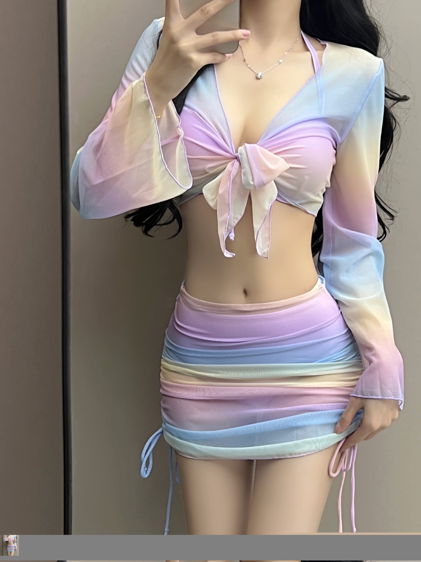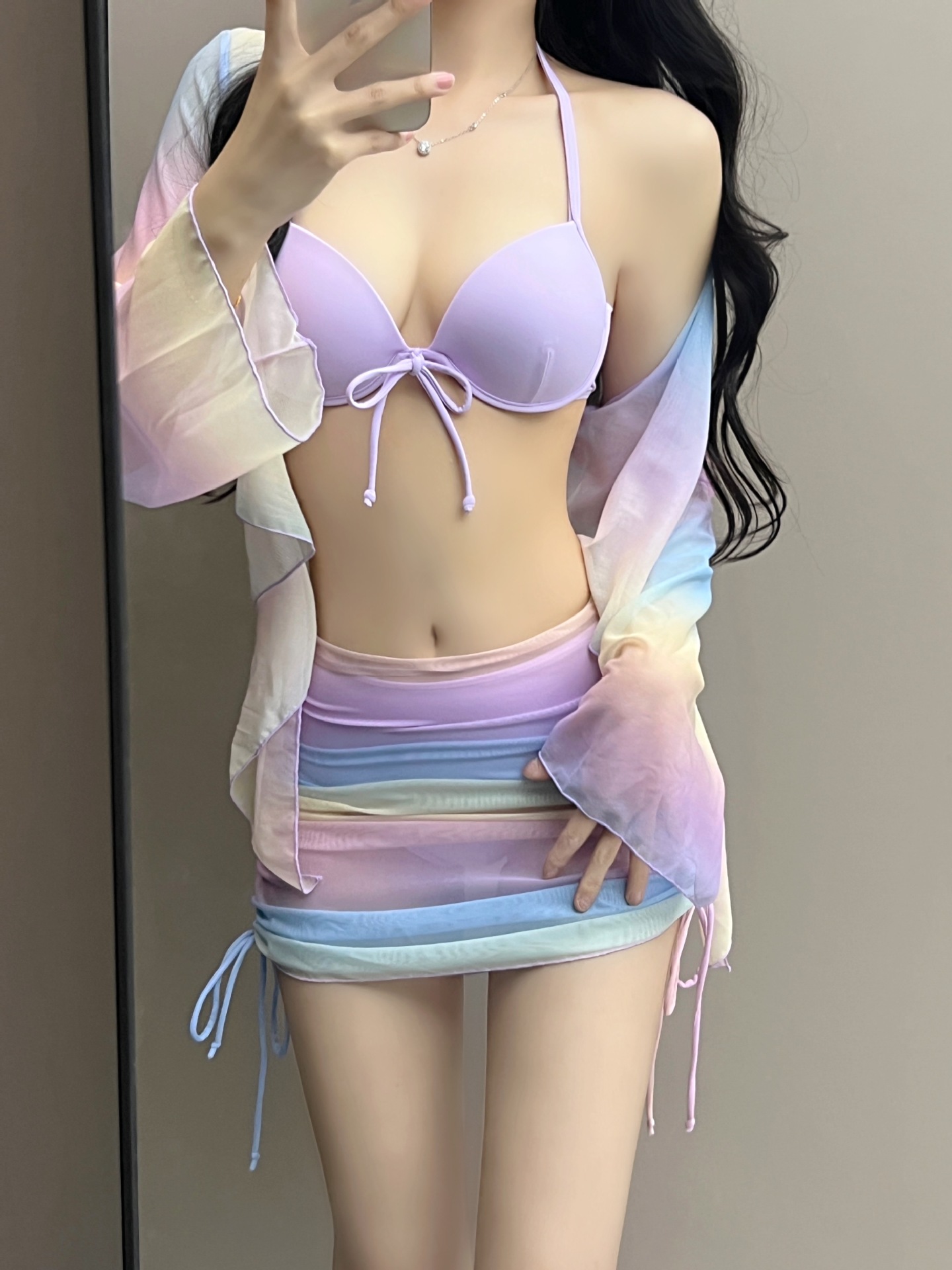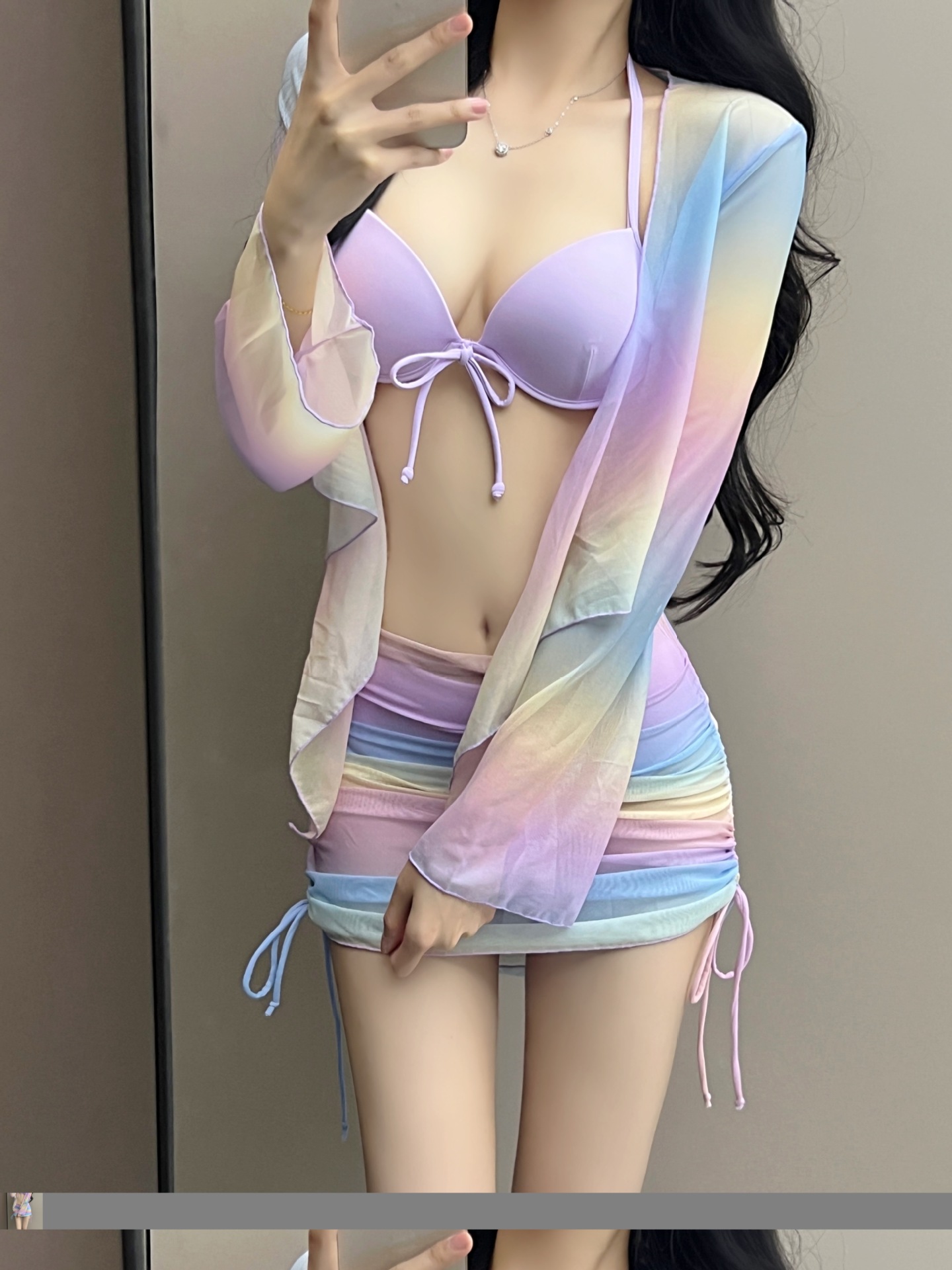 비키니 4종 세트 자외선 차단 배 가리기 슬림 효과 인기 순수 섹시 스타일 고급스러운 2025년 신상 하이웨이스트 수영복 여성용스토어 가기