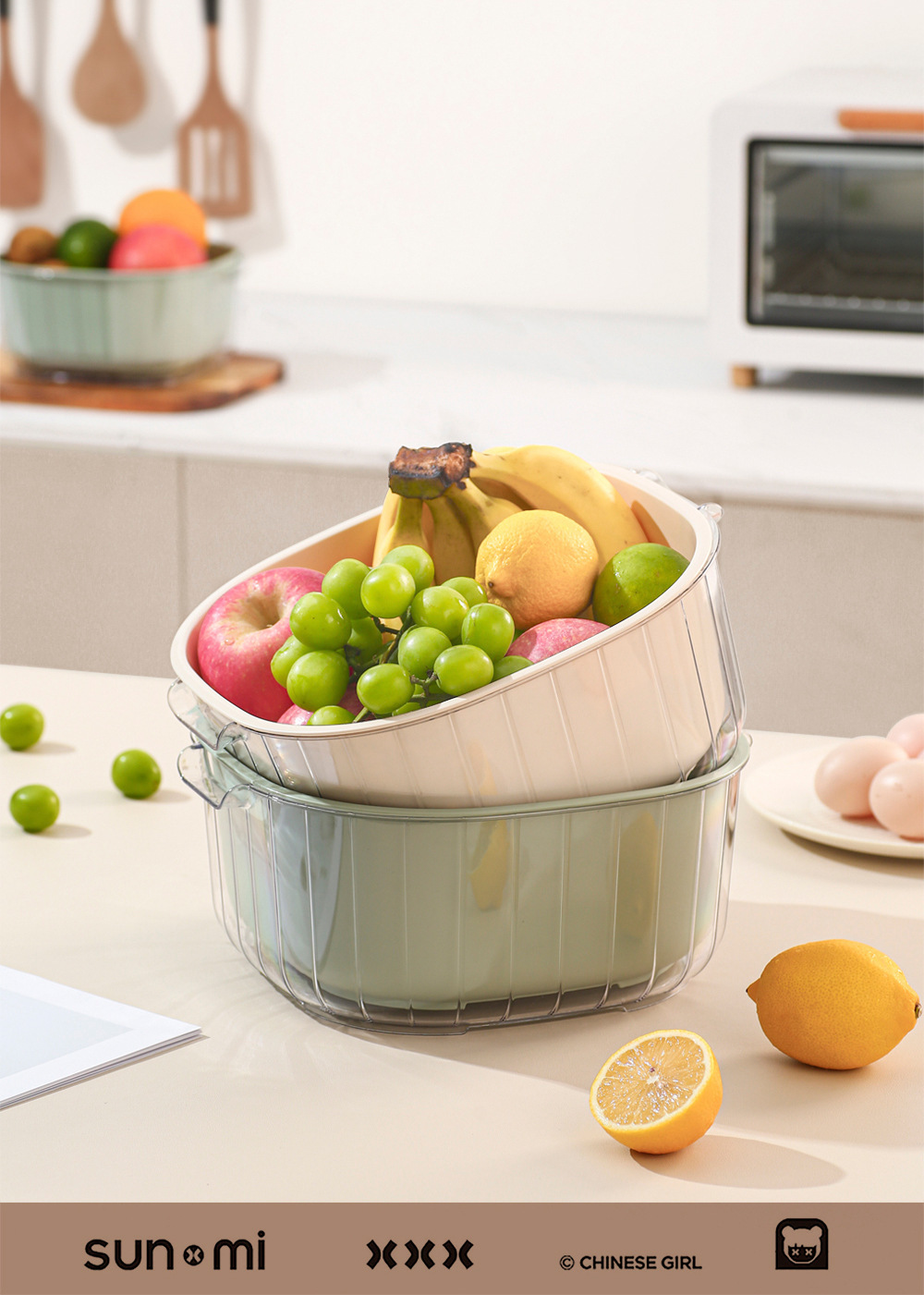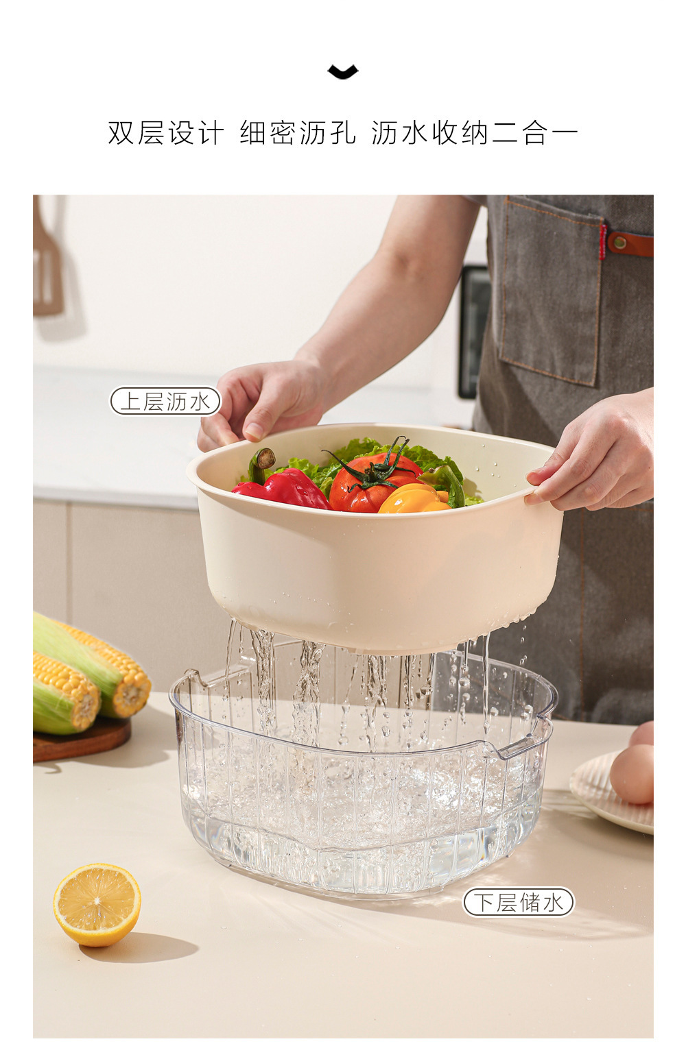 2 층 야채 세척 분지 배수 바구니 가정용 거실 플라스틱 과일 접시 두꺼운 주방 물 배수 야채 바구니 쌀 씻기 야채 바구니