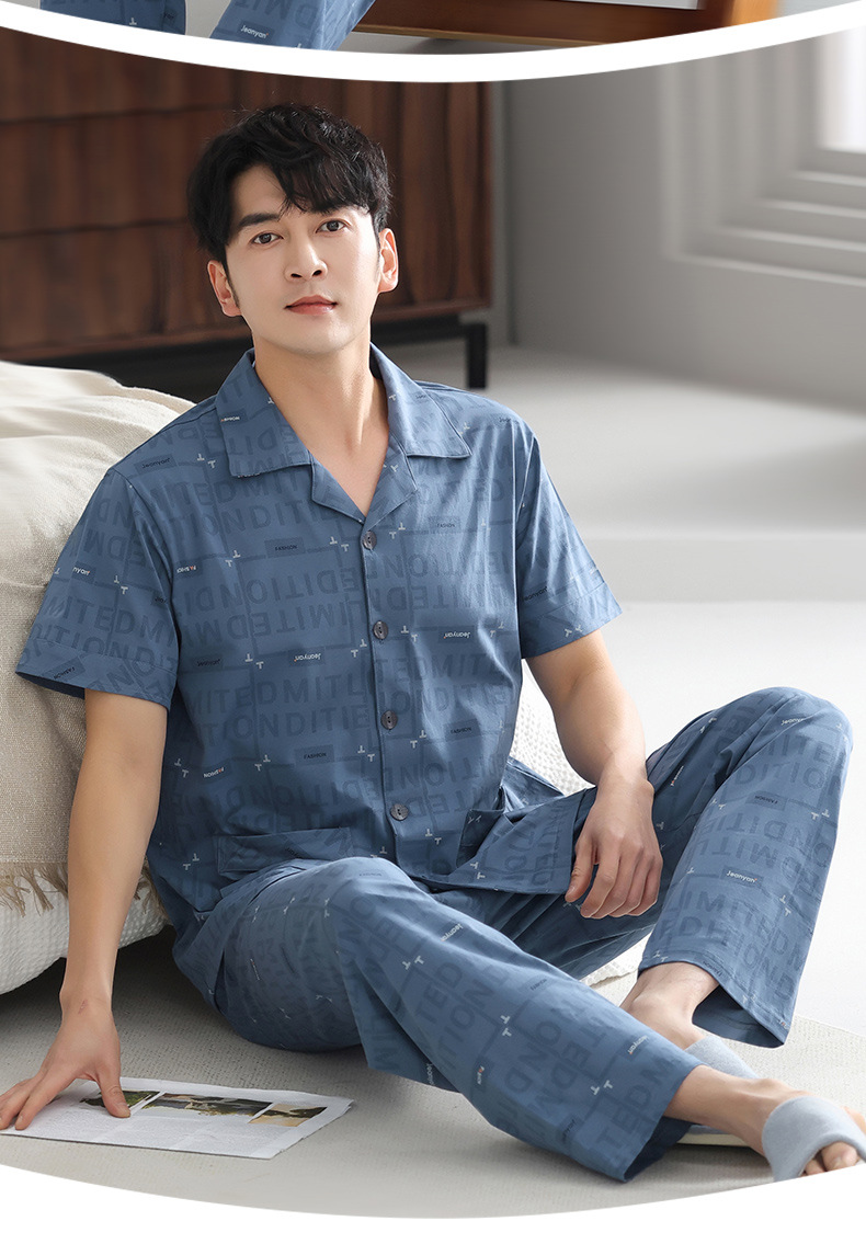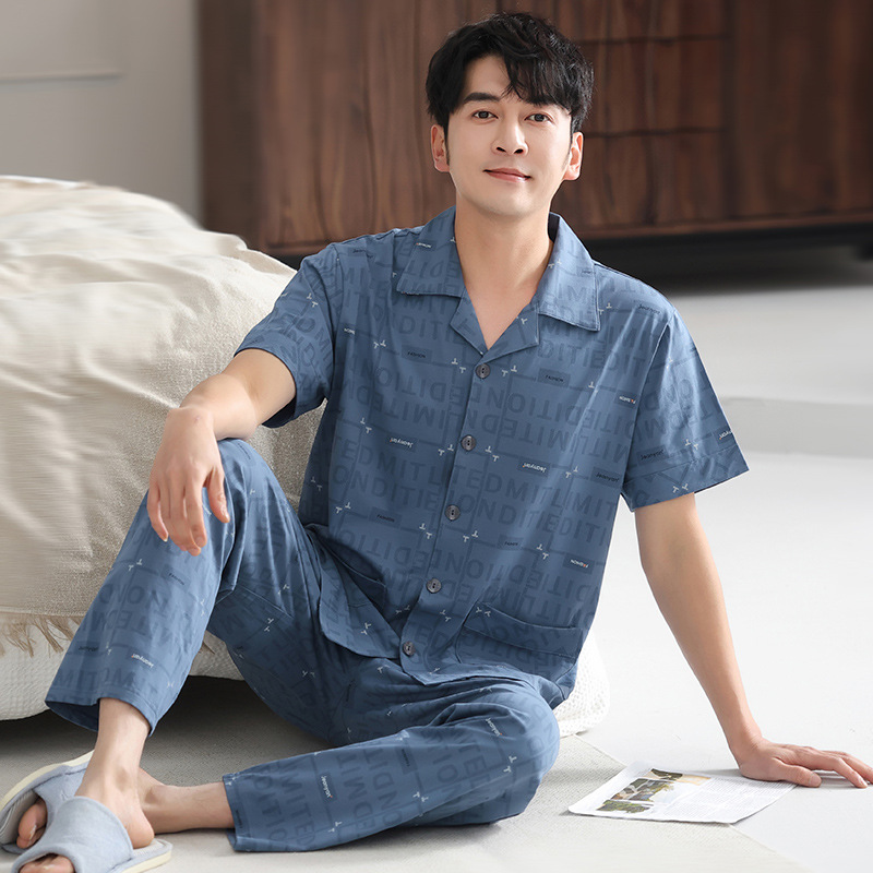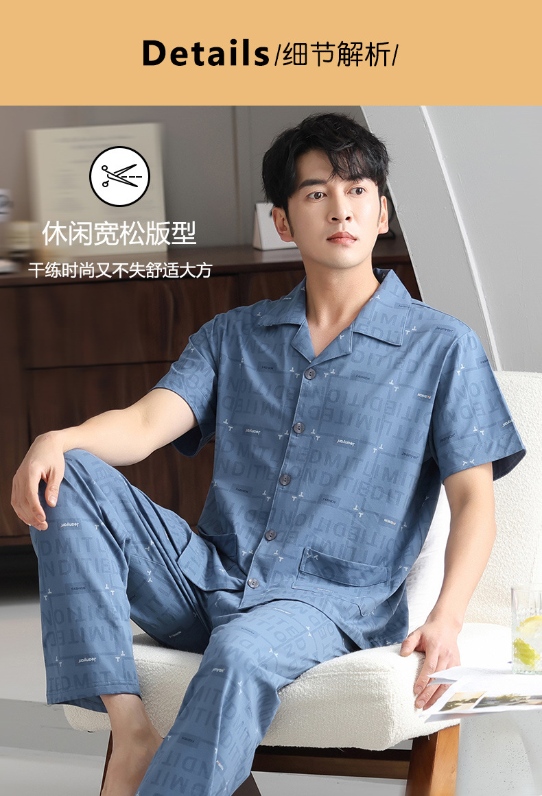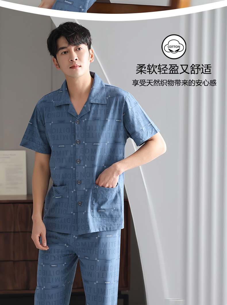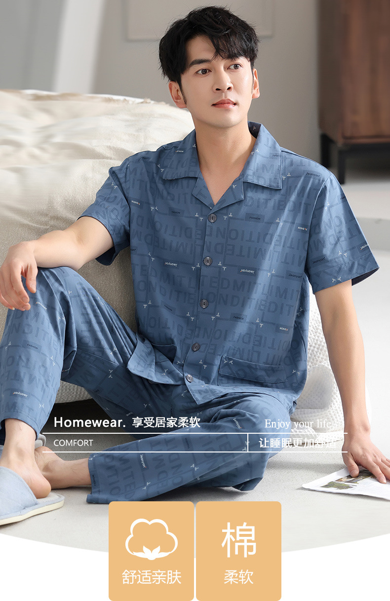 잠옷 남자 여름 순면 반소매 바지 얇은 여름 남자 플러스 사이즈 여름 남자 반소매 홈 옷