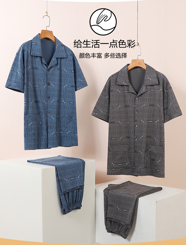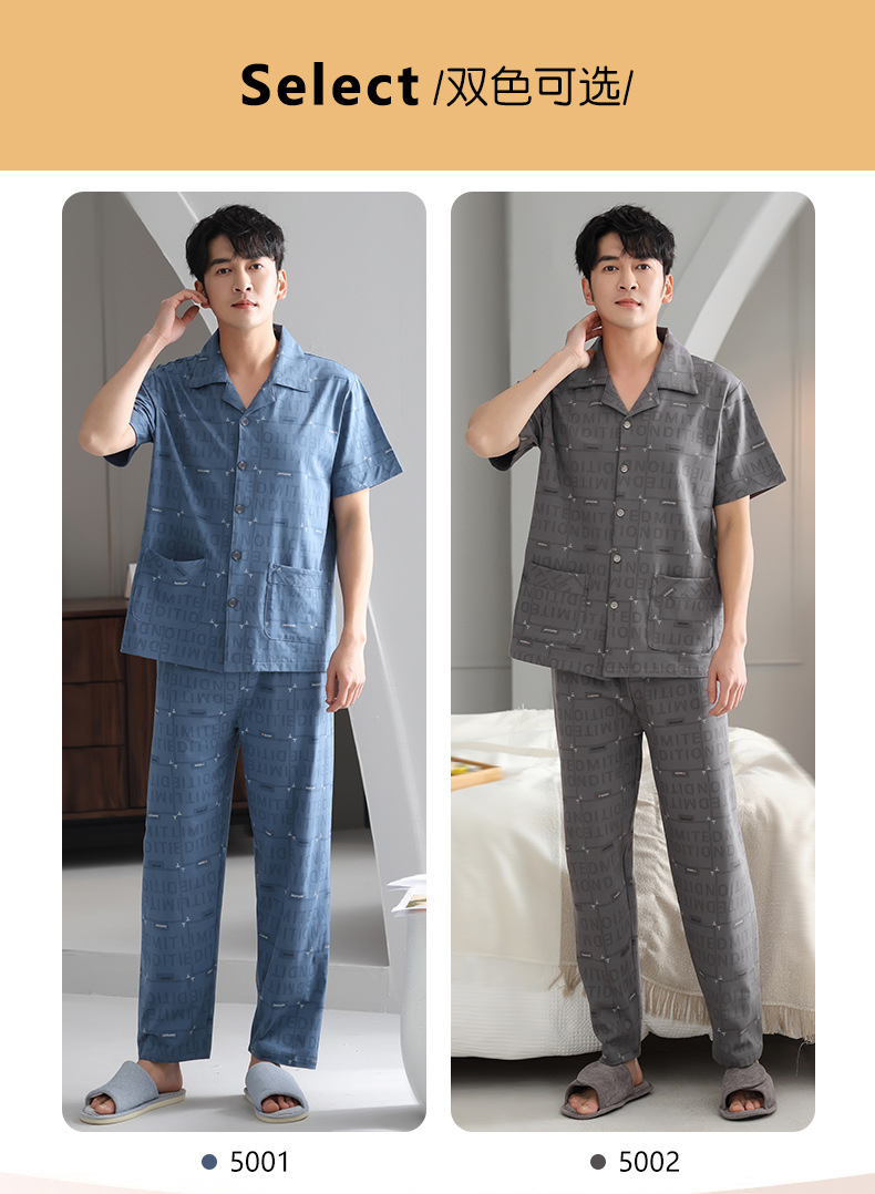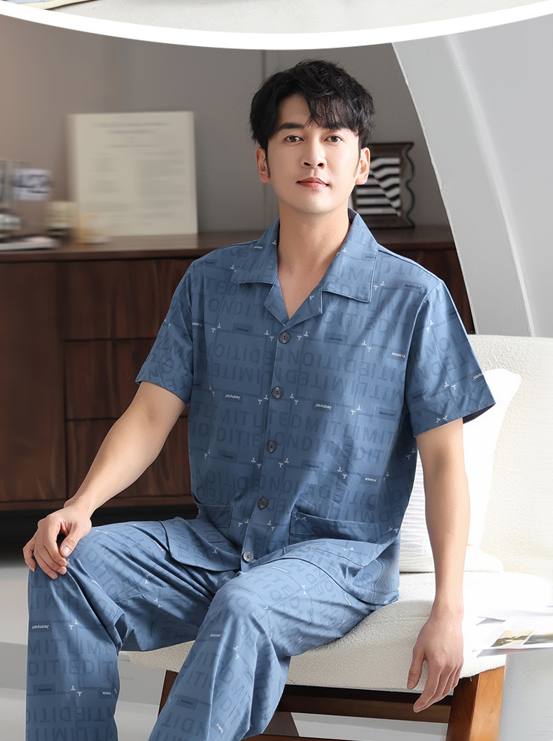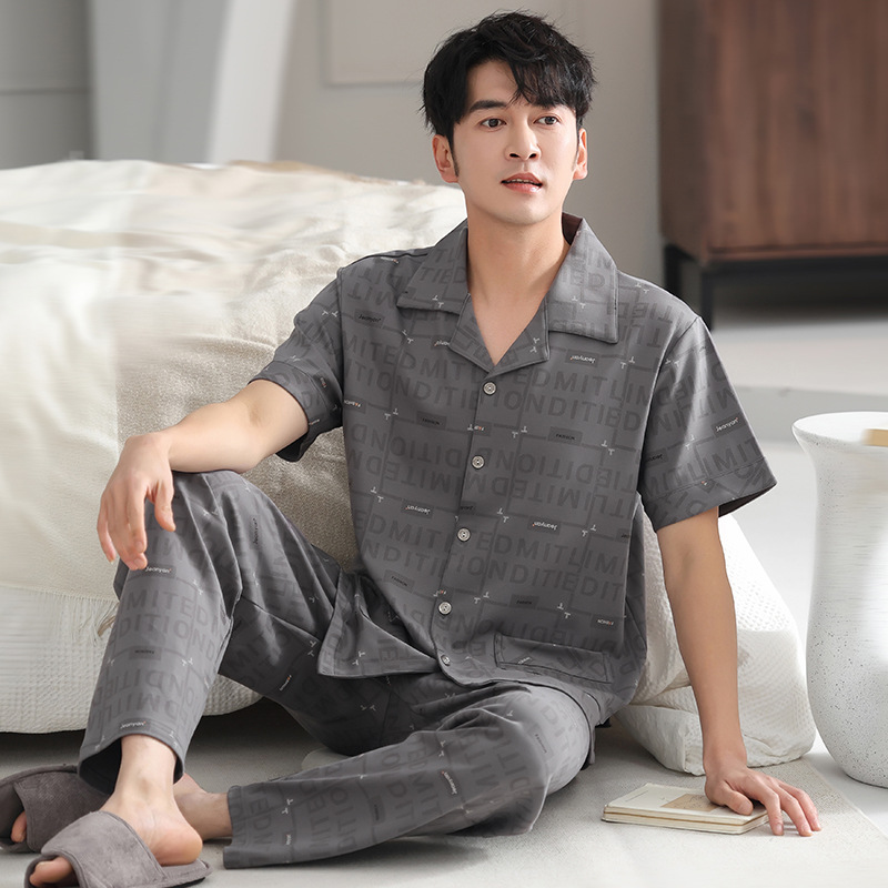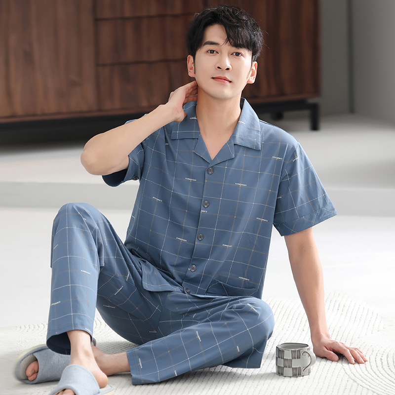 잠옷 남자 여름 순면 반소매 바지 얇은 여름 남자 플러스 사이즈 여름 남자 반소매 홈 옷