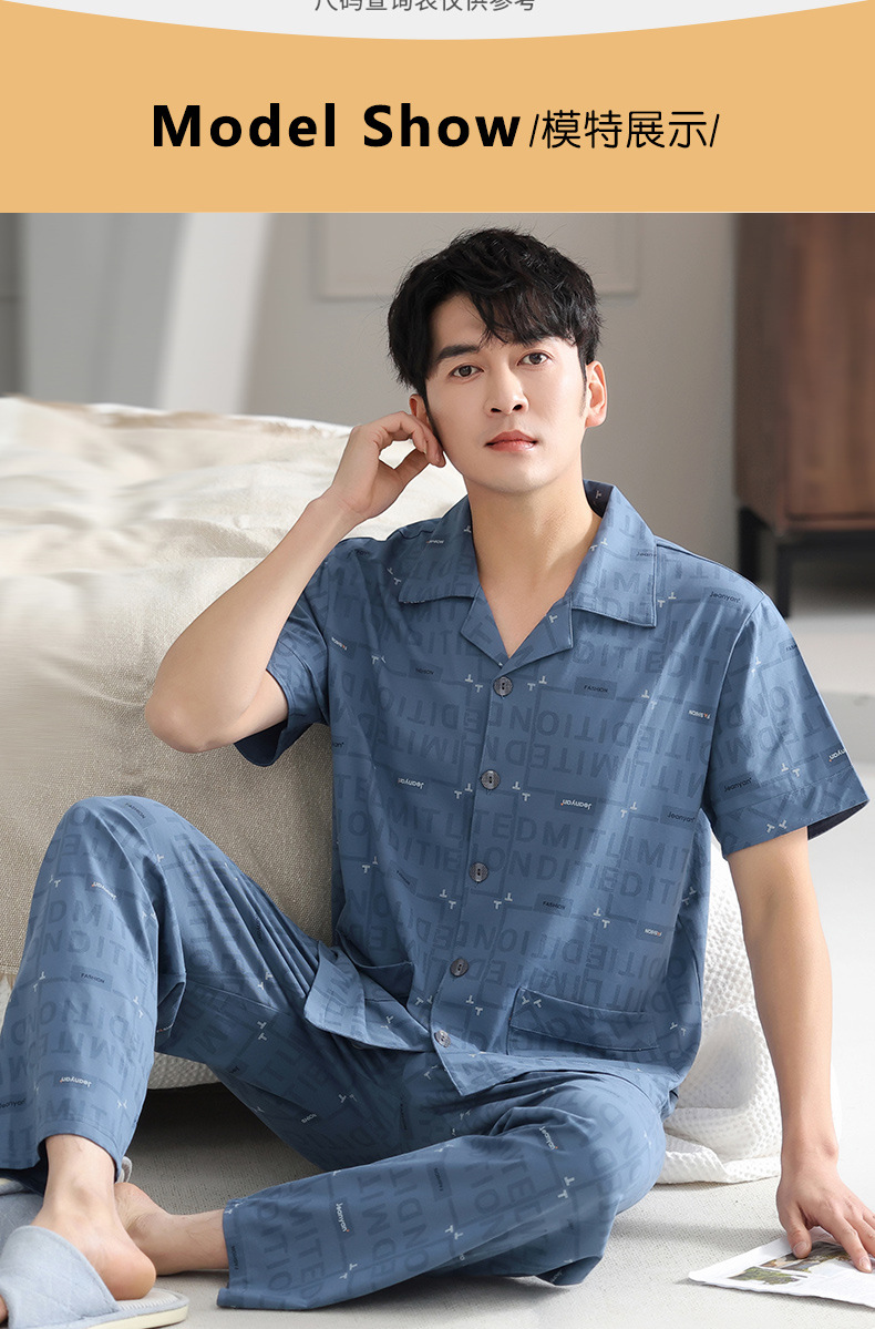 잠옷 남자 여름 순면 반소매 바지 얇은 여름 남자 플러스 사이즈 여름 남자 반소매 홈 옷스토어 가기