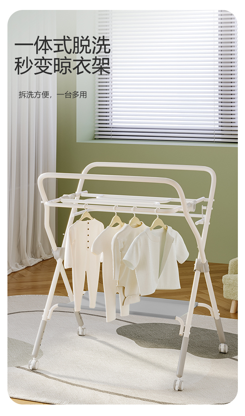 • 작은 고래 [모델에] 푸른 녹색 빔 골격 원 버튼 접기 (바구니 옷 극 보관 랙)