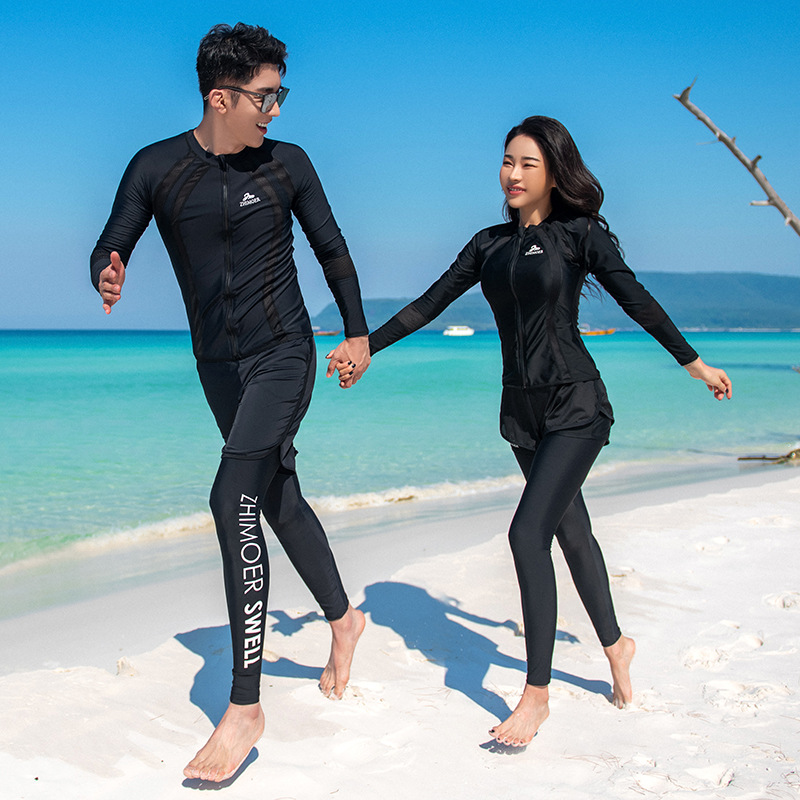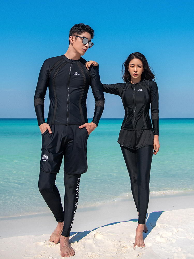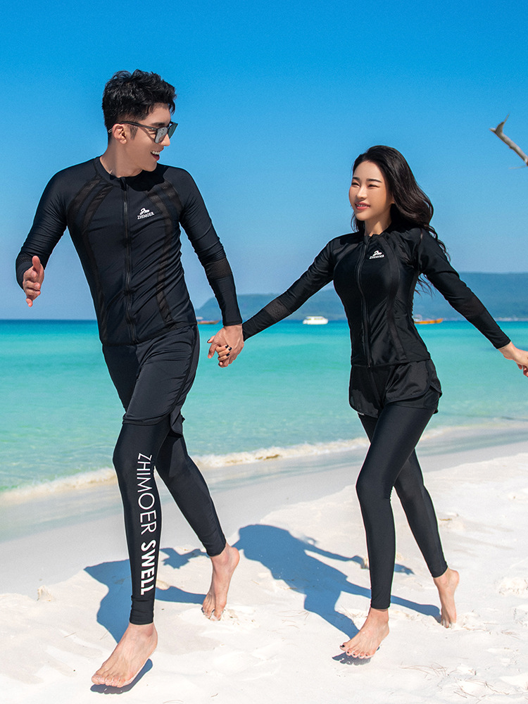 남성과 여성 커플을위한 수영복 분할 빠른 건조 선 스크린 긴팔 바지 다이빙 세트 대형 서핑 해변 슬리밍 배 덮개