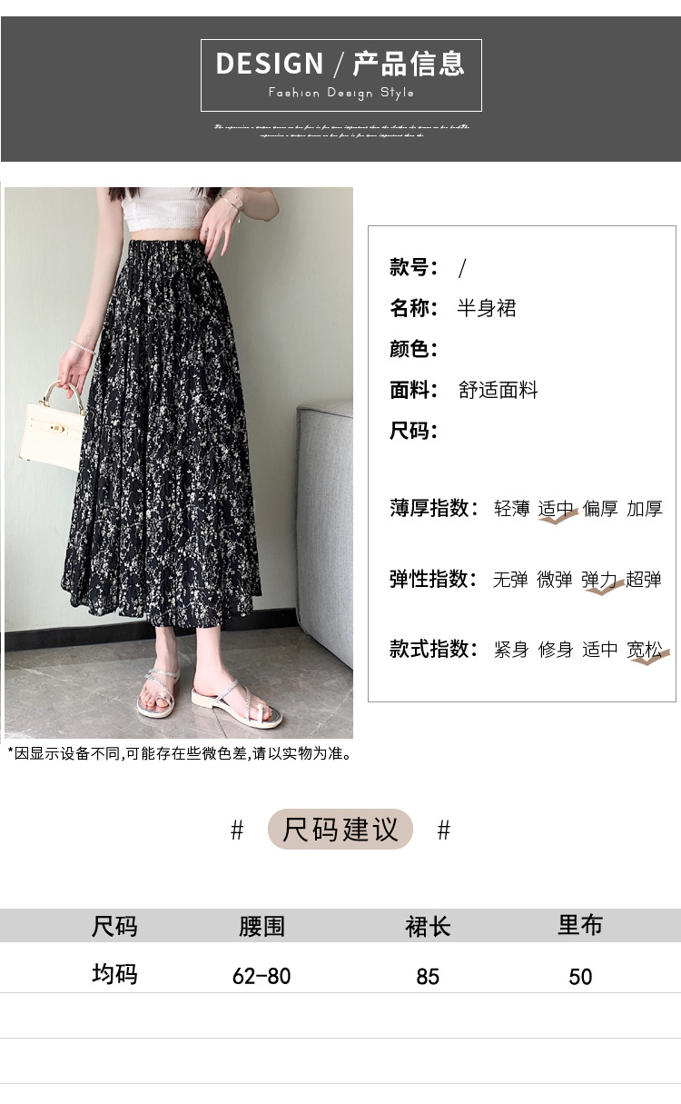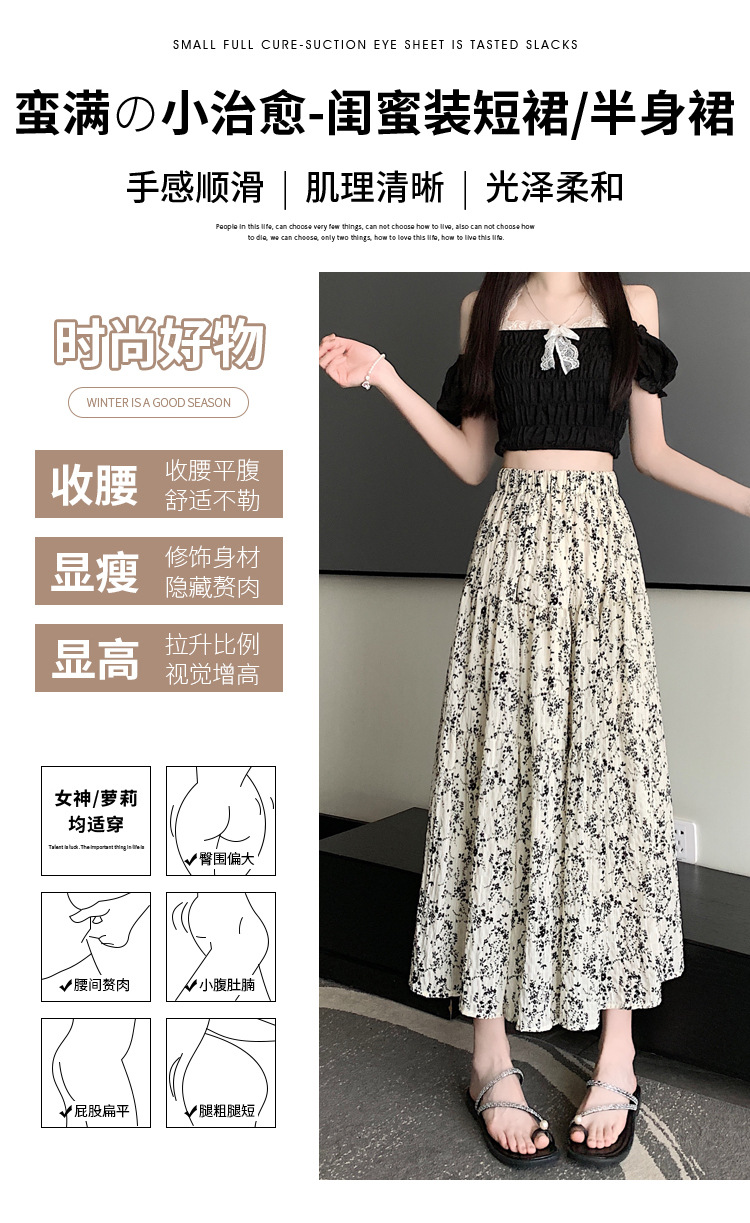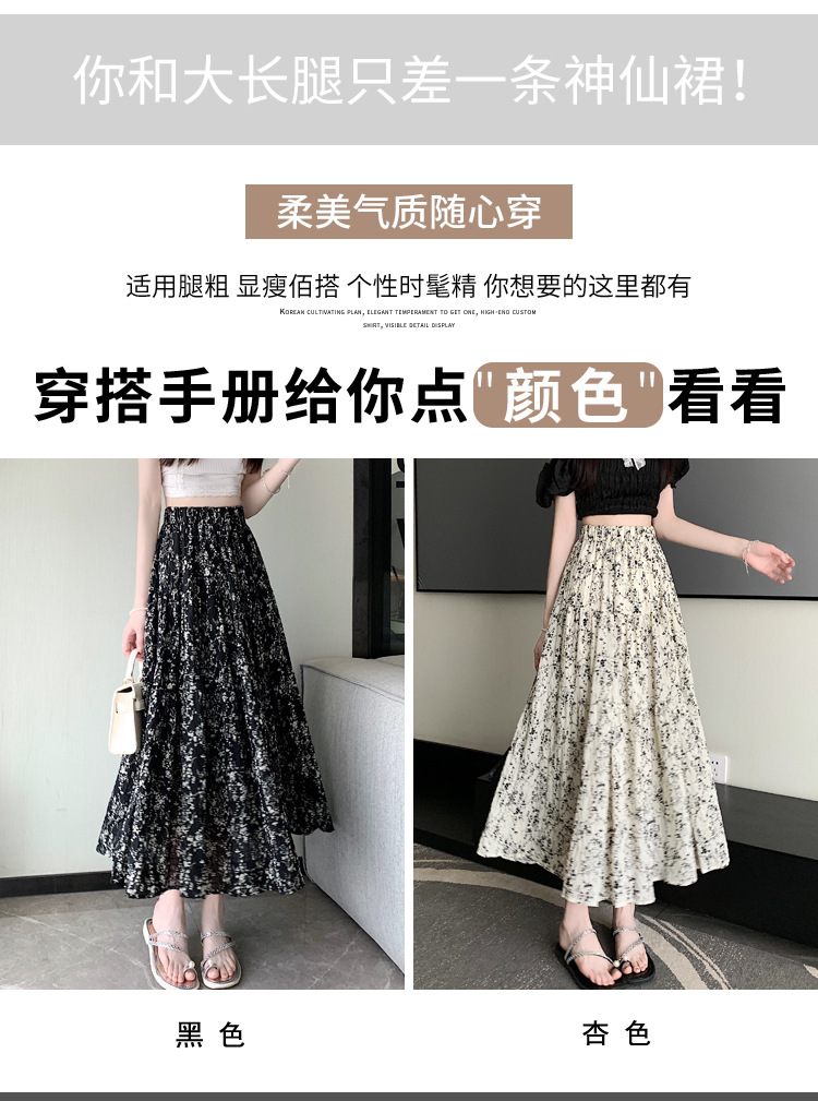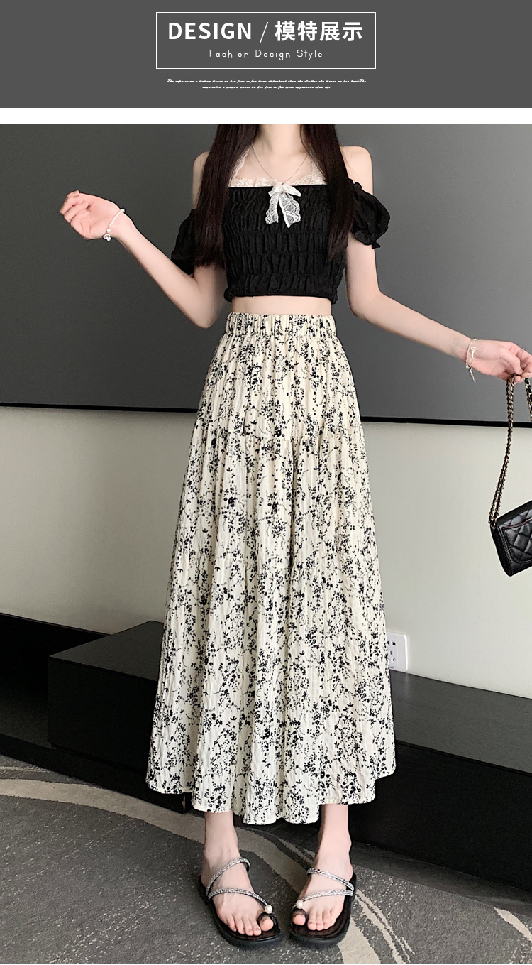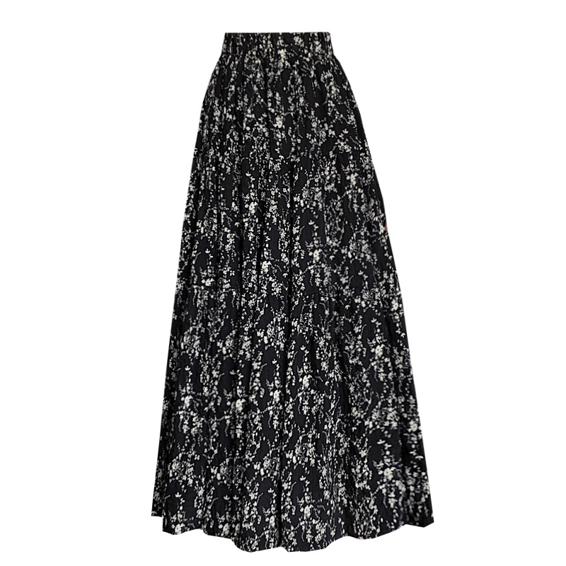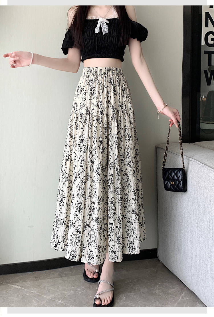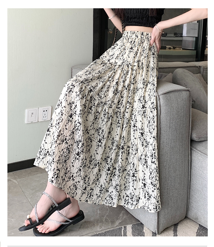 2025 봄/여름 주름 프린트 플로럴 스커트 플리츠 스커트 롱 스커트 밴딩 웨이스트 스타일리시 A라인 스커트스토어 가기