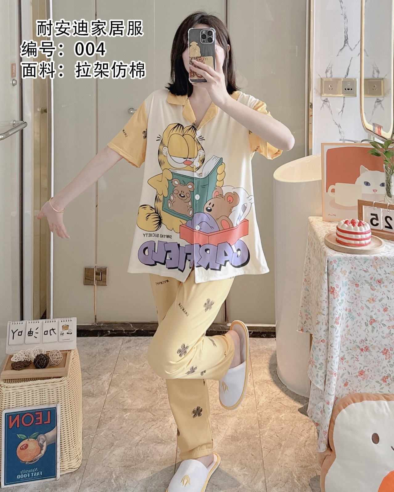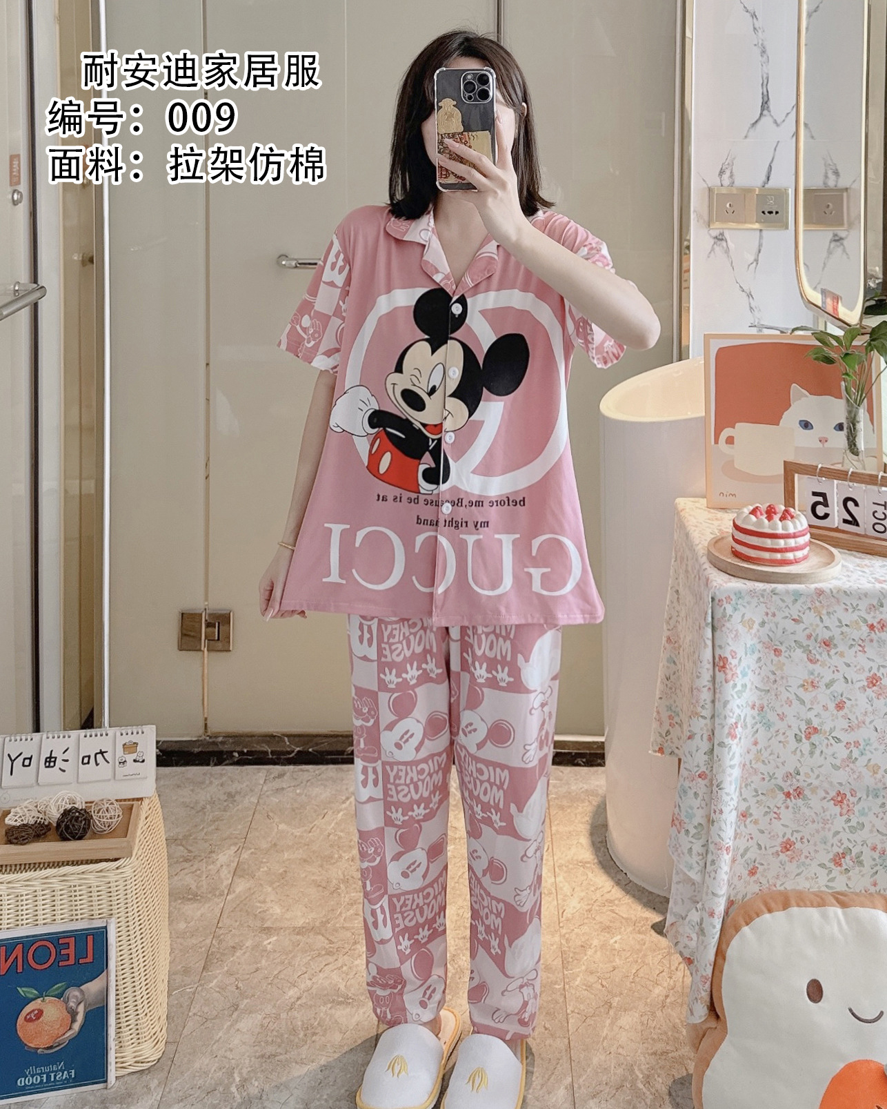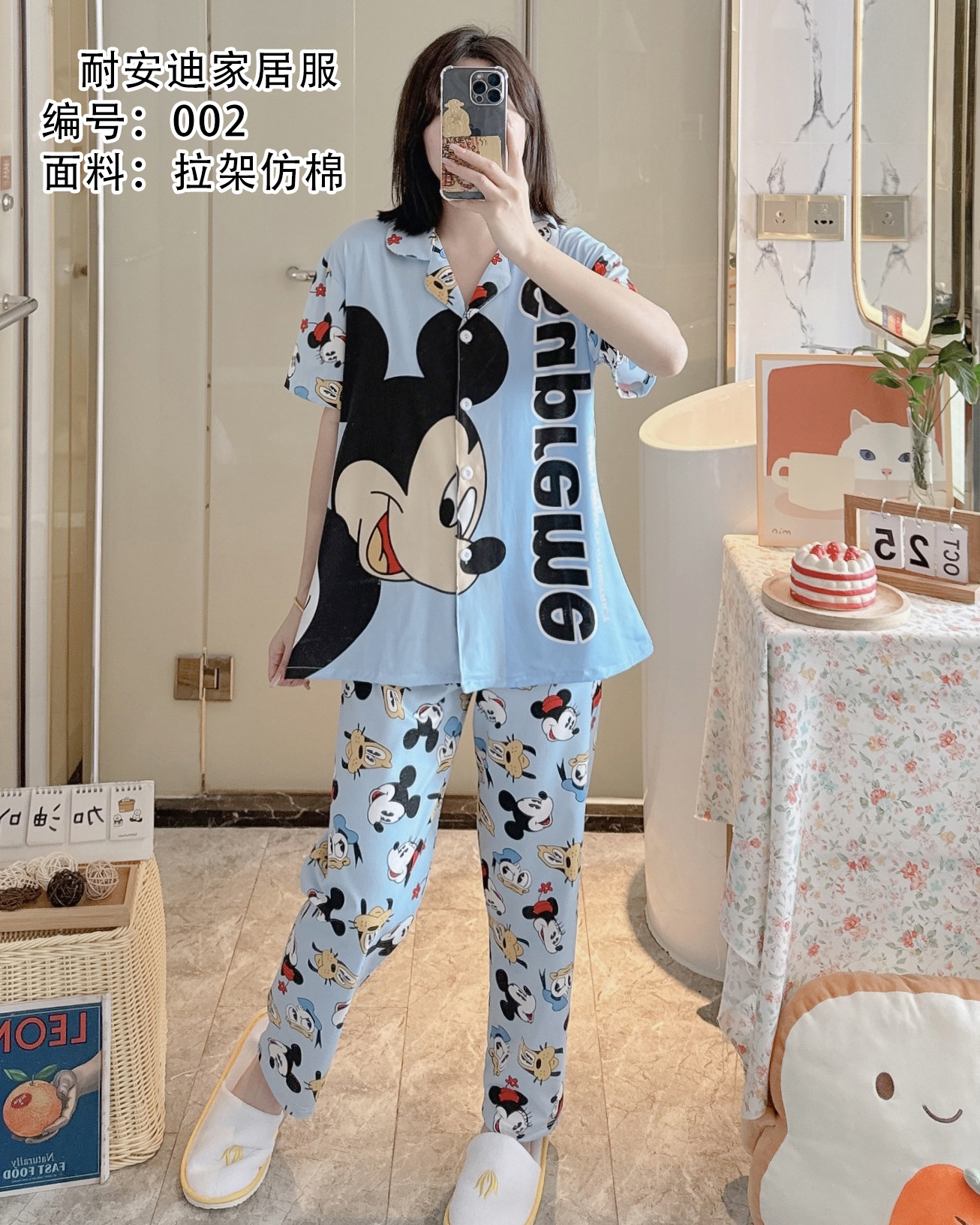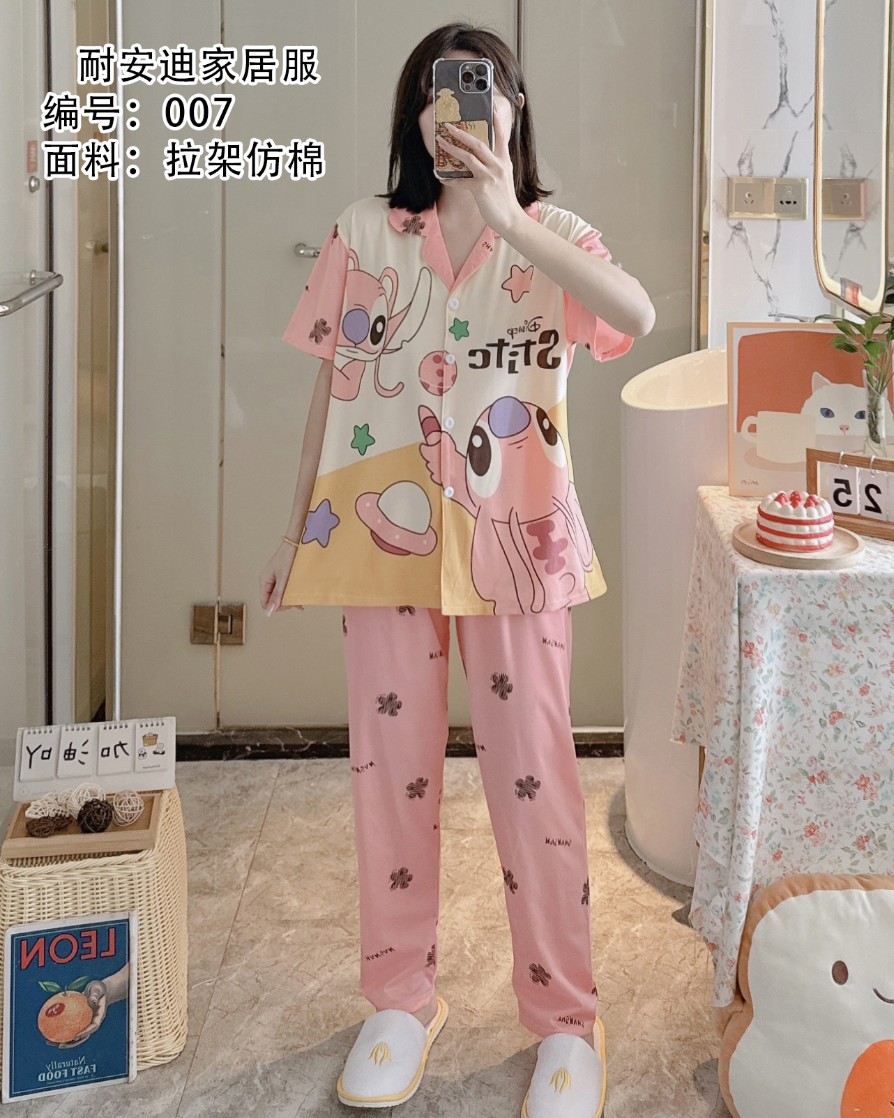 모조 면 잠옷 여성의 봄과 가을 반팔 세트 달콤한 캐주얼 간단한 바지 편안한 의상스토어 가기