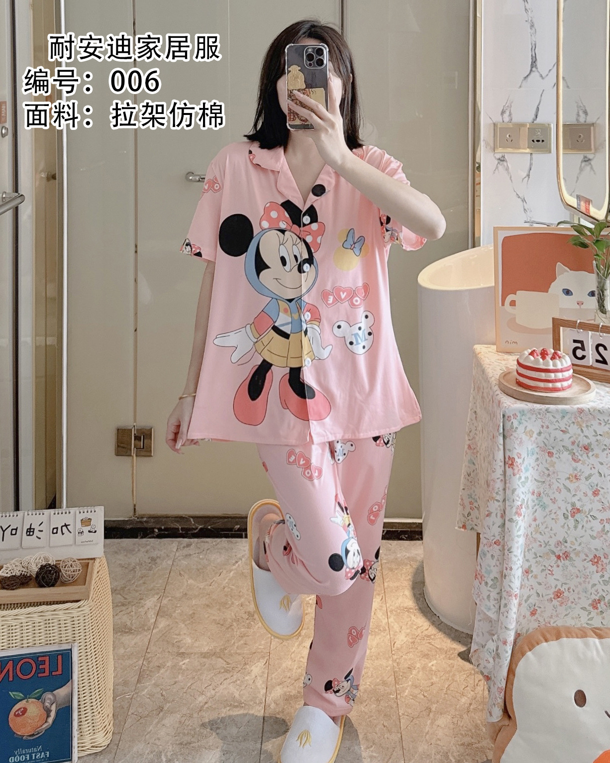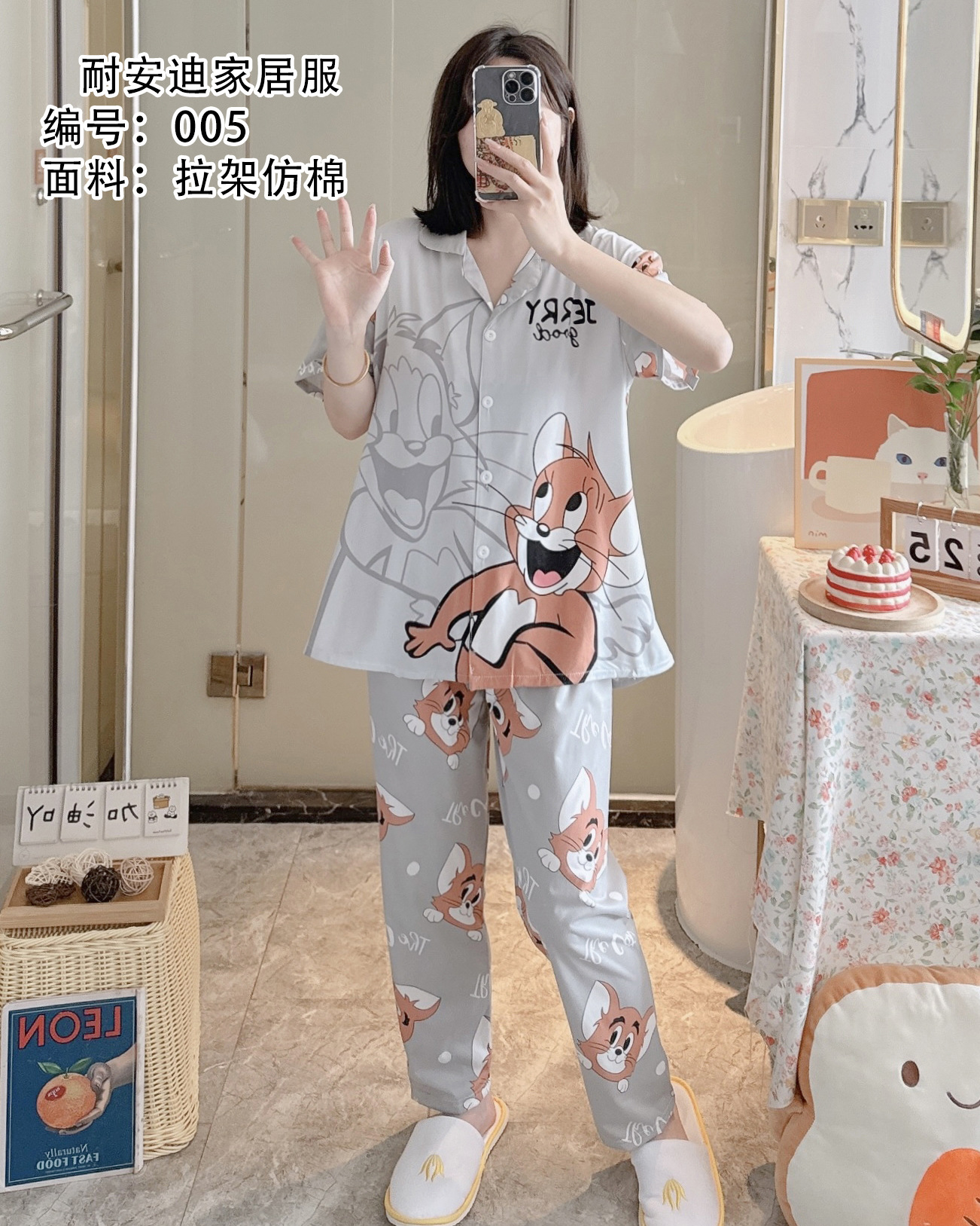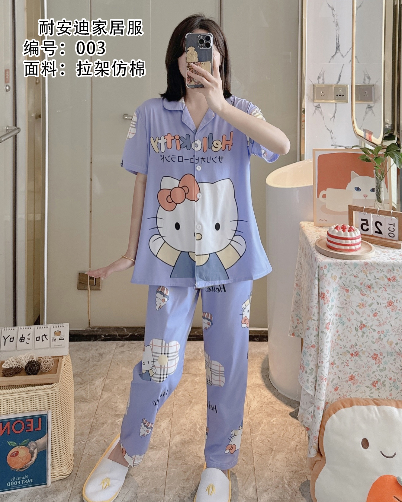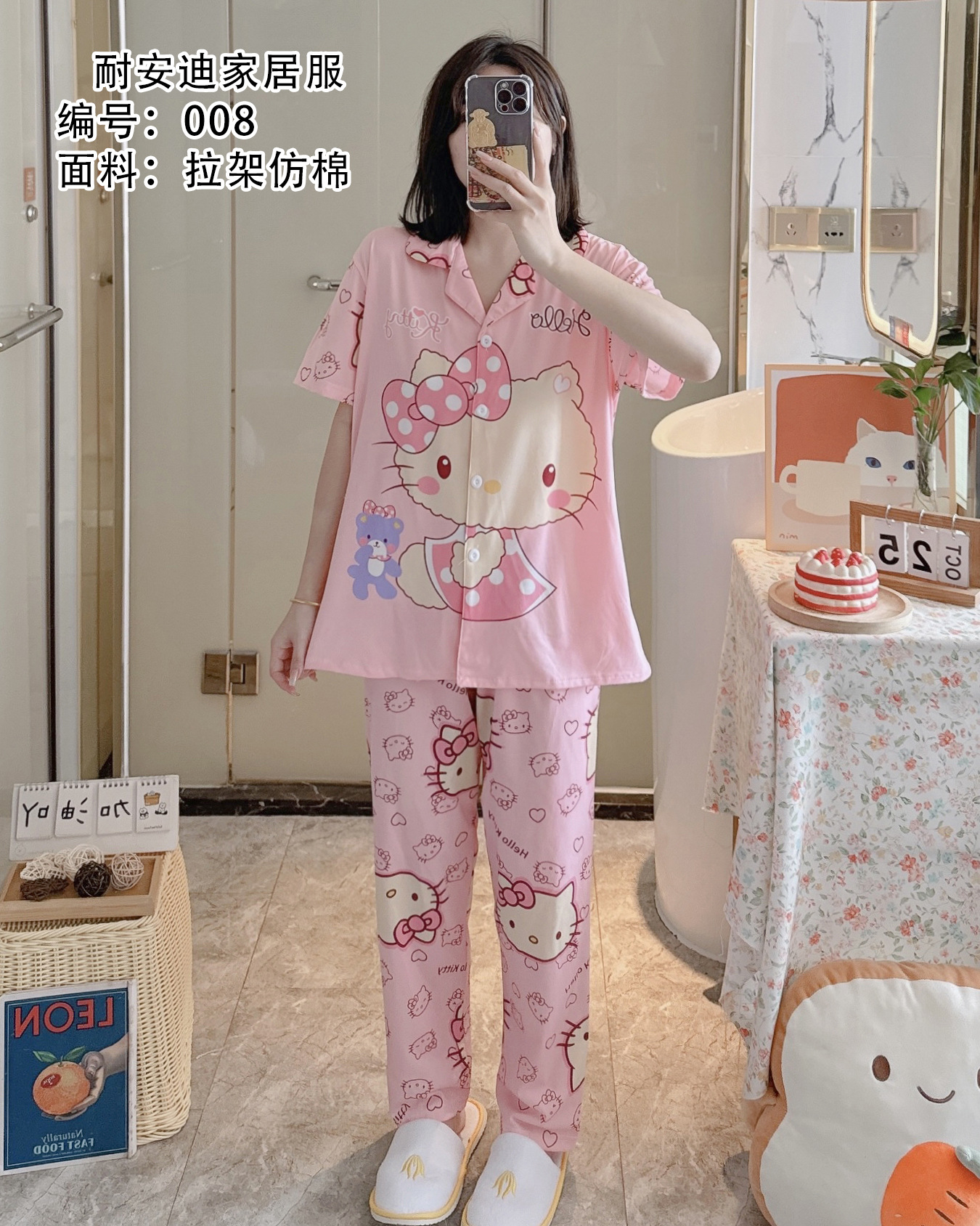 모조 면 잠옷 여성의 봄과 가을 반팔 세트 달콤한 캐주얼 간단한 바지 편안한 의상스토어 가기