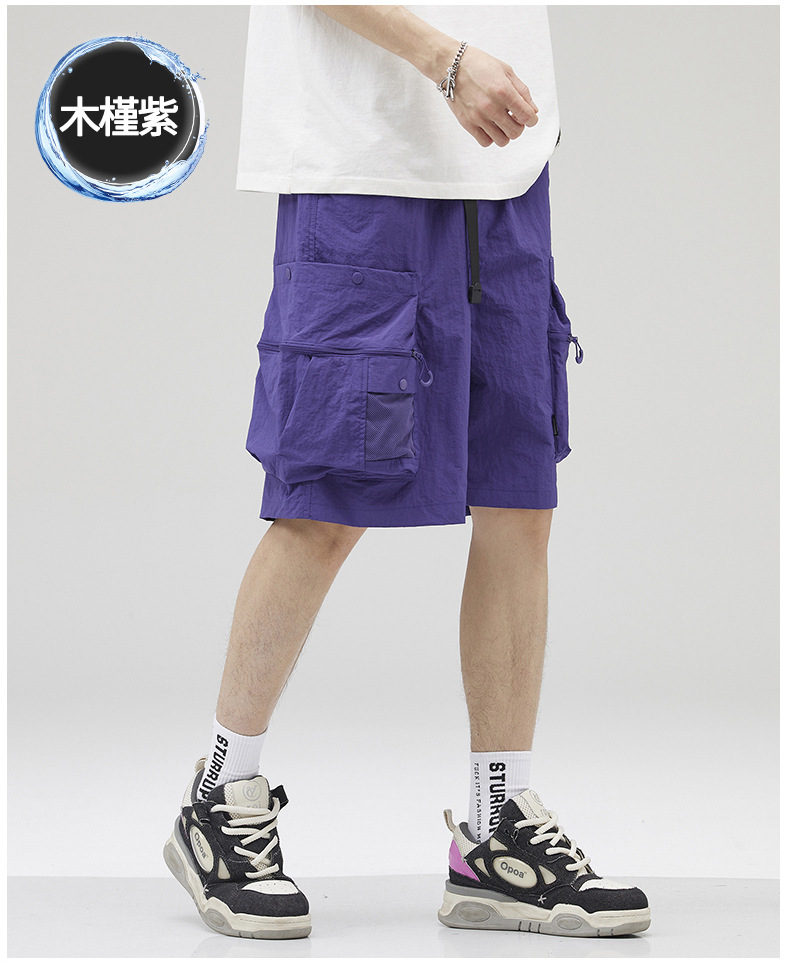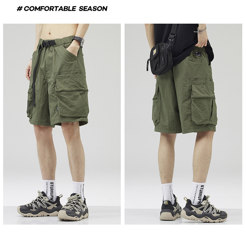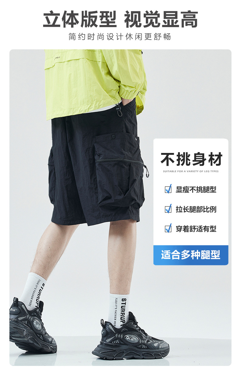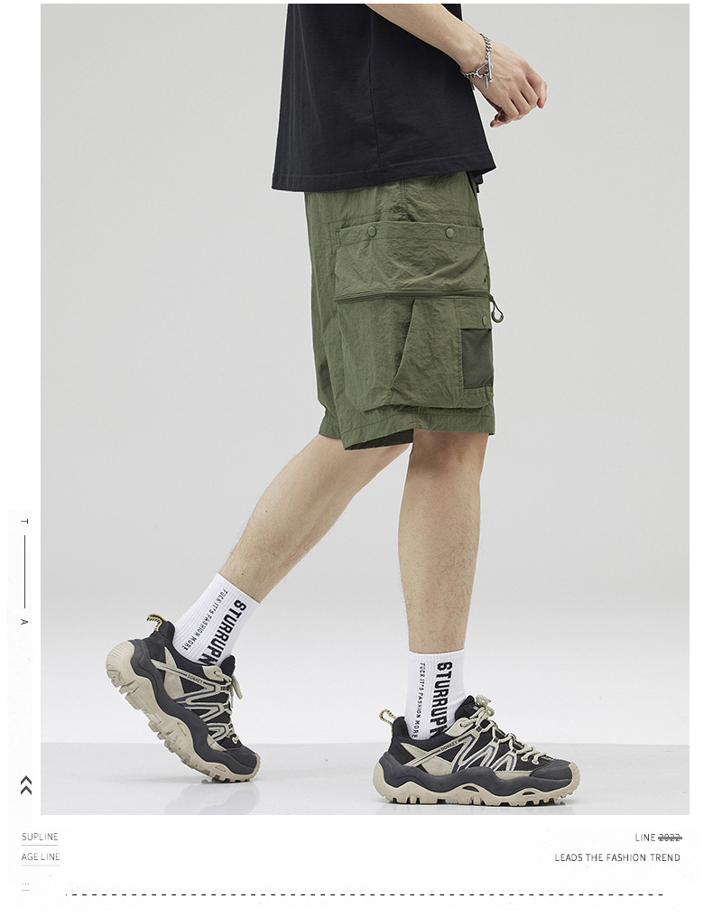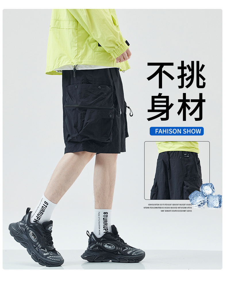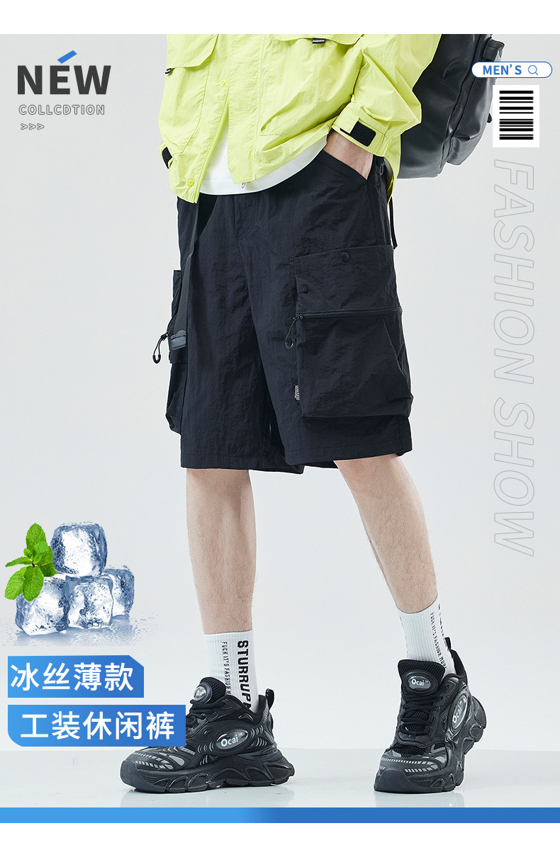 여름 초박형 아이스 실크 작업복 반바지 남자 멀티 포켓 캐주얼 중간 길이 바지 여름 빠른 건조 스포츠 바지스토어 가기