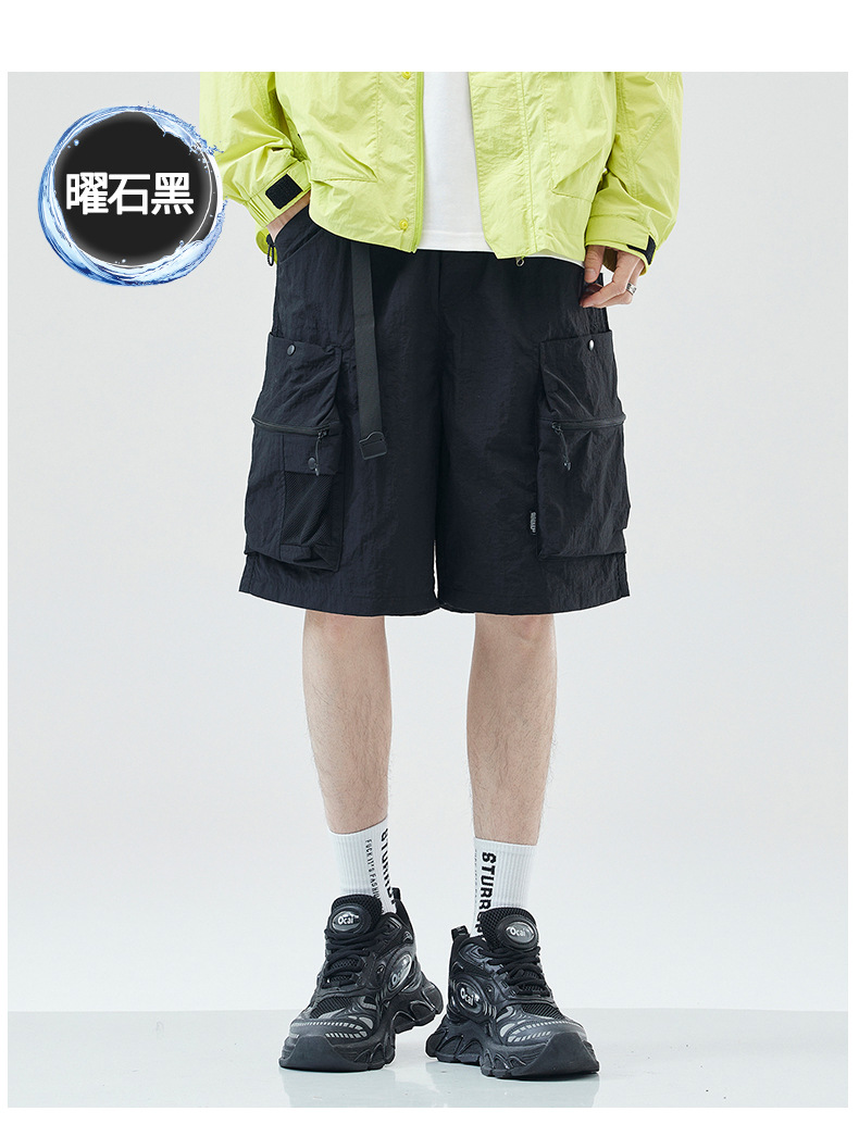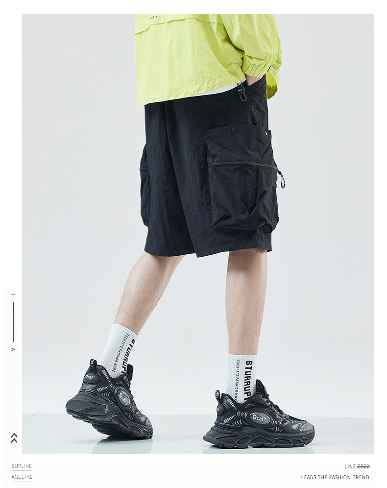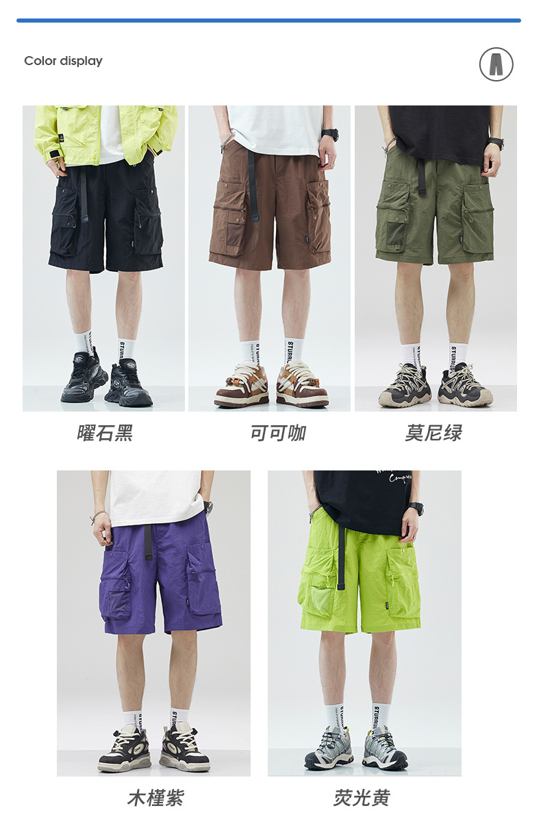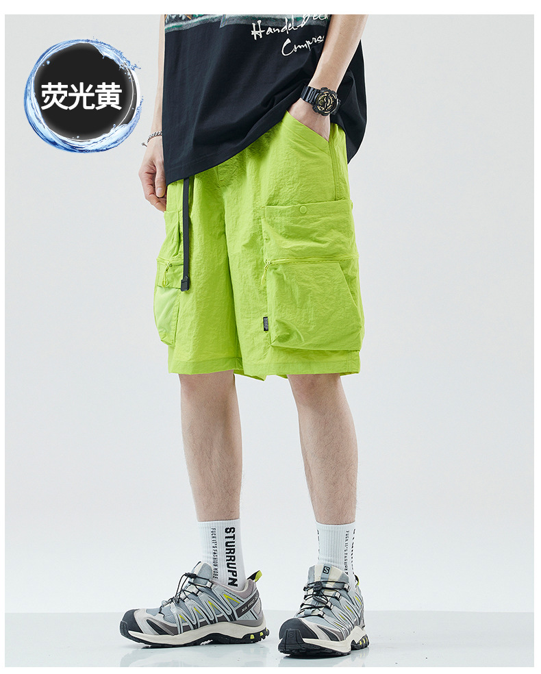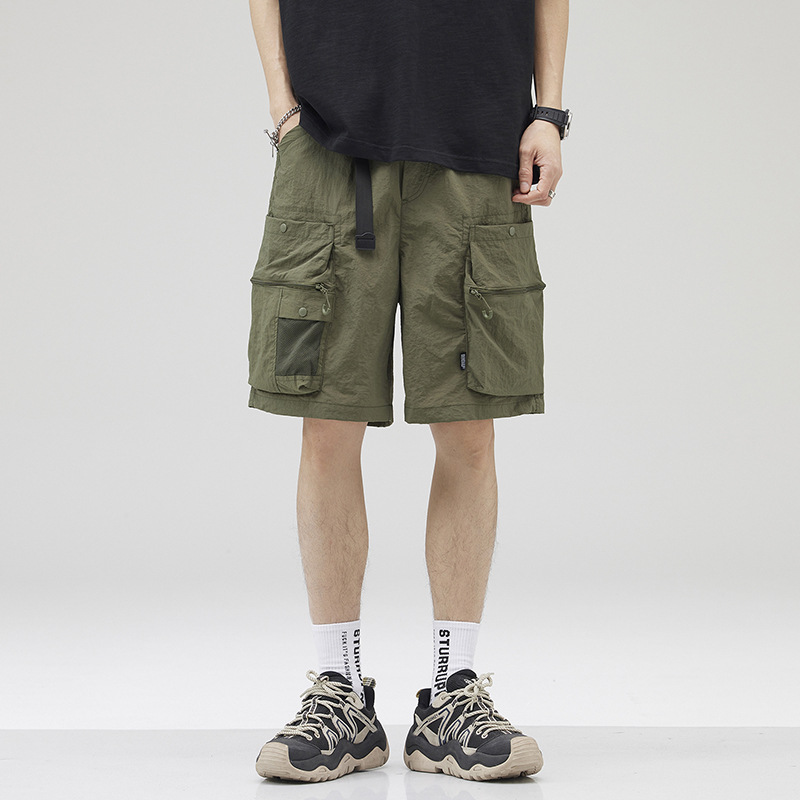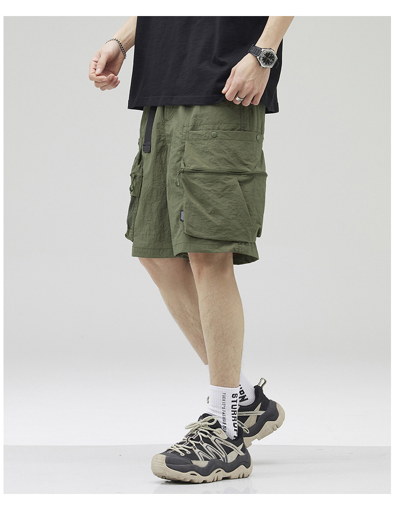 여름 초박형 아이스 실크 작업복 반바지 남자 멀티 포켓 캐주얼 중간 길이 바지 여름 빠른 건조 스포츠 바지스토어 가기