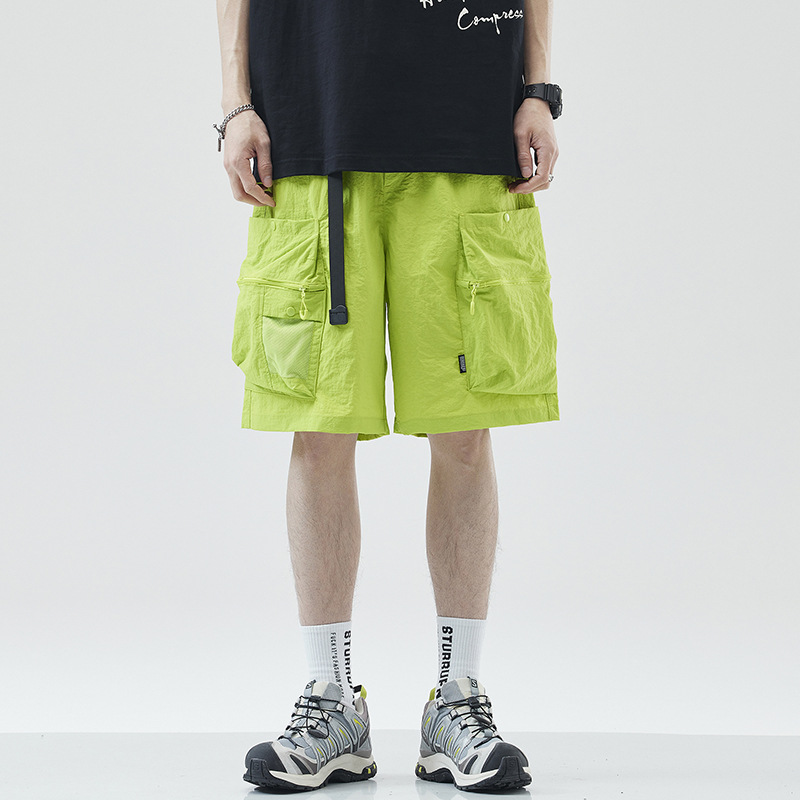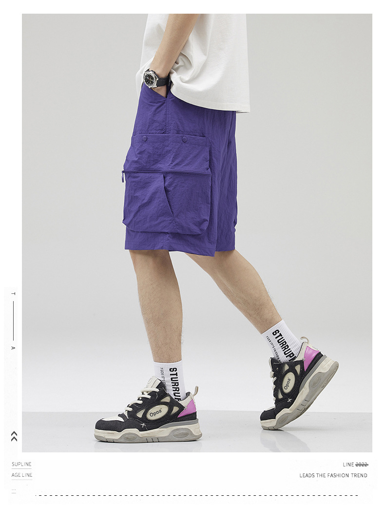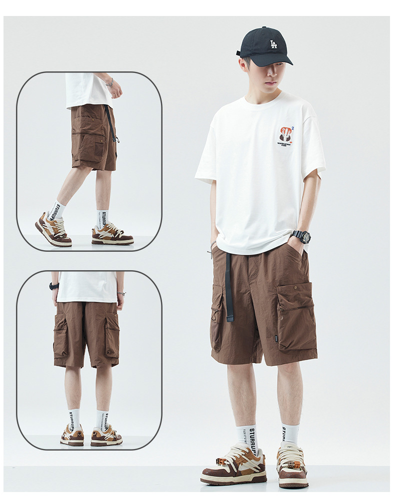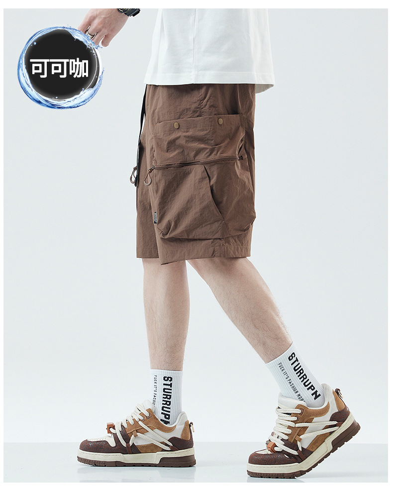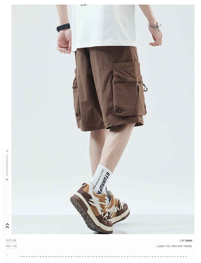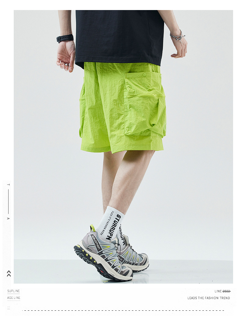 여름 초박형 아이스 실크 작업복 반바지 남자 멀티 포켓 캐주얼 중간 길이 바지 여름 빠른 건조 스포츠 바지스토어 가기