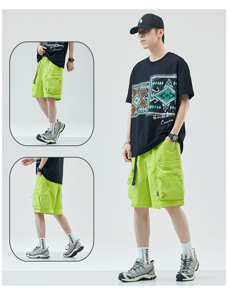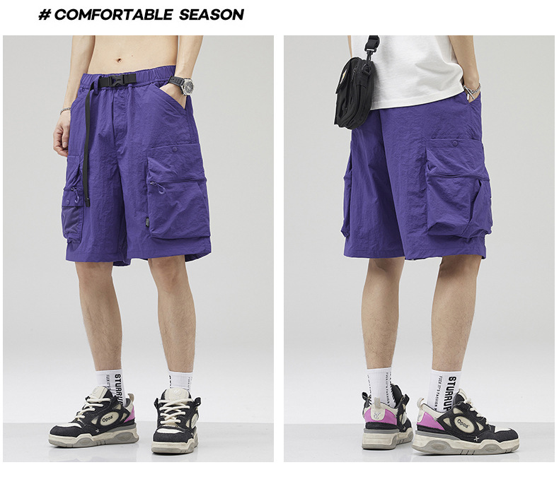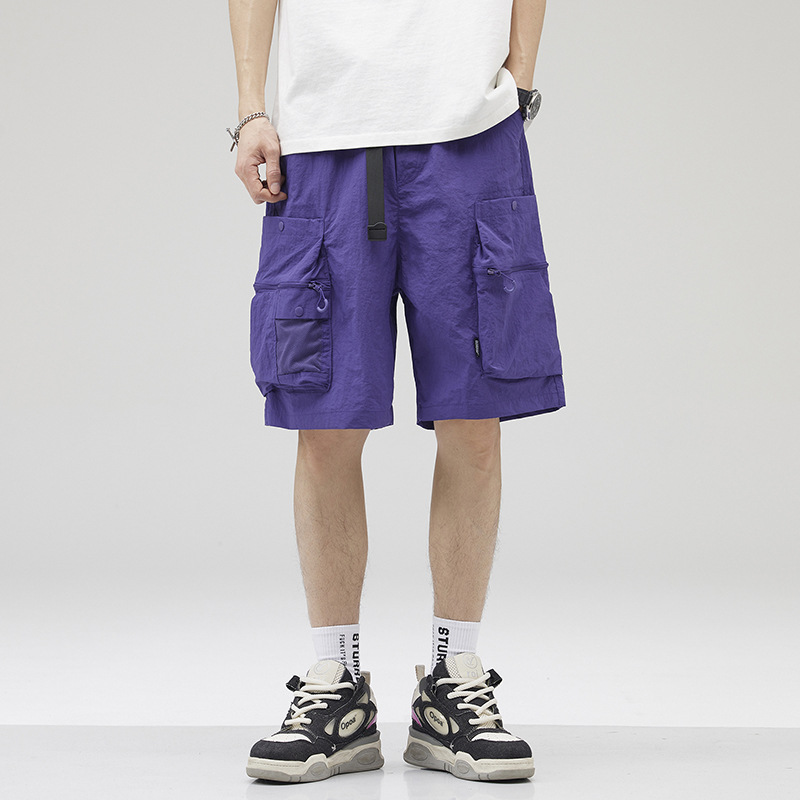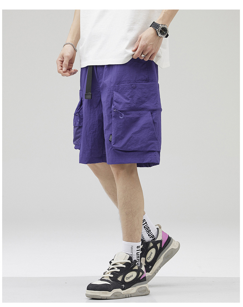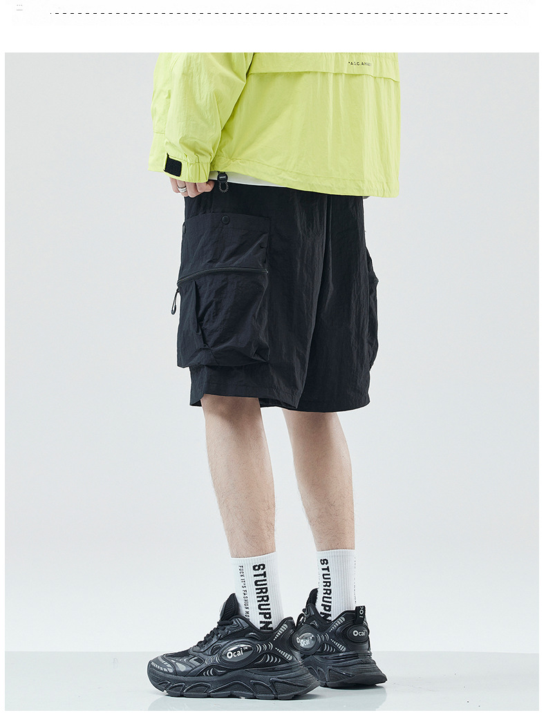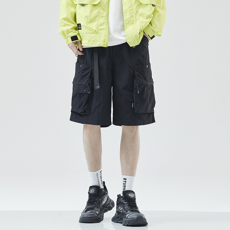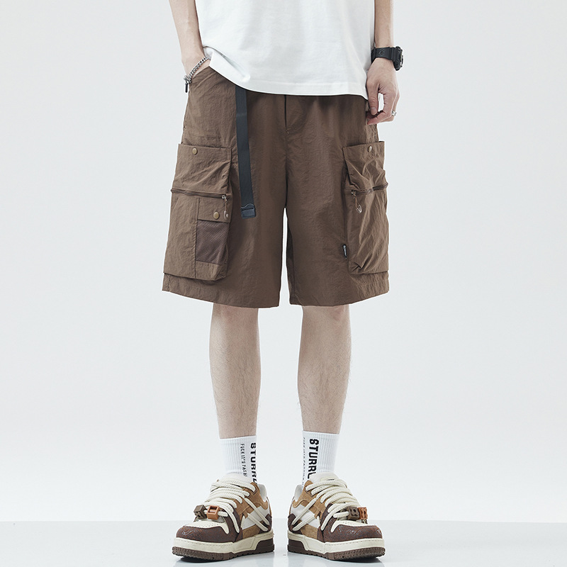 여름 초박형 아이스 실크 작업복 반바지 남자 멀티 포켓 캐주얼 중간 길이 바지 여름 빠른 건조 스포츠 바지스토어 가기