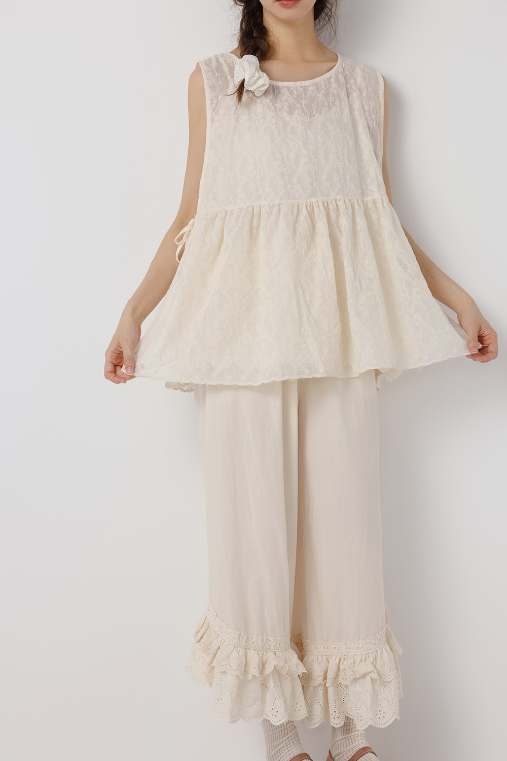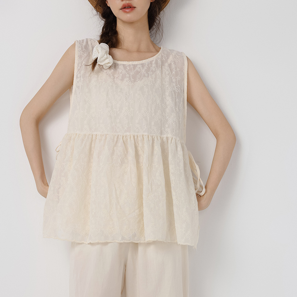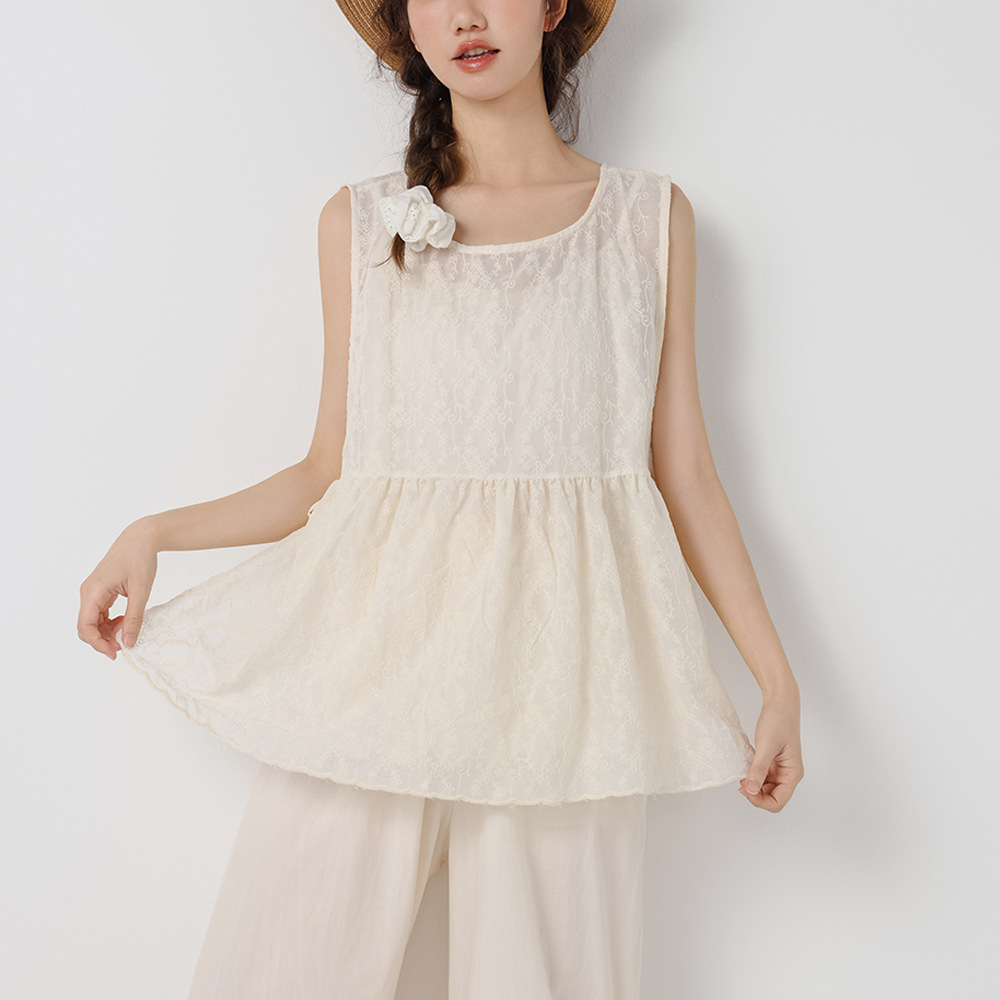 일본식 모리 걸의 사이드 슬릿 스트랩 조끼 쌓아 올매치 코튼 자수 아우터 블라우스 조끼 여름