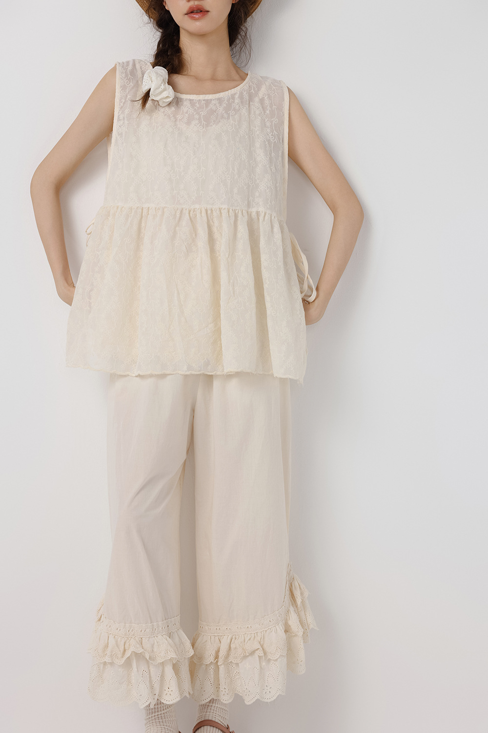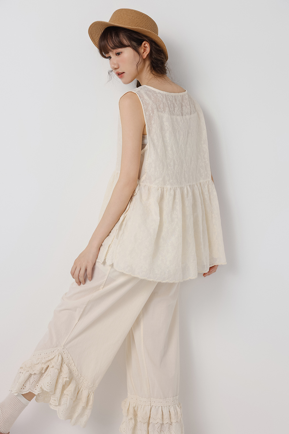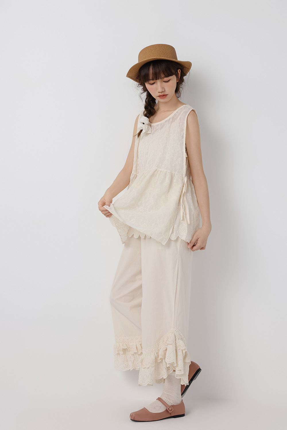 일본식 모리 걸의 사이드 슬릿 스트랩 조끼 쌓아 올매치 코튼 자수 아우터 블라우스 조끼 여름