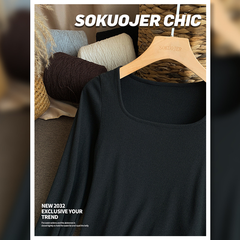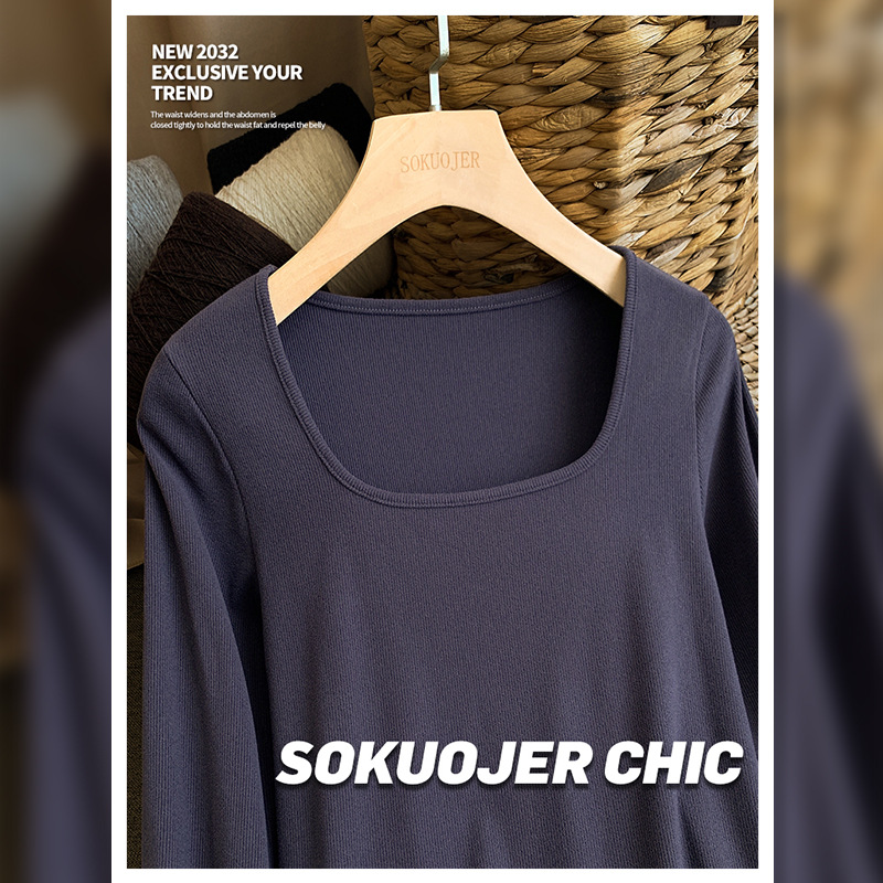 가을 겨울 여성용 고품질 실 바닥 셔츠, 양면 기모 U자형 칼라, 고탄력, 슬리밍, 따뜻한 긴팔
