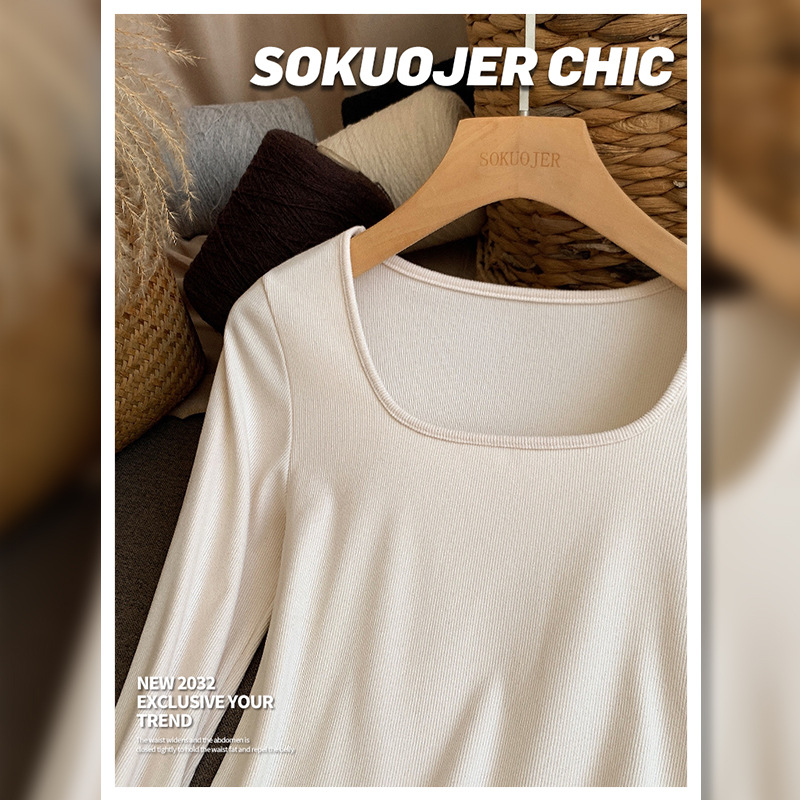 가을 겨울 여성용 고품질 실 바닥 셔츠, 양면 기모 U자형 칼라, 고탄력, 슬리밍, 따뜻한 긴팔스토어 가기