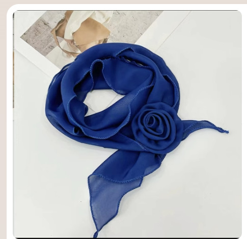 [작은 하나의 꽃] 실크 스카프 장식 장미 단색 칼라 꽃 봄과 여름 문학 쉬폰 스카프 커버 목 패턴 한국어 버전