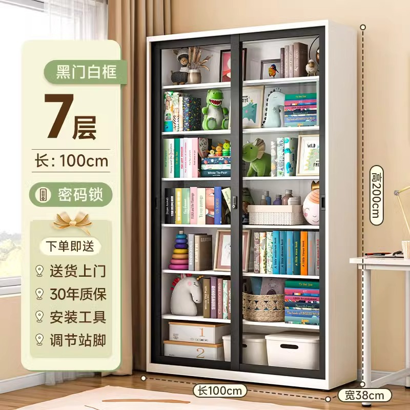 Sanjian 가정용 강철 책꽂이 슬라이딩 도어 잠금 디스플레이 캐비닛 바닥 보관 캐비닛이있는 방진 유리 책장스토어 가기