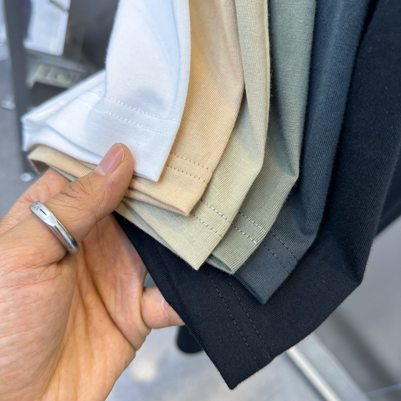 여름 반팔 솔리드 컬러베이스 티셔츠 심플 T 핏 반팔 코튼 커플 반팔 남성 티셔츠 트렌디 BWCNE2279