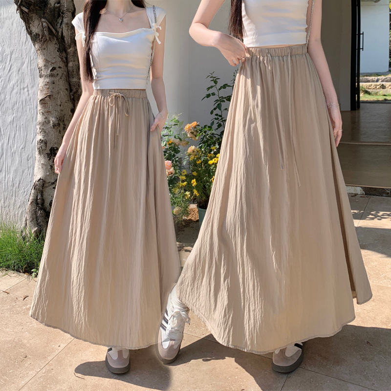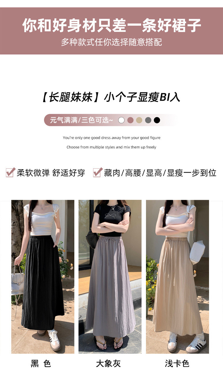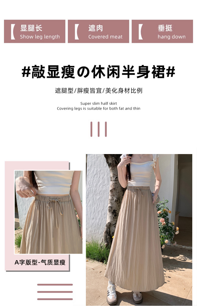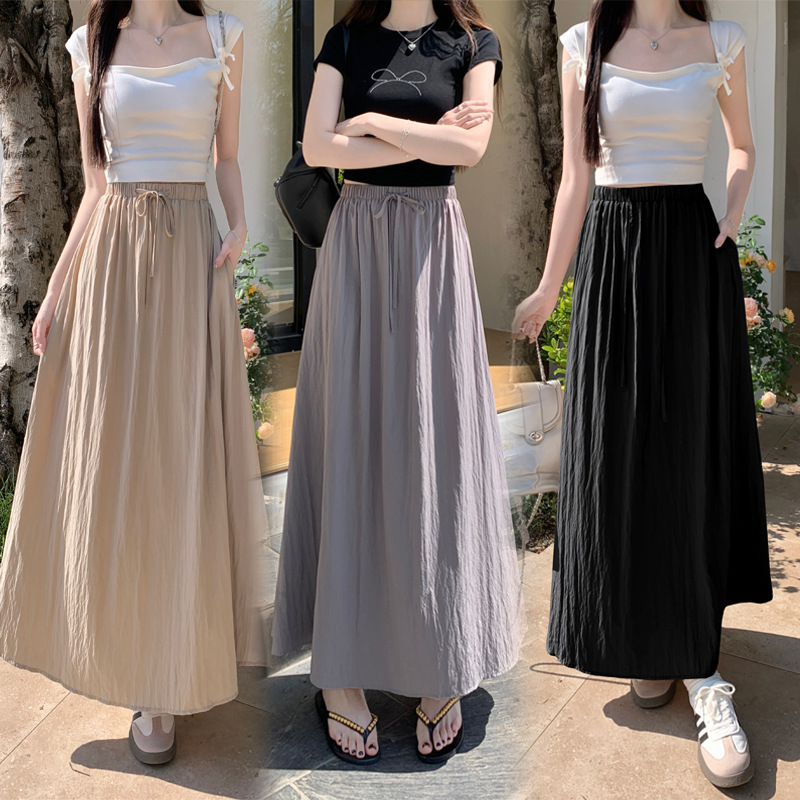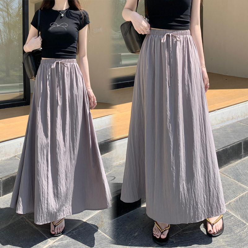 리얼 샷 스커트 여성의 긴 대형 스윙 스커트 2024 봄과 여름 높은 허리 슬리밍 다목적 우아한 A-라인 롱 스커트스토어 가기