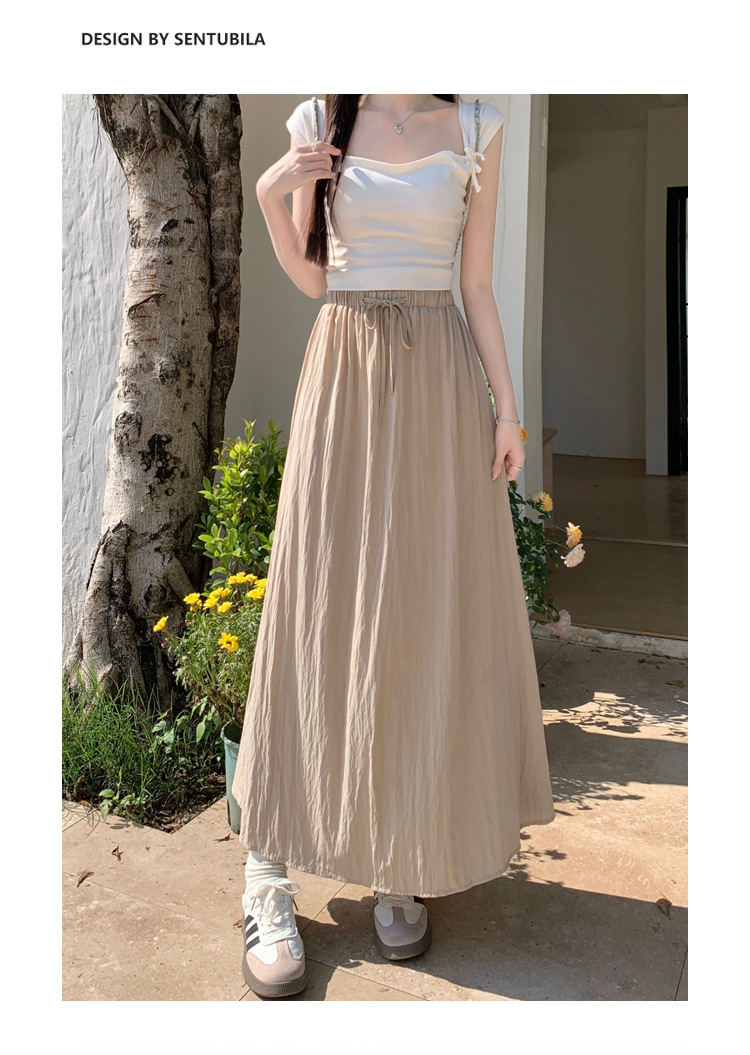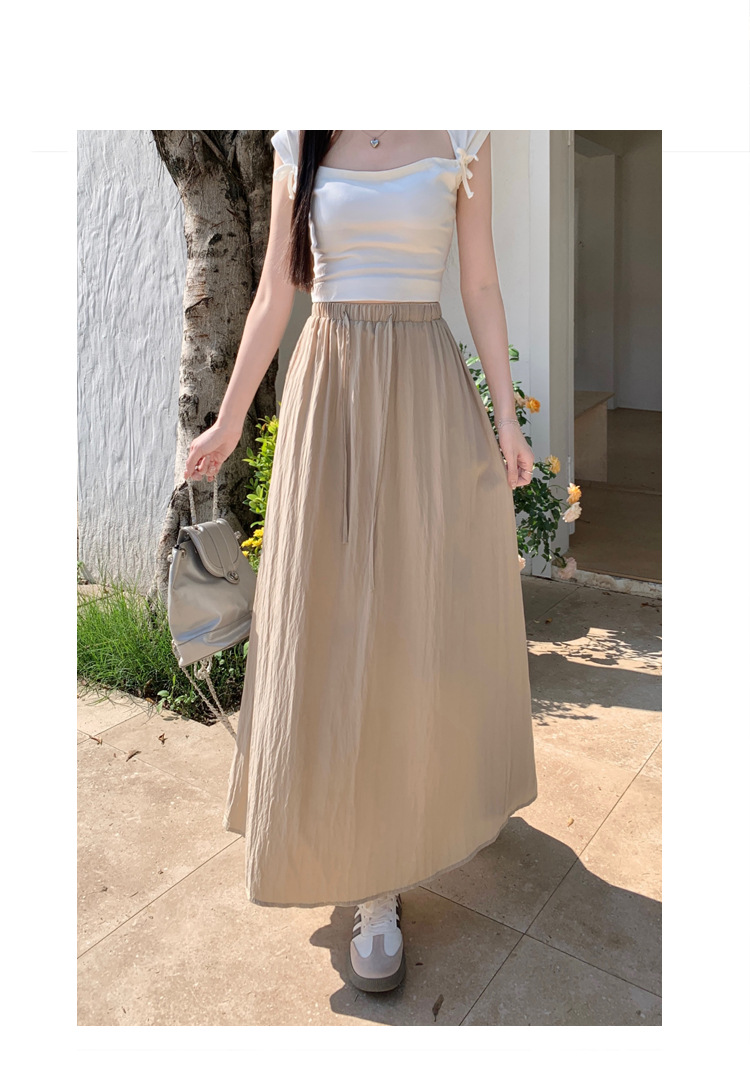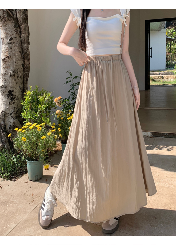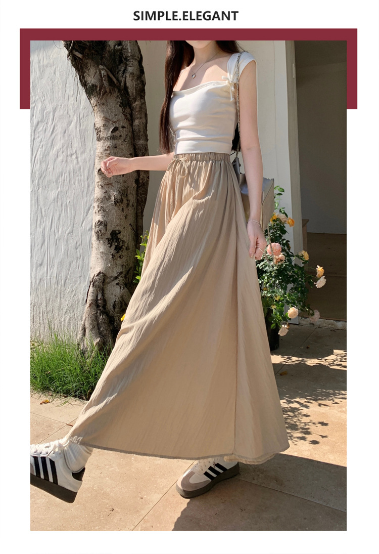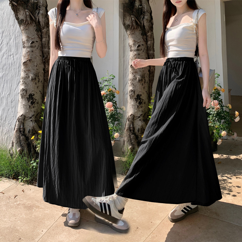 리얼 샷 스커트 여성의 긴 대형 스윙 스커트 2024 봄과 여름 높은 허리 슬리밍 다목적 우아한 A-라인 롱 스커트스토어 가기