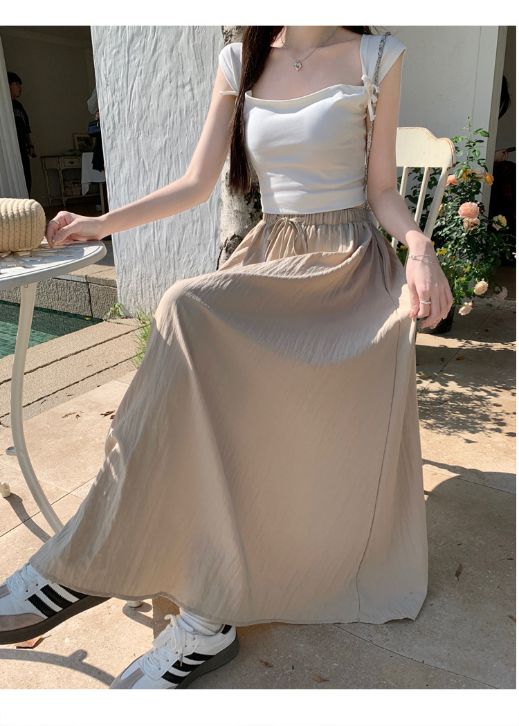 리얼 샷 스커트 여성의 긴 대형 스윙 스커트 2024 봄과 여름 높은 허리 슬리밍 다목적 우아한 A-라인 롱 스커트