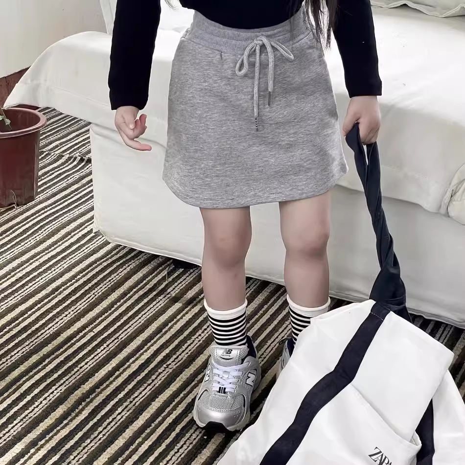 여아 하이웨이스트 스커트 2026 봄 가을 아동용 그레이 컬러 만능 슬림핏 A라인 스커트 숏스커트 큰아이 8세 가을 스커트팬츠