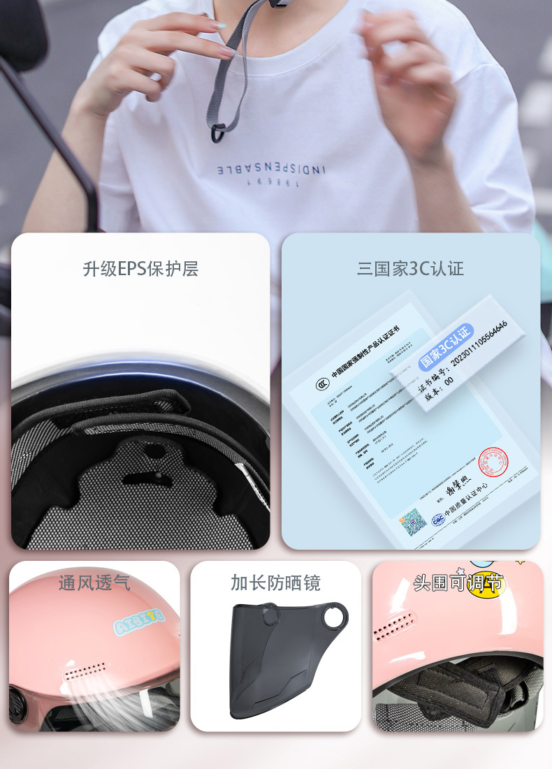 3C 인증 전기 자전거 헬멧 여성용 귀여운 여성 안전모 성인용 반헬멧 여성용 통기성 라이딩 안전 보호스토어 가기