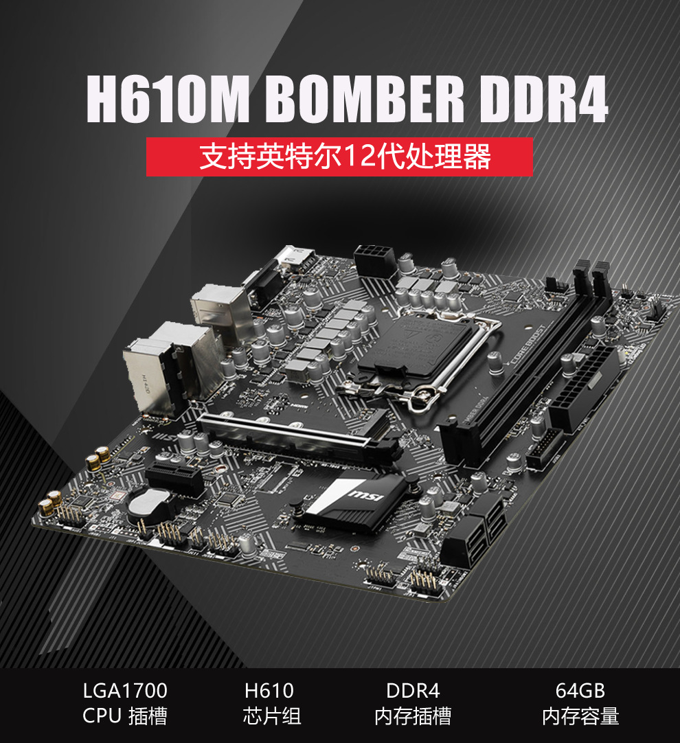 12 세대 CPU를 위한 마이크로스타 H610M BOMBER DDR4 폭발성 폭탄 컴퓨터 데스크톱 보드스토어 가기
