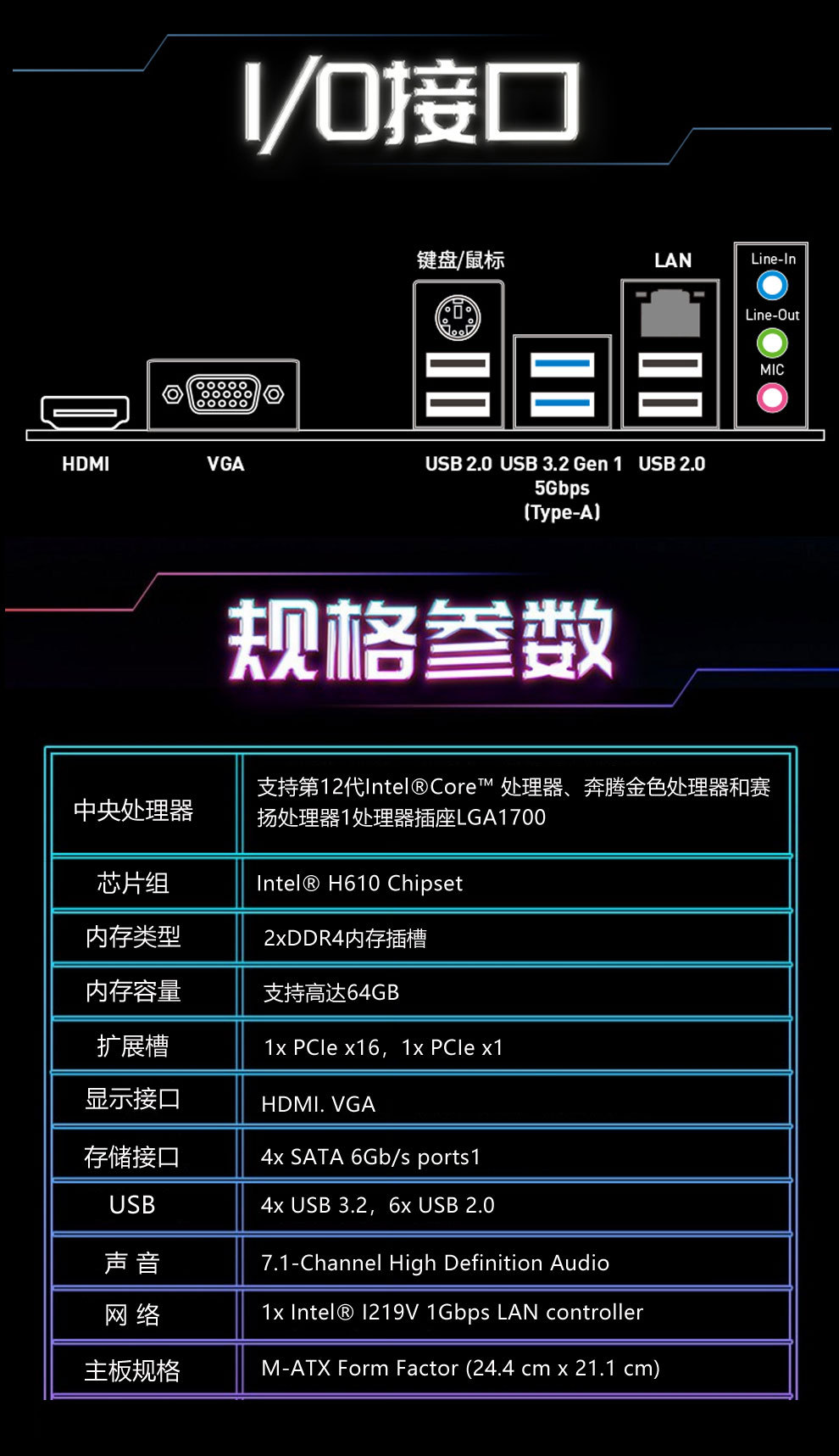 12 세대 CPU를 위한 마이크로스타 H610M BOMBER DDR4 폭발성 폭탄 컴퓨터 데스크톱 보드