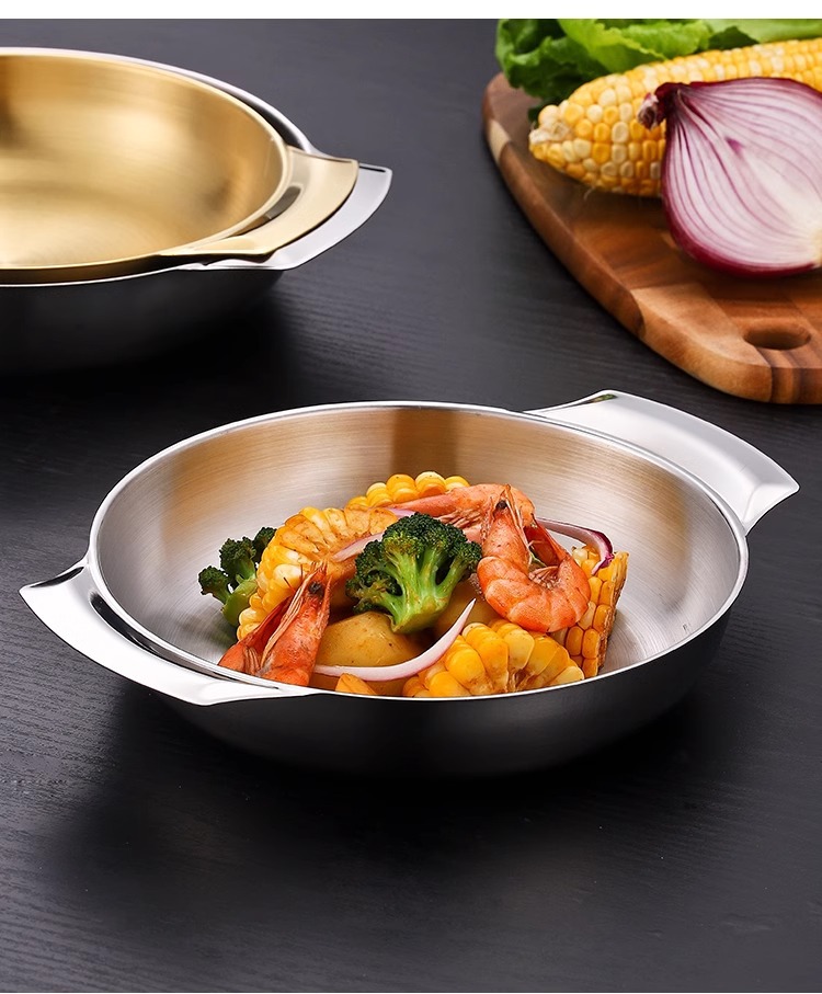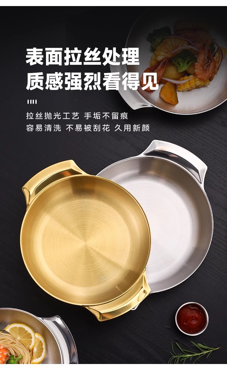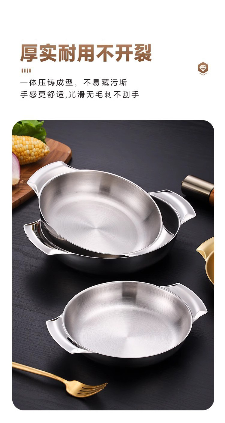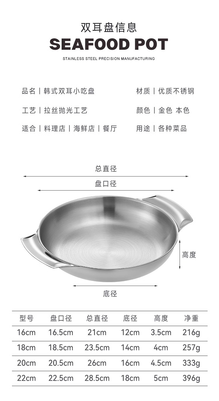 스테인레스 스틸 해산물 플레이트 한국식 더블 이어 플레이트 드라이 팟 해산물 냄비 가정용 창조적 인 스낵 플레이트 디스크 골든 플레이트스토어 가기