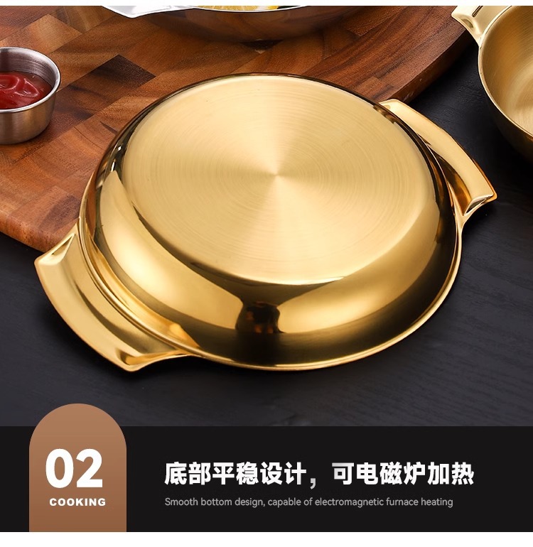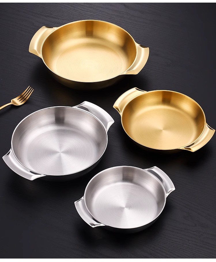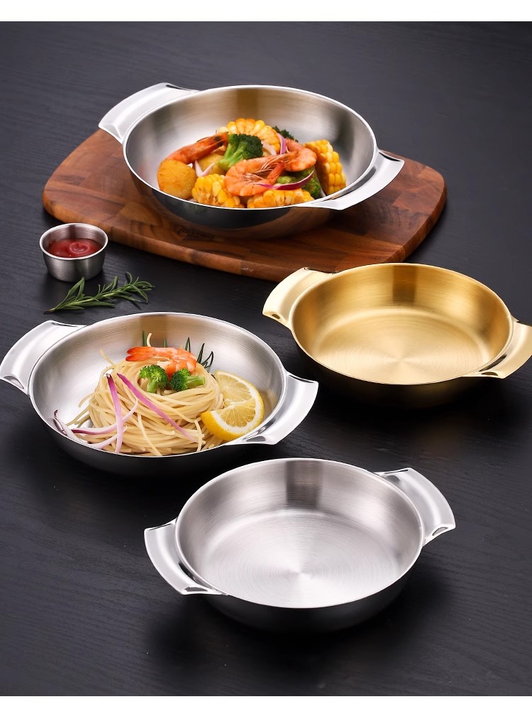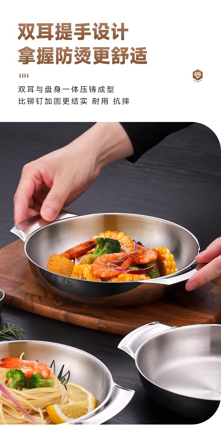 스테인레스 스틸 해산물 플레이트 한국식 더블 이어 플레이트 드라이 팟 해산물 냄비 가정용 창조적 인 스낵 플레이트 디스크 골든 플레이트스토어 가기