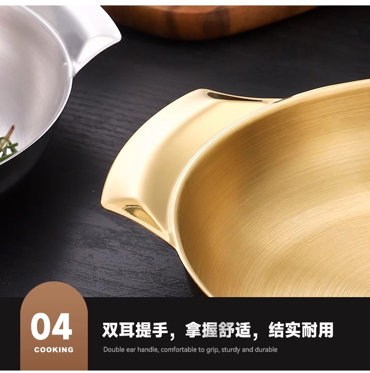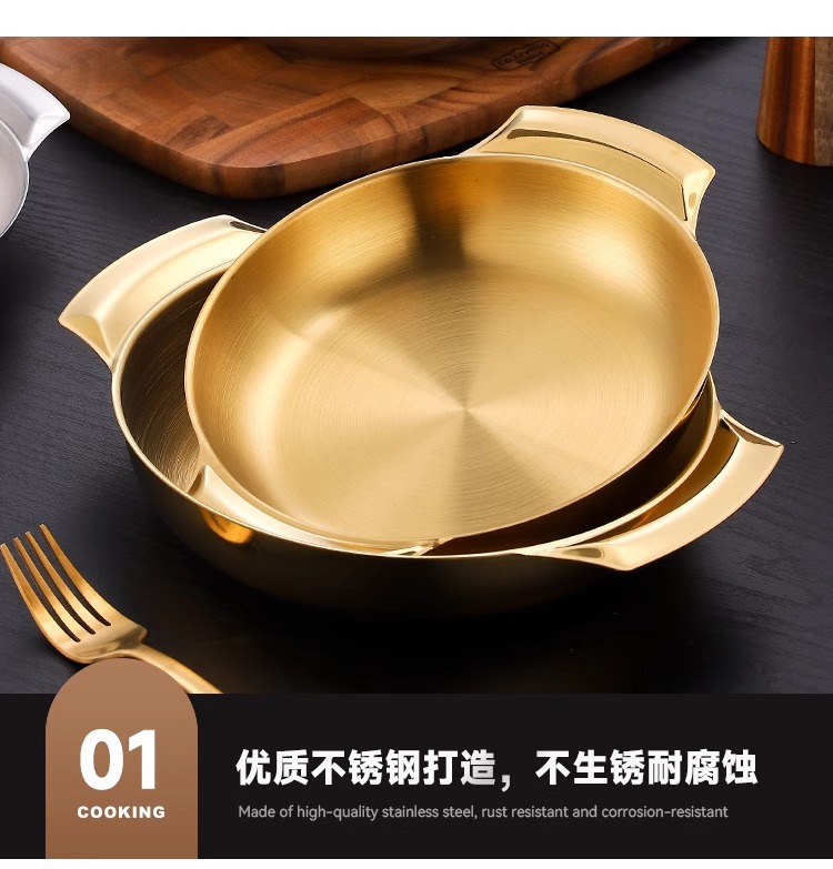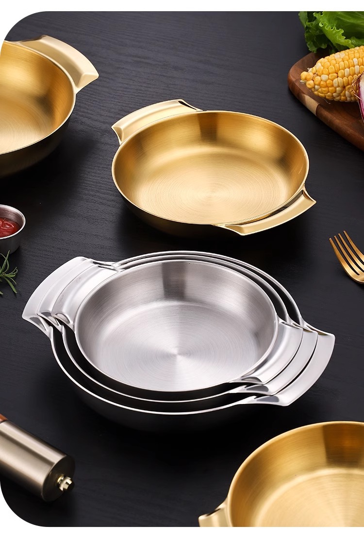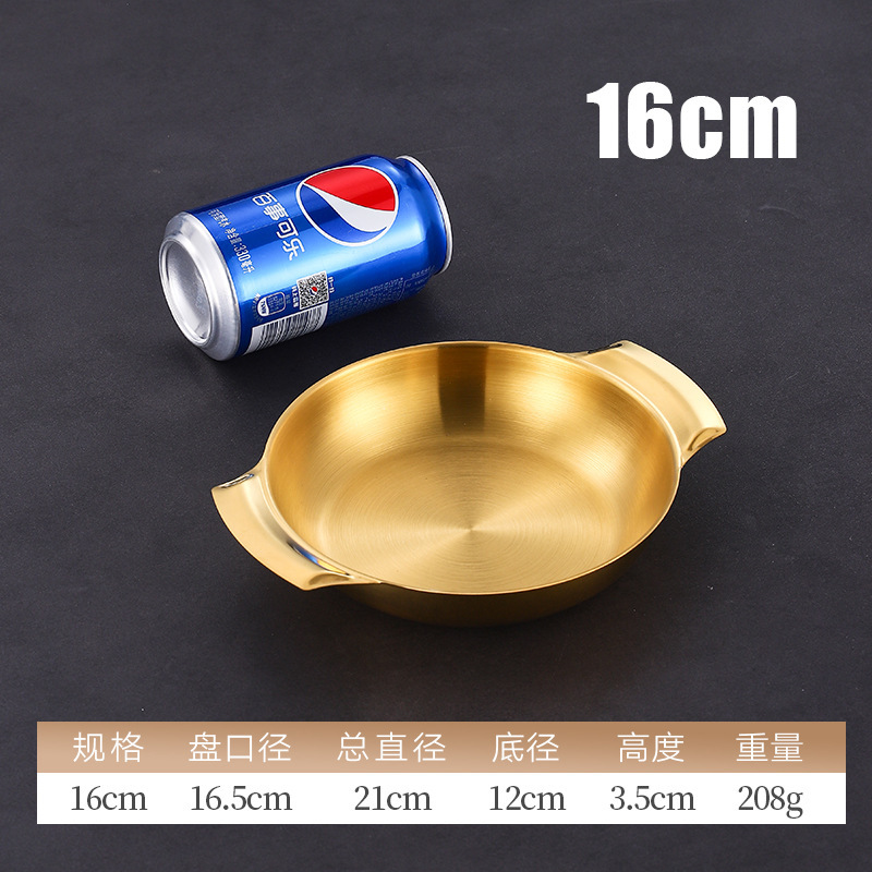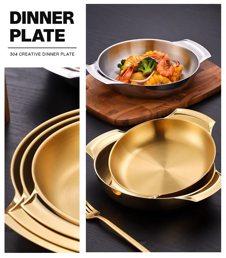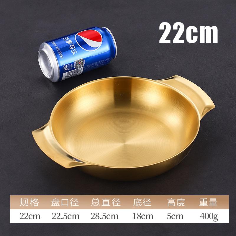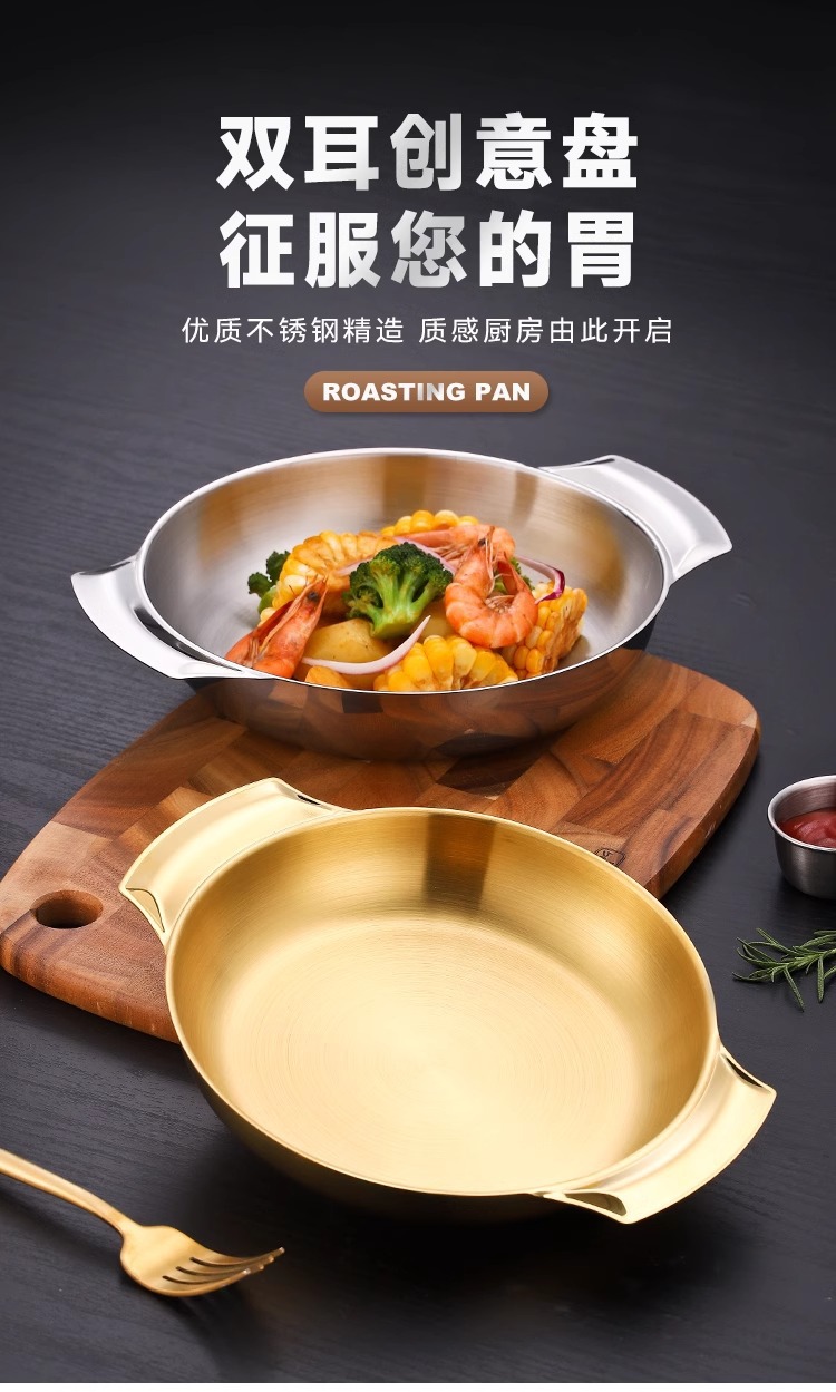 스테인레스 스틸 해산물 플레이트 한국식 더블 이어 플레이트 드라이 팟 해산물 냄비 가정용 창조적 인 스낵 플레이트 디스크 골든 플레이트