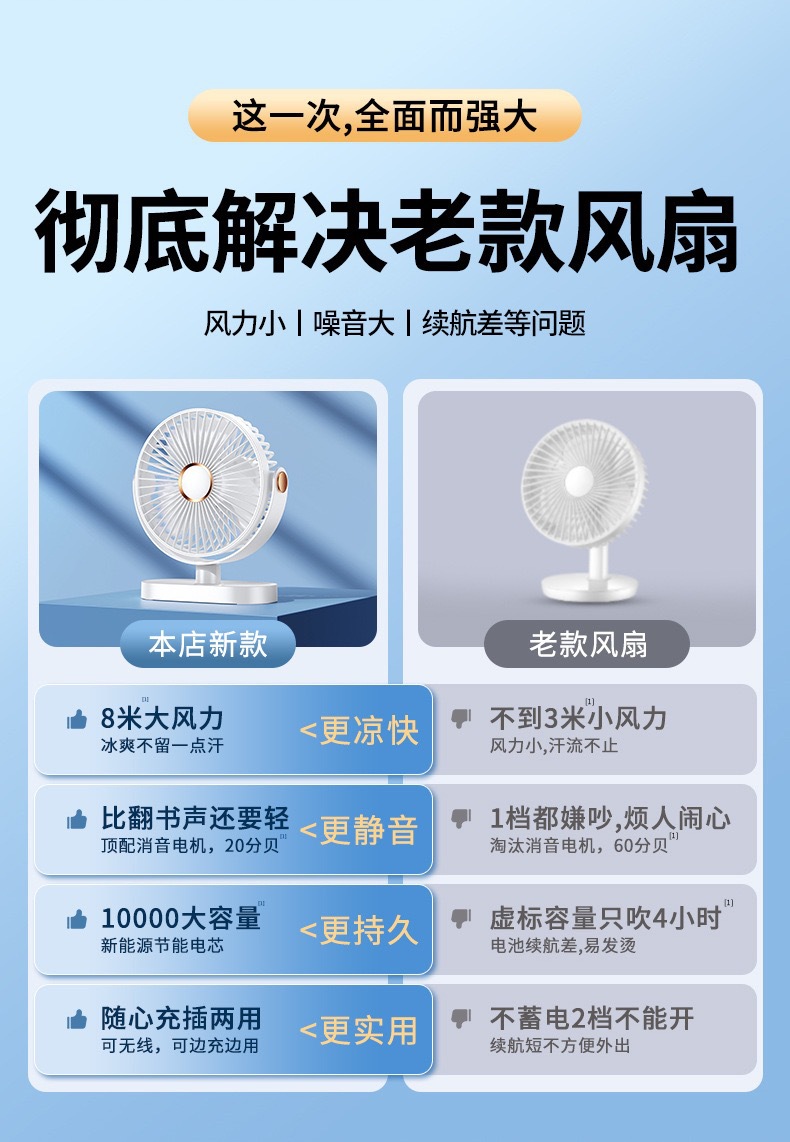 새로운 데스크탑 소형 팬 휴대용 홈 기숙사 다기능 팬 쉐이크 헤드 충전 사무실 학생 팬