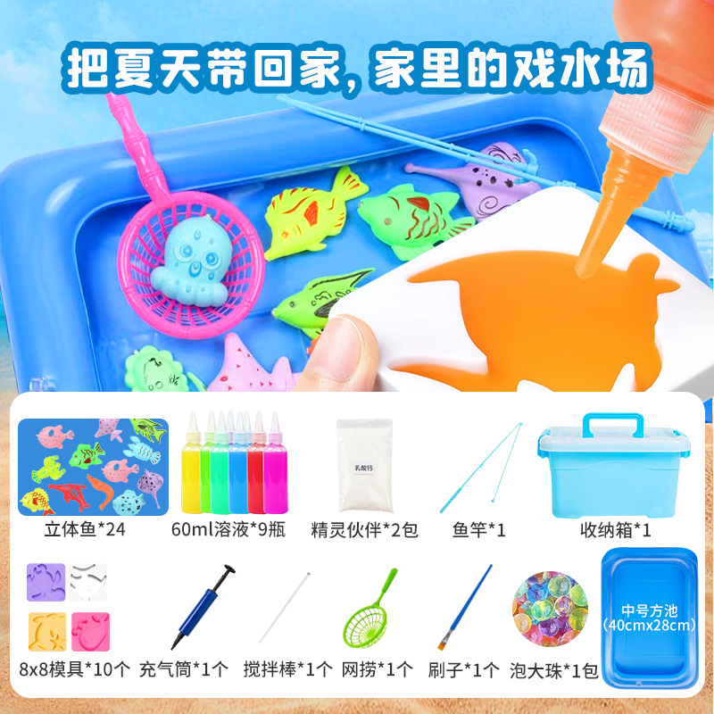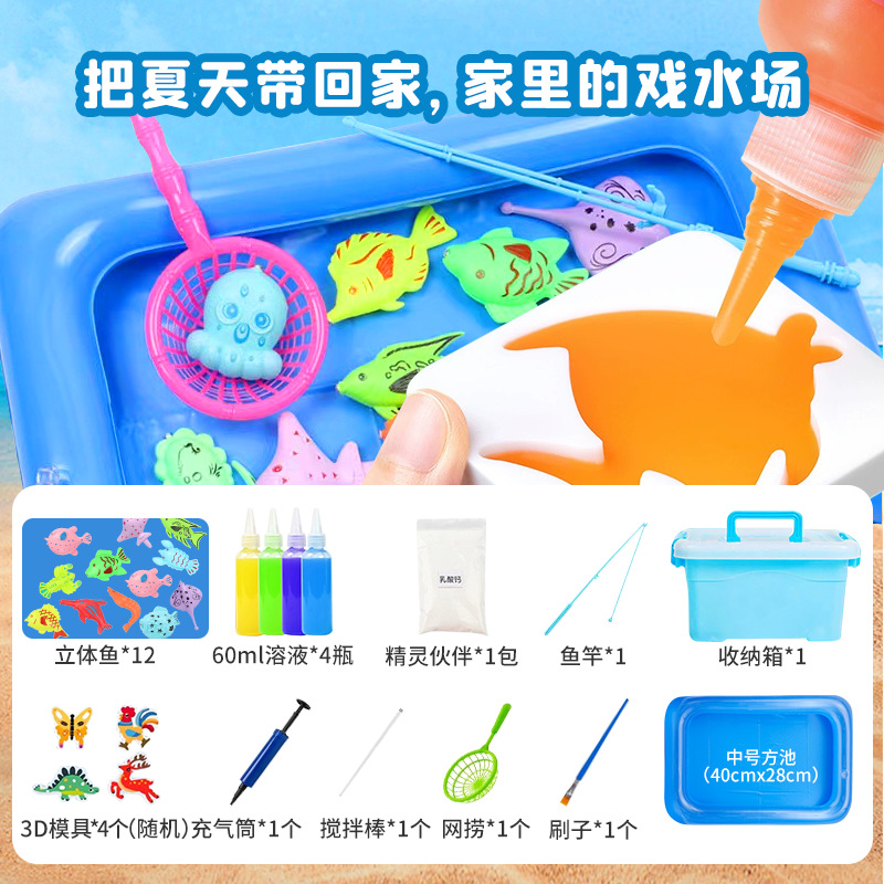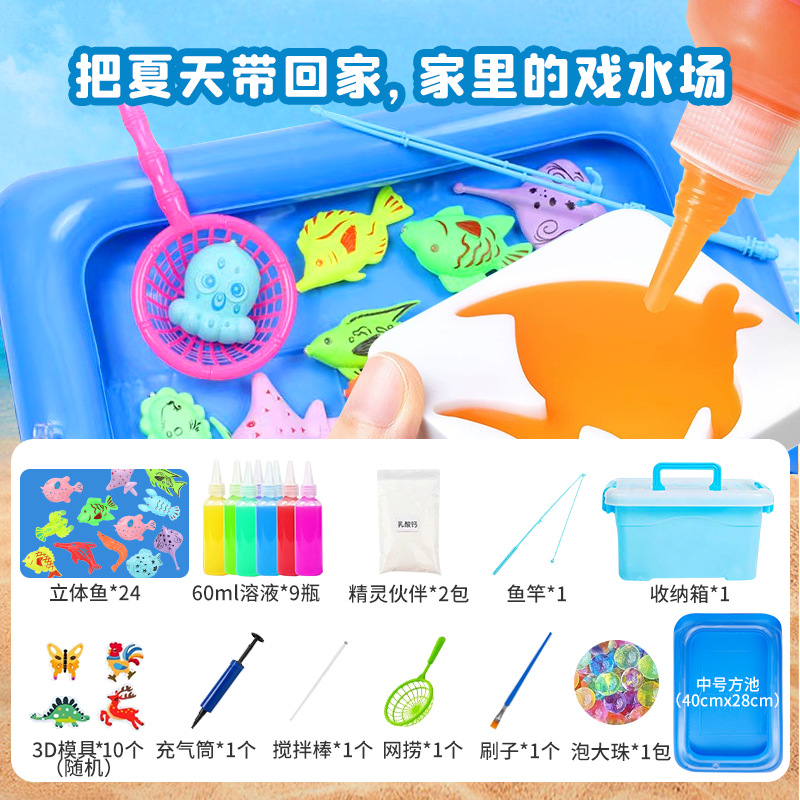 매직 워터 스프라이트 물 아기 어린이 솔루션 장난감 세트 DIY 수제 소재 가방 마그네틱 낚시 수영장