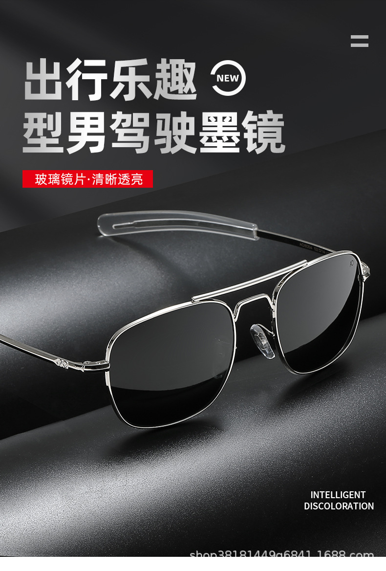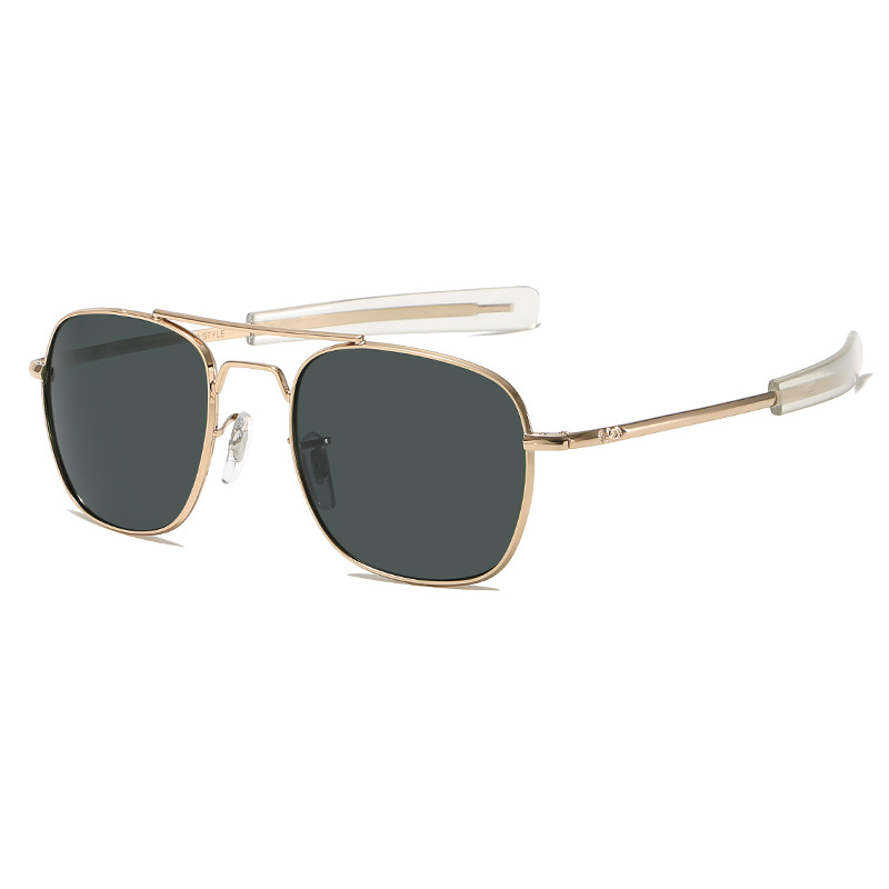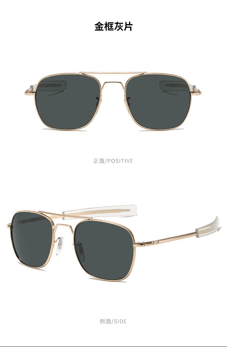 유럽과 미국의 대외 무역 금속 선글라스 대형 프레임 스퀘어 더블 빔 유리 렌즈 선글라스 남성과 여성의 트렌디 한 선글라스