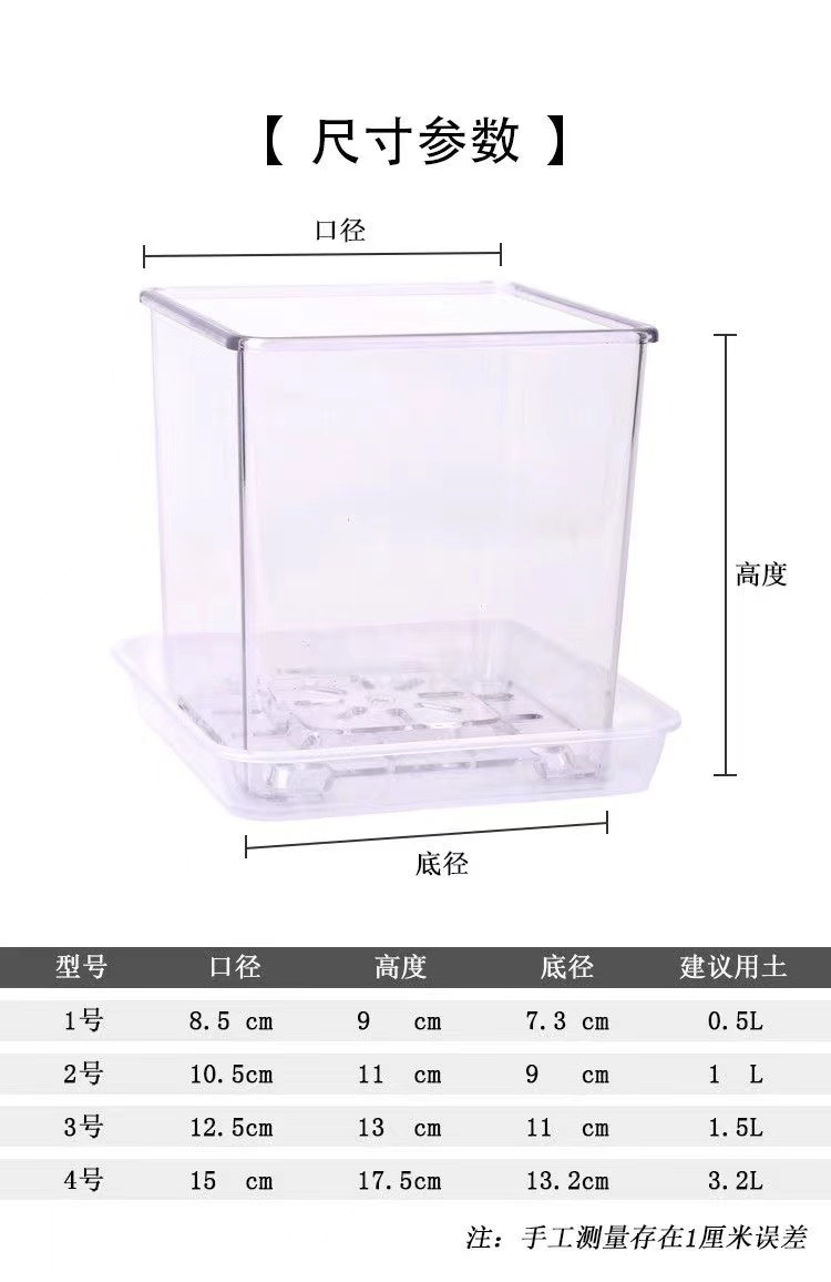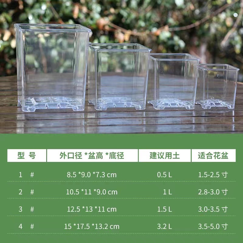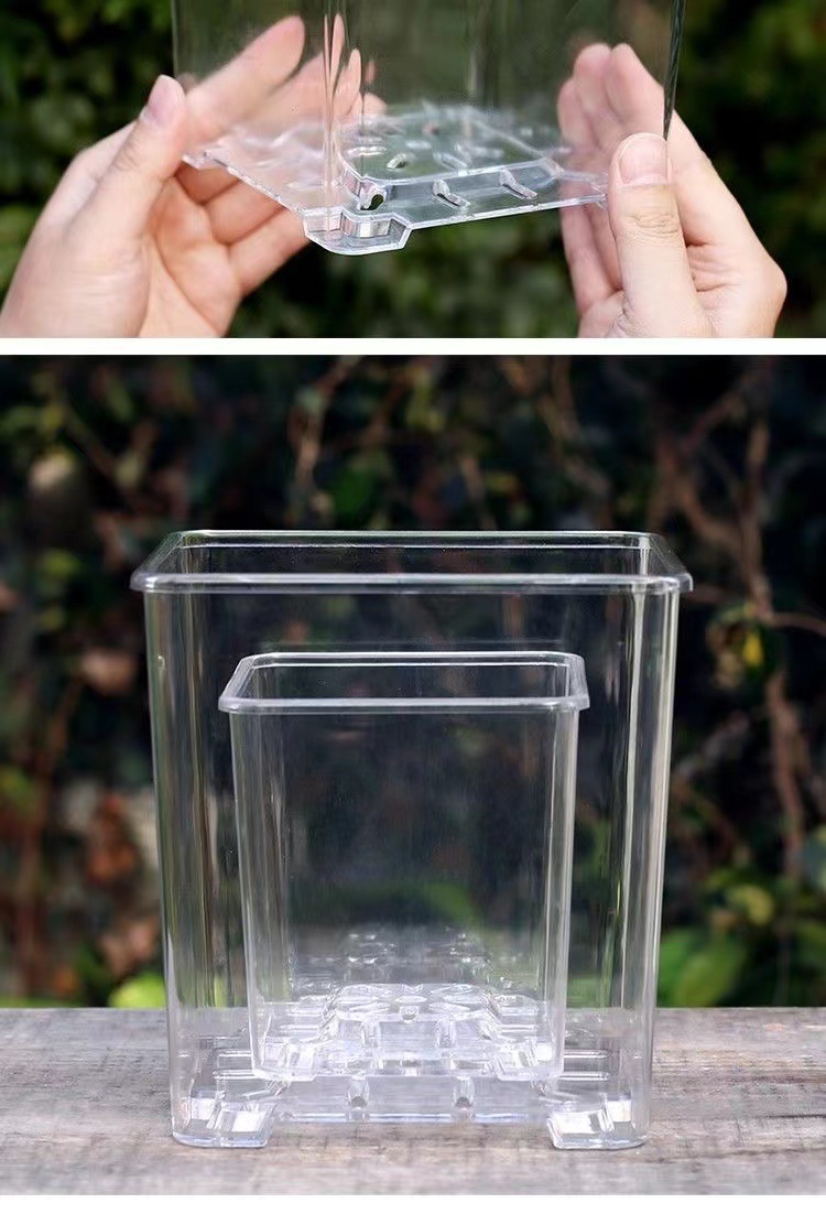 아크릴 투명한 사각 냄비 모조 유리 광장 꽃 냄비 플라스틱 심기 냄비 호접란 가정용 세트스토어 가기